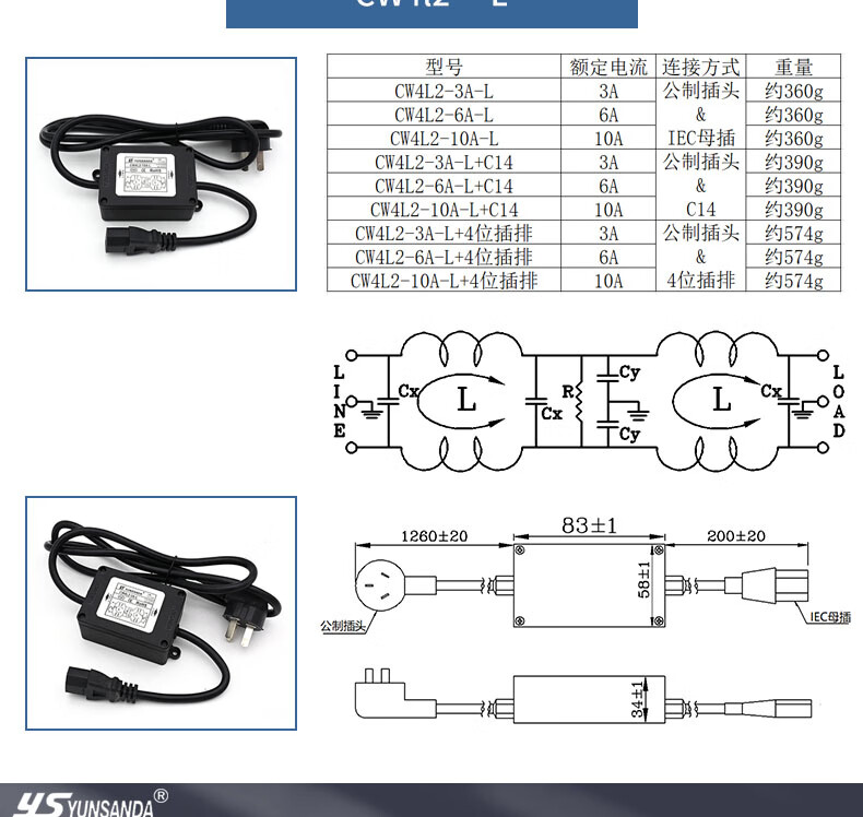 Single-phase 220v household power filter AC bipolar purification anti-interference isolator CW4L2-10A-L CW4L2-1A-L+C14