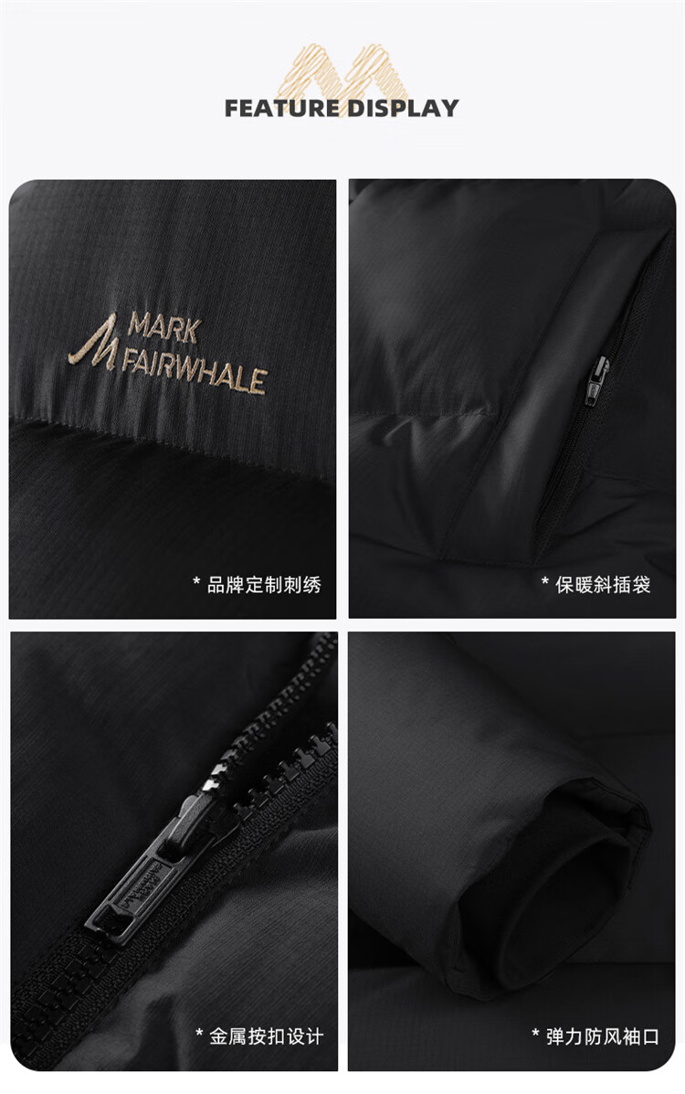 Mark Huafei 305G super heavy cold-proof stand-collar down jacket for men in winter new warm and trendy thick jacket black L (175) down filling 260g