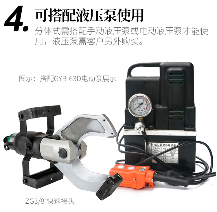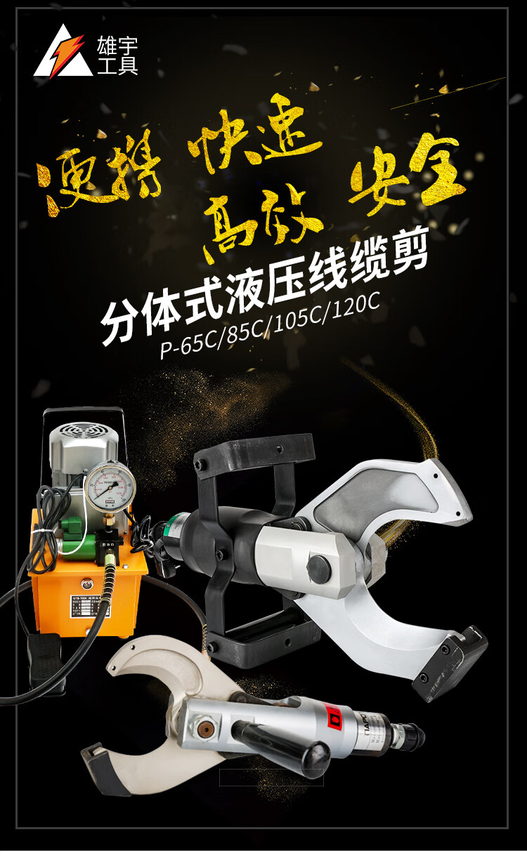 开口式液压电缆剪分体电动剪线钳高压线缆剪刀快速P120/135/150C P-120C配电磁阀泵 剪3*400以下电