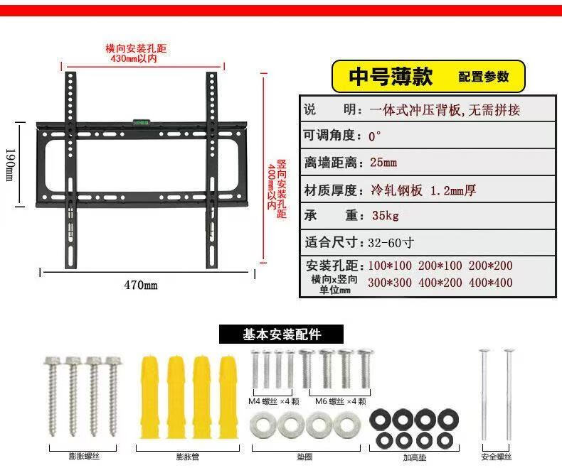 TV stand TV hanger retractable universal Xiaomi Huawei Hisense Skyworth TCL Konka TV wall mount thickened and reinforced version suitable for 32-60 inch TVs