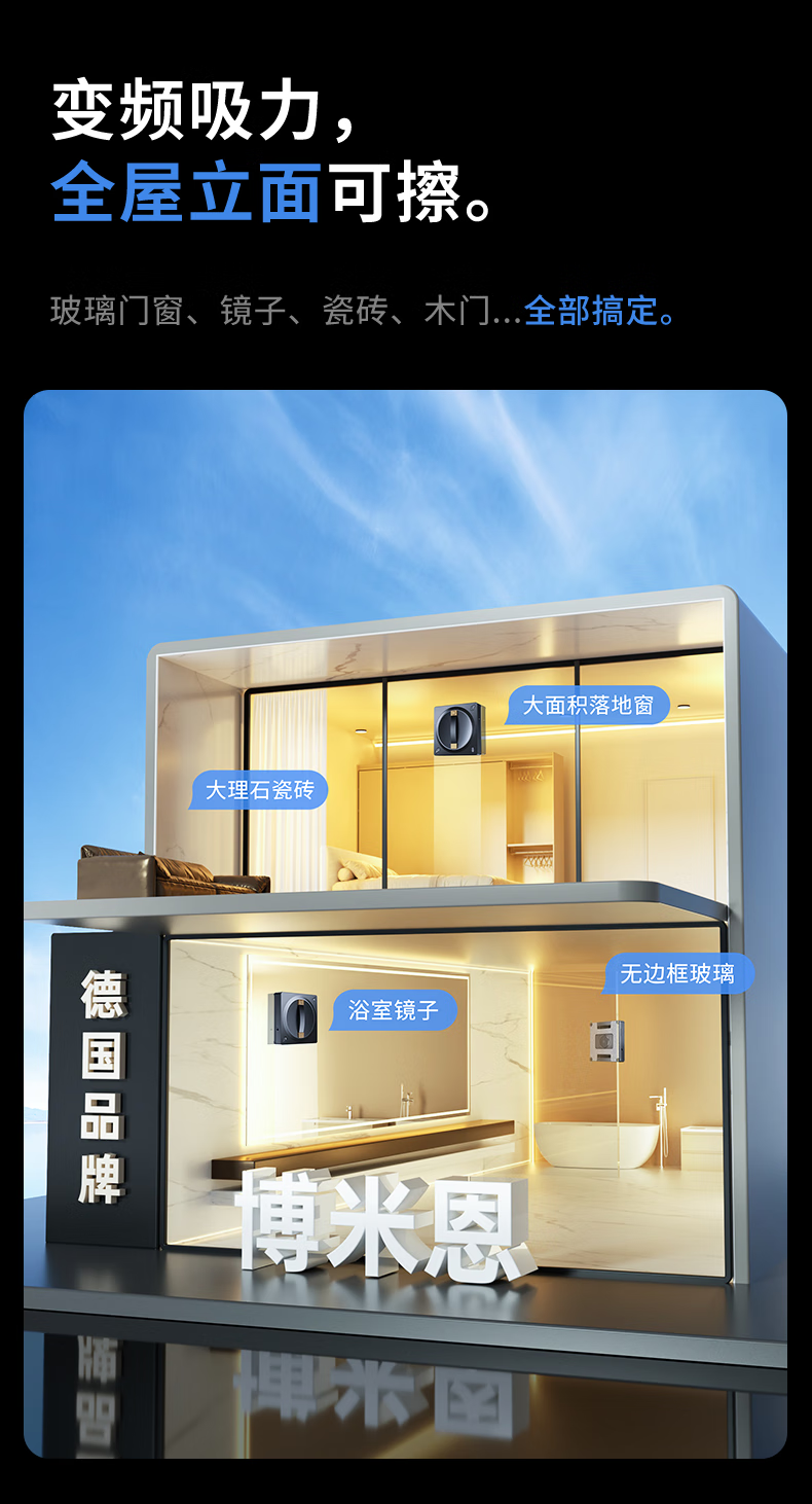 Bomien German technology window cleaning robot glass cleaning artifact fully automatic high-rise household exterior windows electric remote-controlled water spray to wash and scrape glass basic model M60 single water spray