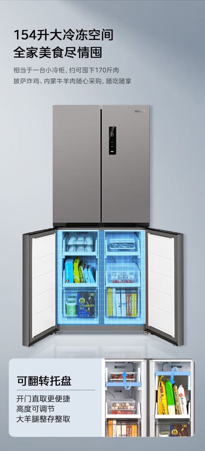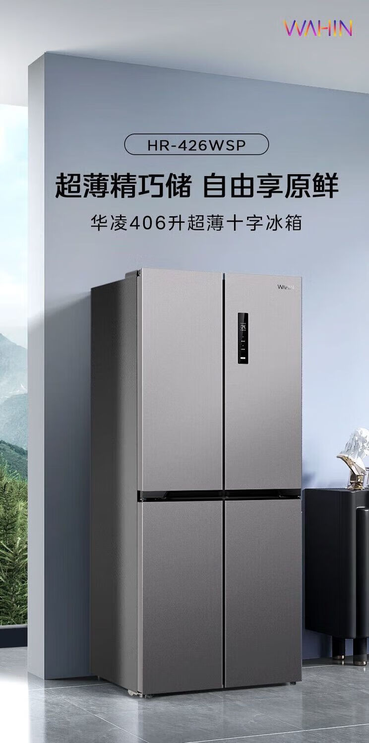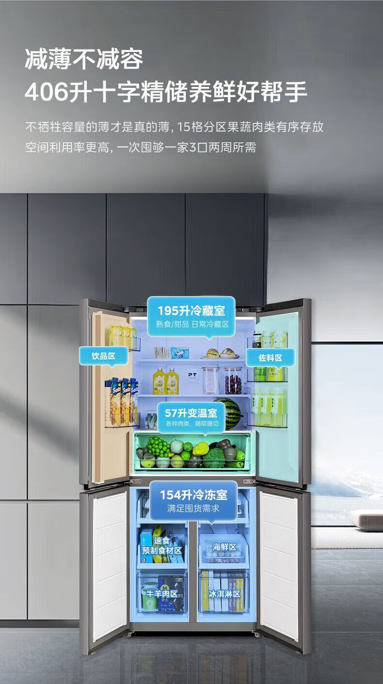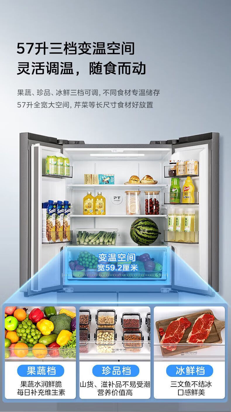 Refrigerator produced by Midea has been subsidized by 20%. Air-cooled frost-free 525/539 liter cross-shaped double-opening four-door household energy-saving refrigerator dual-inverter first-class energy-efficiency commercial refrigerator 406-liter ultra-thin and can be embedded. Hualing produced by Midea. Fast delivery nationwide. Fast delivery on the same day.