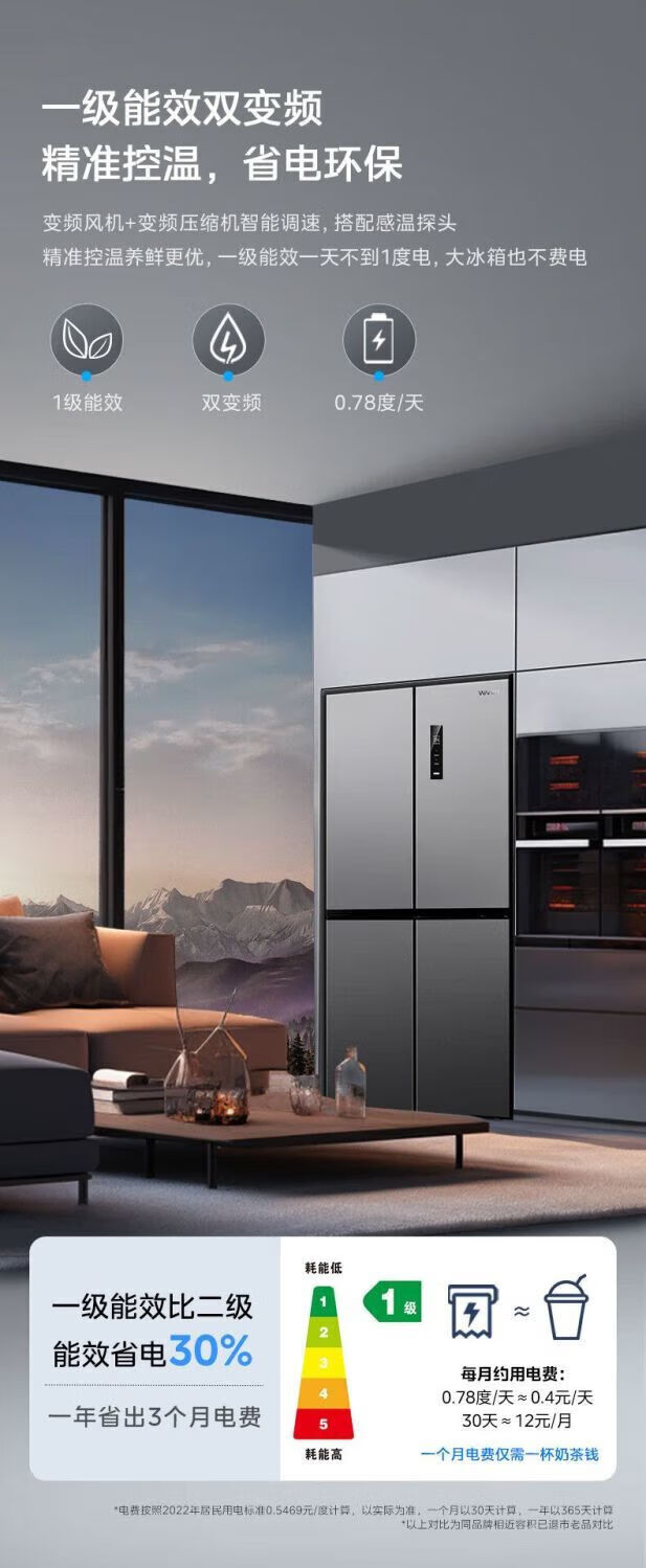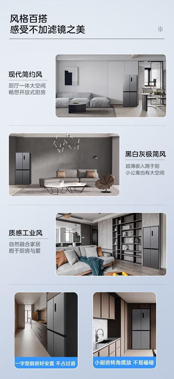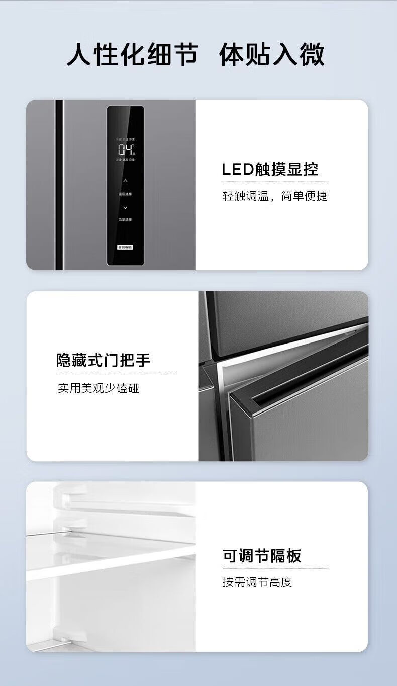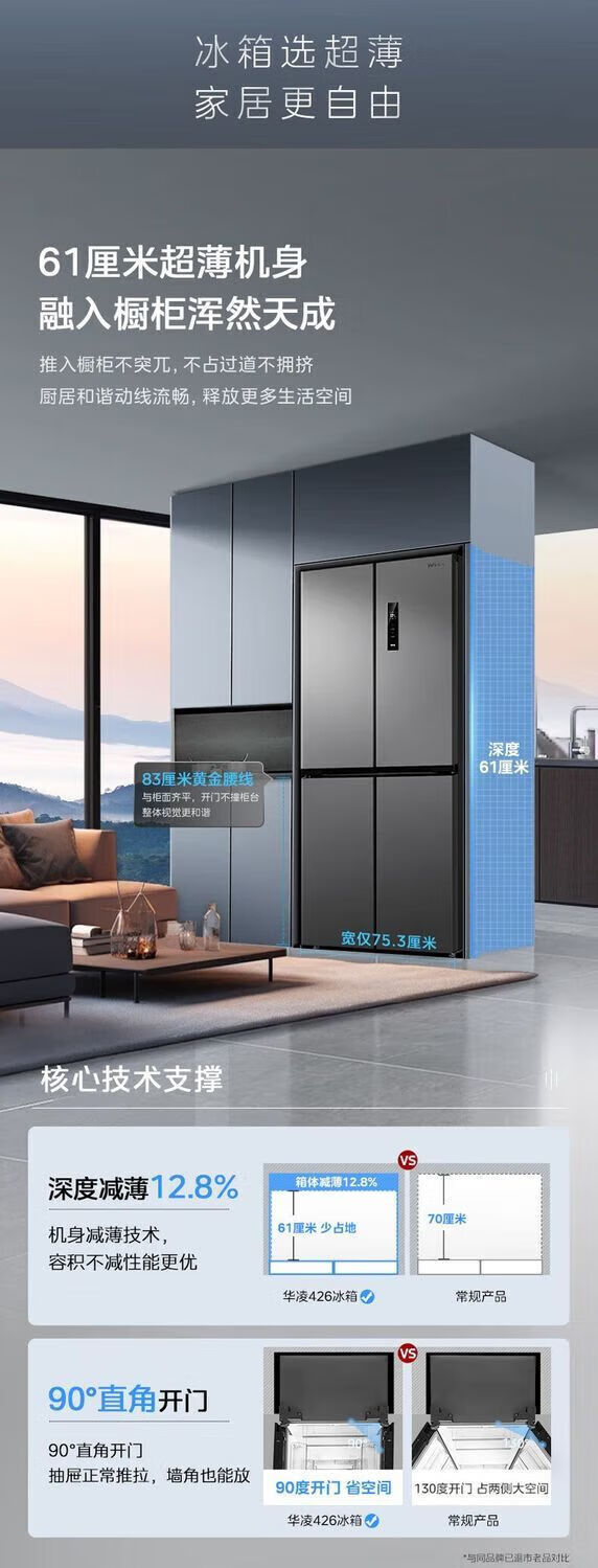 Refrigerator produced by Midea has been subsidized by 20%. Air-cooled frost-free 525/539 liter cross-shaped double-opening four-door household energy-saving refrigerator dual-inverter first-class energy-efficiency commercial refrigerator 406-liter ultra-thin and can be embedded. Hualing produced by Midea. Fast delivery nationwide. Fast delivery on the same day.