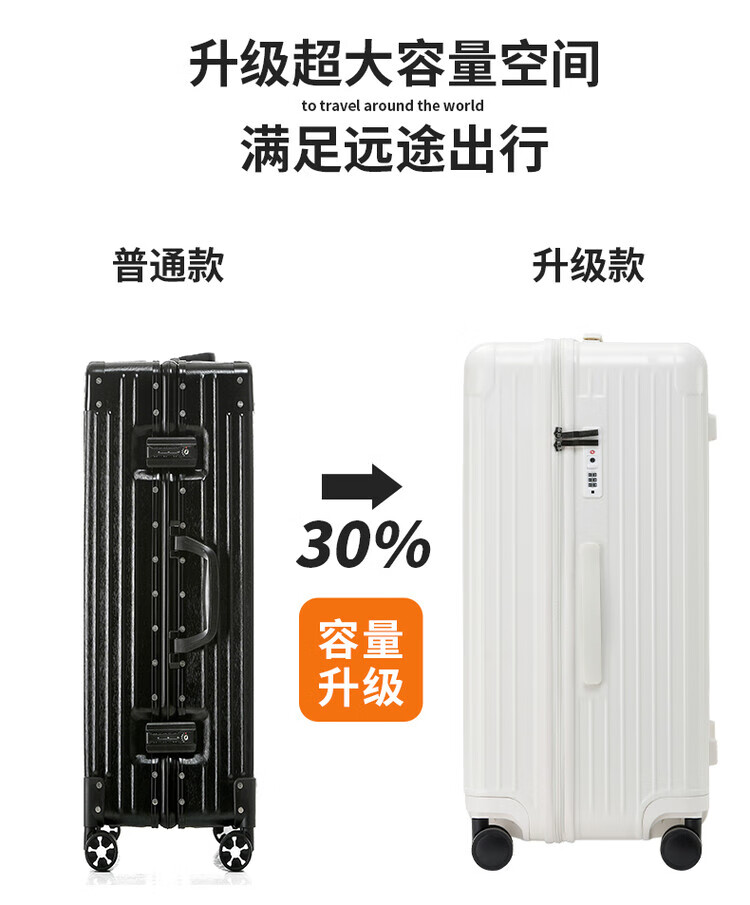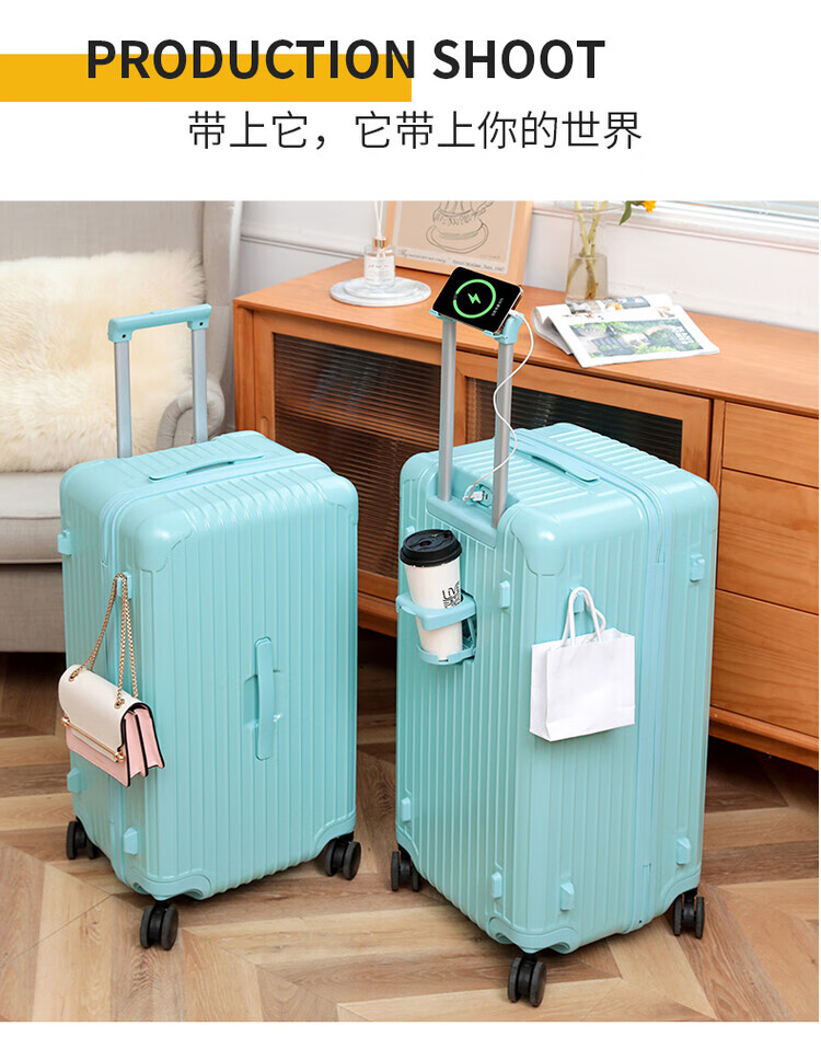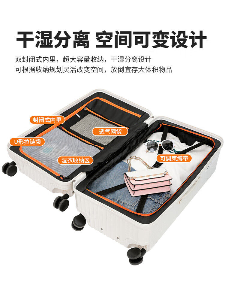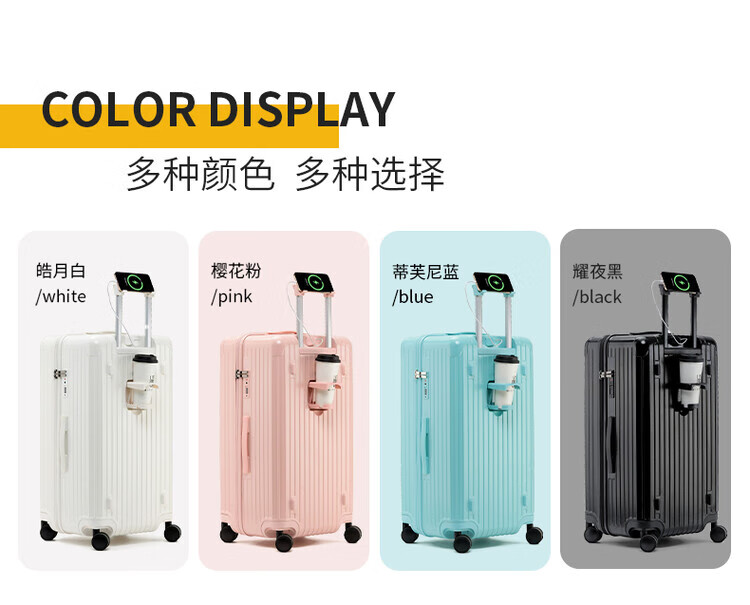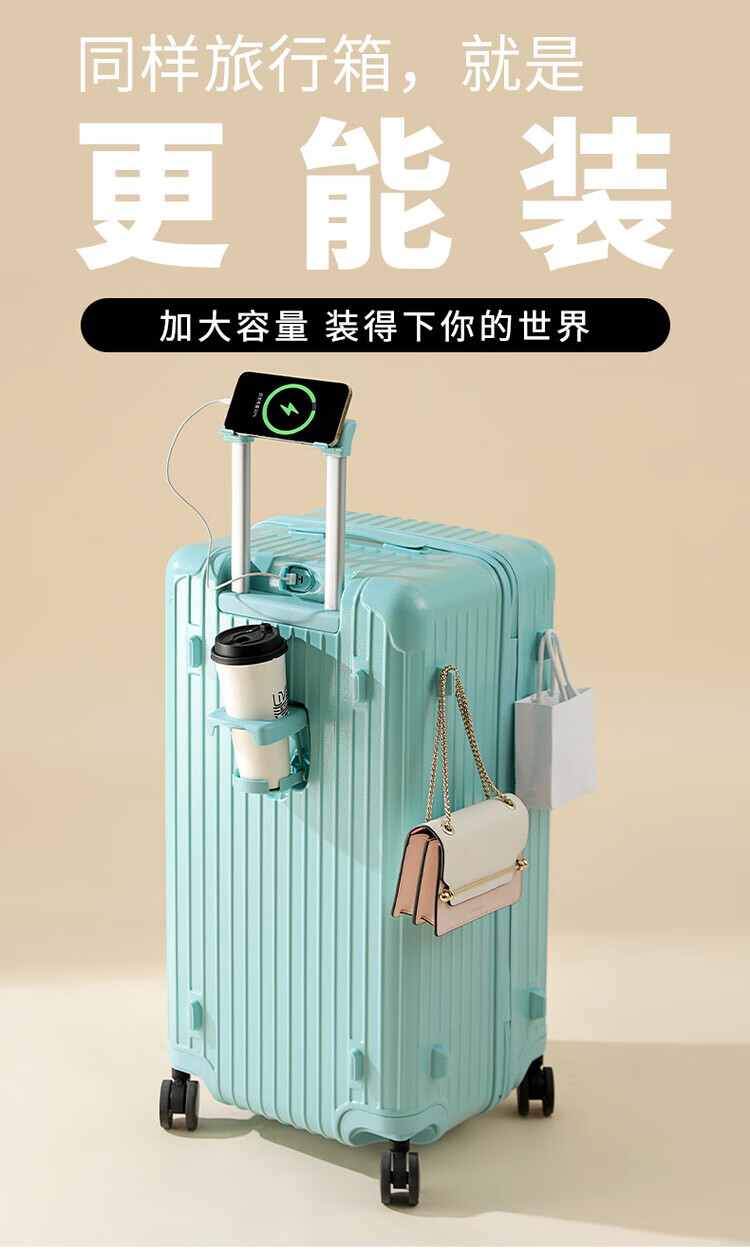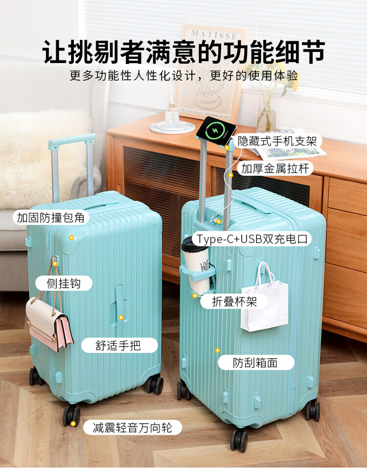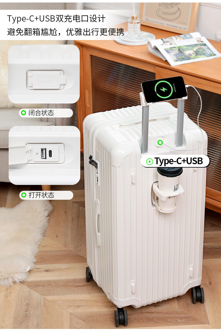 You'erlen 37-point multi-functional large-capacity suitcase, good-looking, with cup holder, universal silent wheels, student password suitcase, white, 24 inches, free shipping insurance