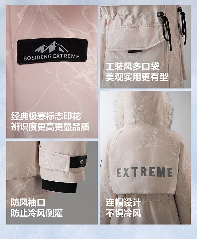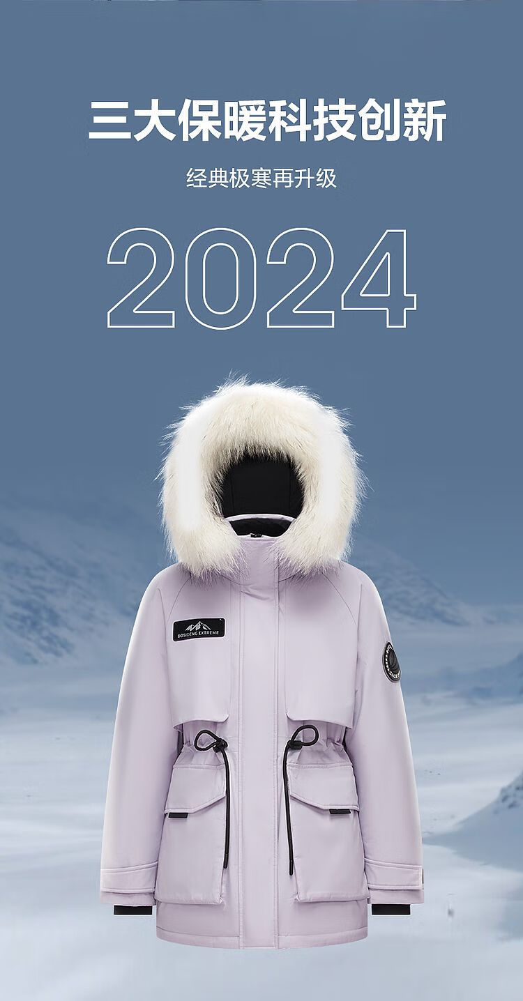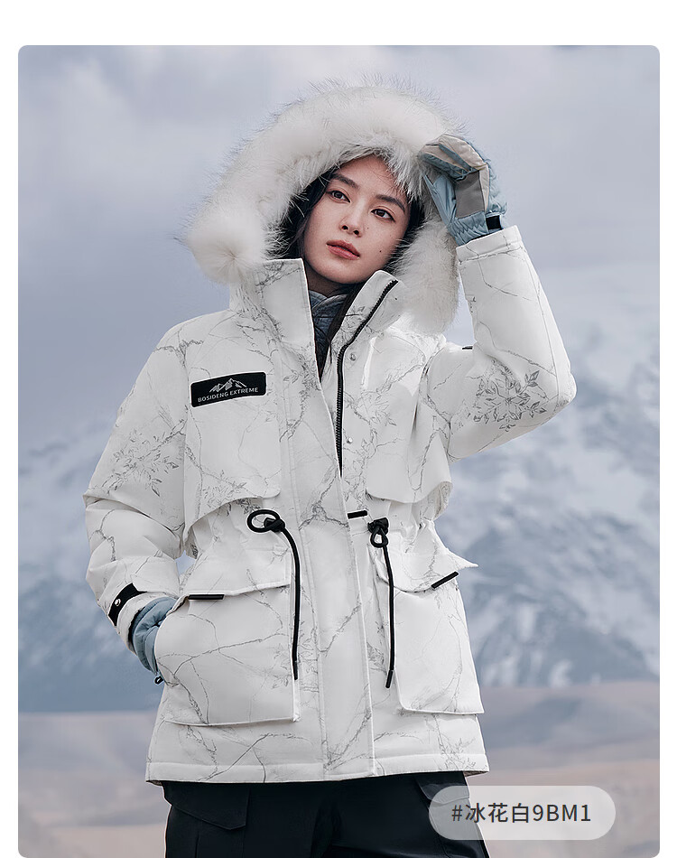 BOSIDENG Extreme Cold Down Jacket Goose Down Women's Short Hooded Big Fur Collar Fashion Versatile Thickened New National Standard Jacket Store Manager Recommends Ice White 9BM1 XS 155/80A Weight Approximately Within 110