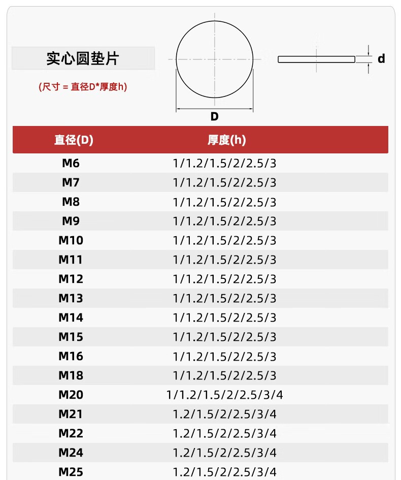 Fengji 304 stainless steel disc non-porous metal flat gasket solid gasket sealing plug round gasket iron sheet M50*5mm 1 piece