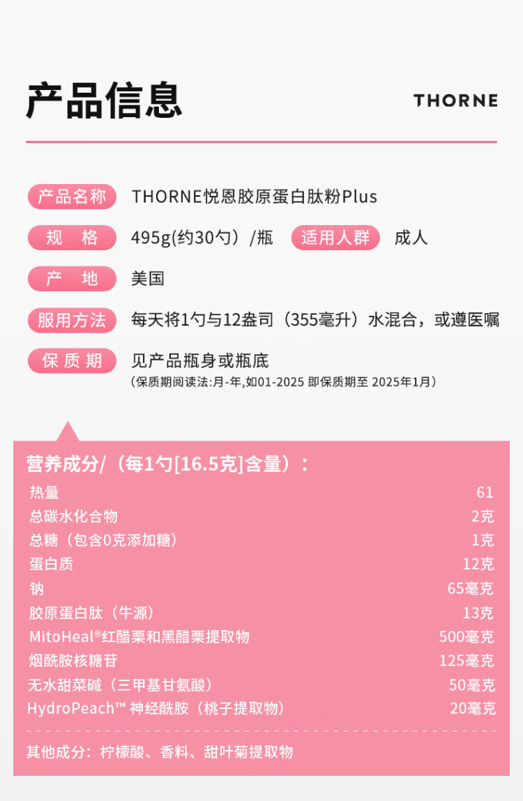 THORNE Peach Collagen Peptide Powder Plus Anti-Aging Nad + Niacinamide Whitening Women's Health Care Product SP685