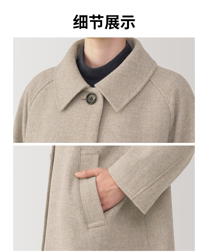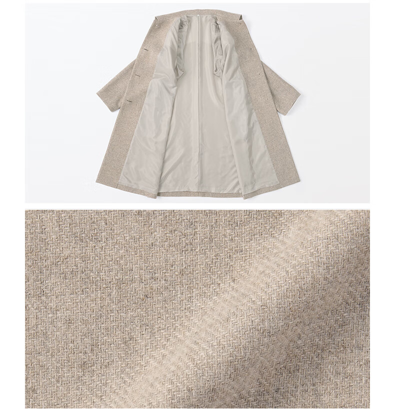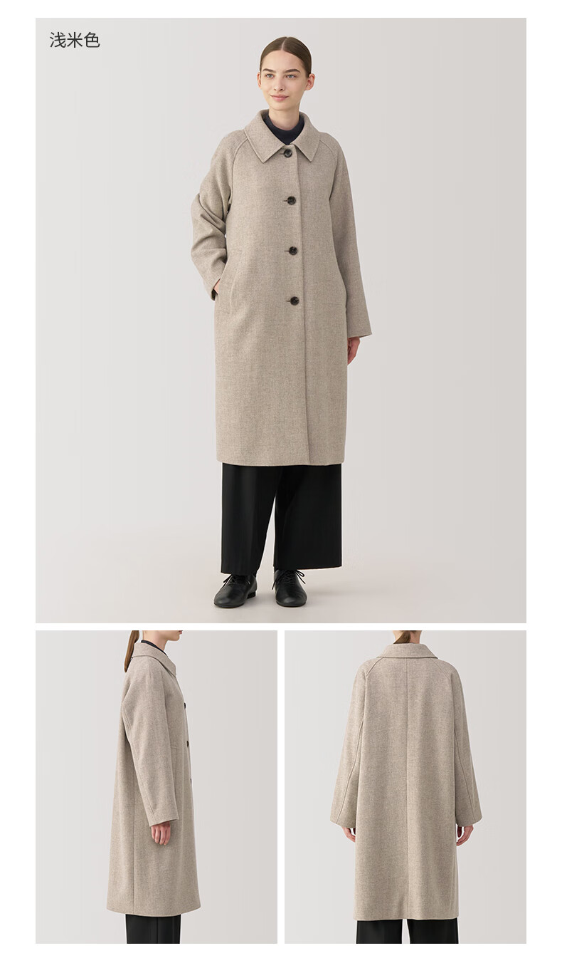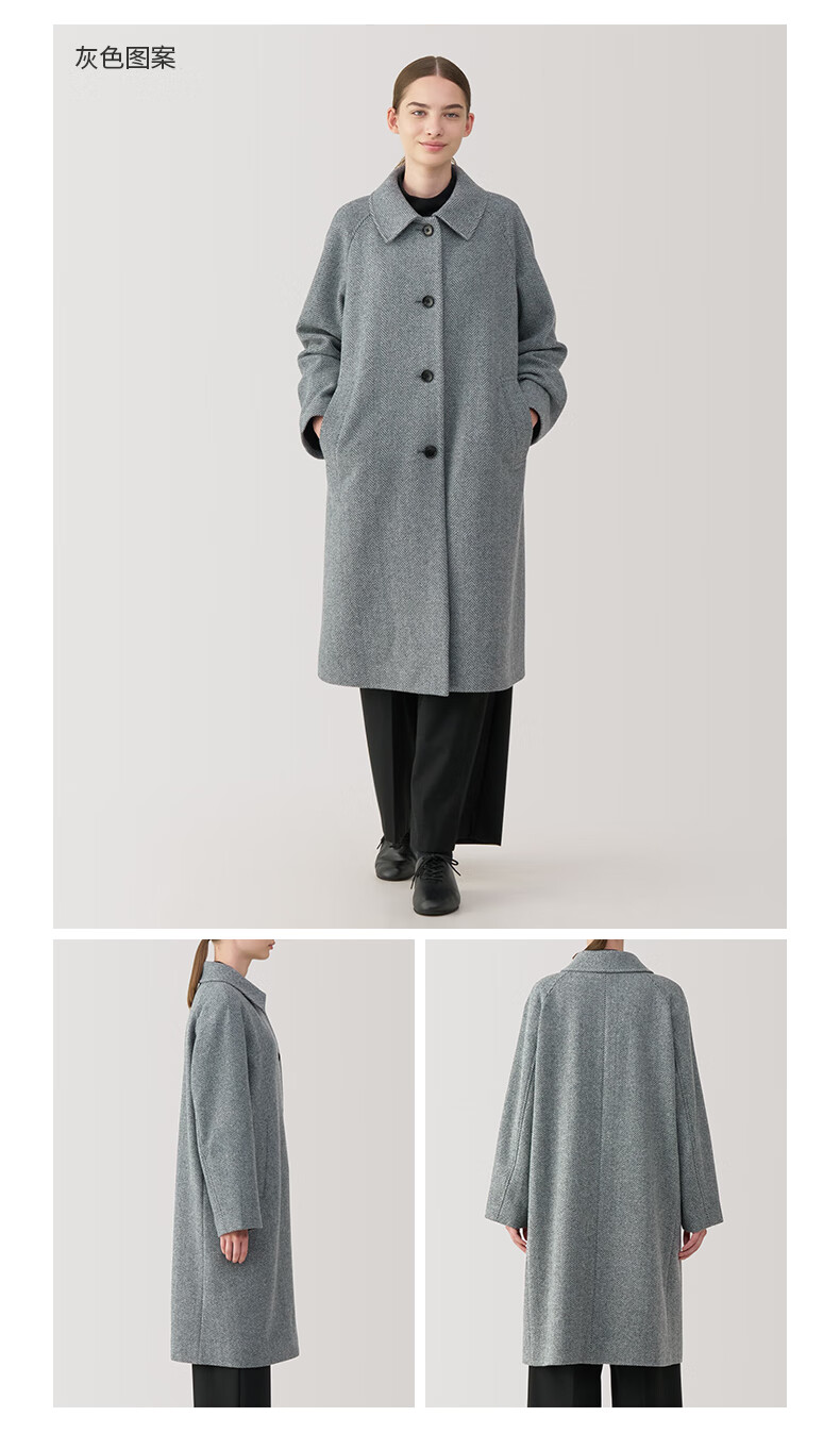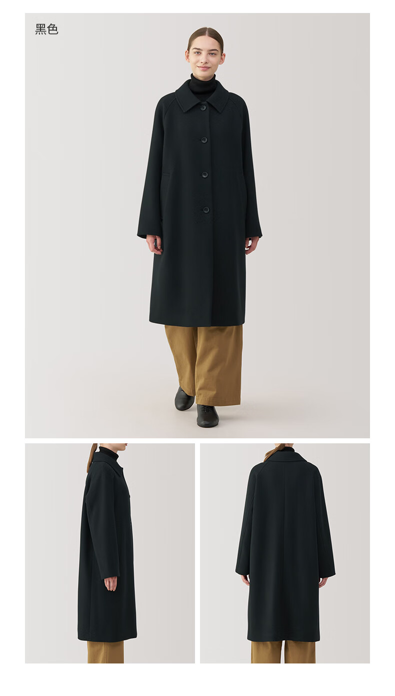 MUJI Women's Wool Mixed Stand Collar Coat Woolen Coat Mid-Length Women's Winter Jacket Women's BD0Z6A4A Black XL (165/92A)