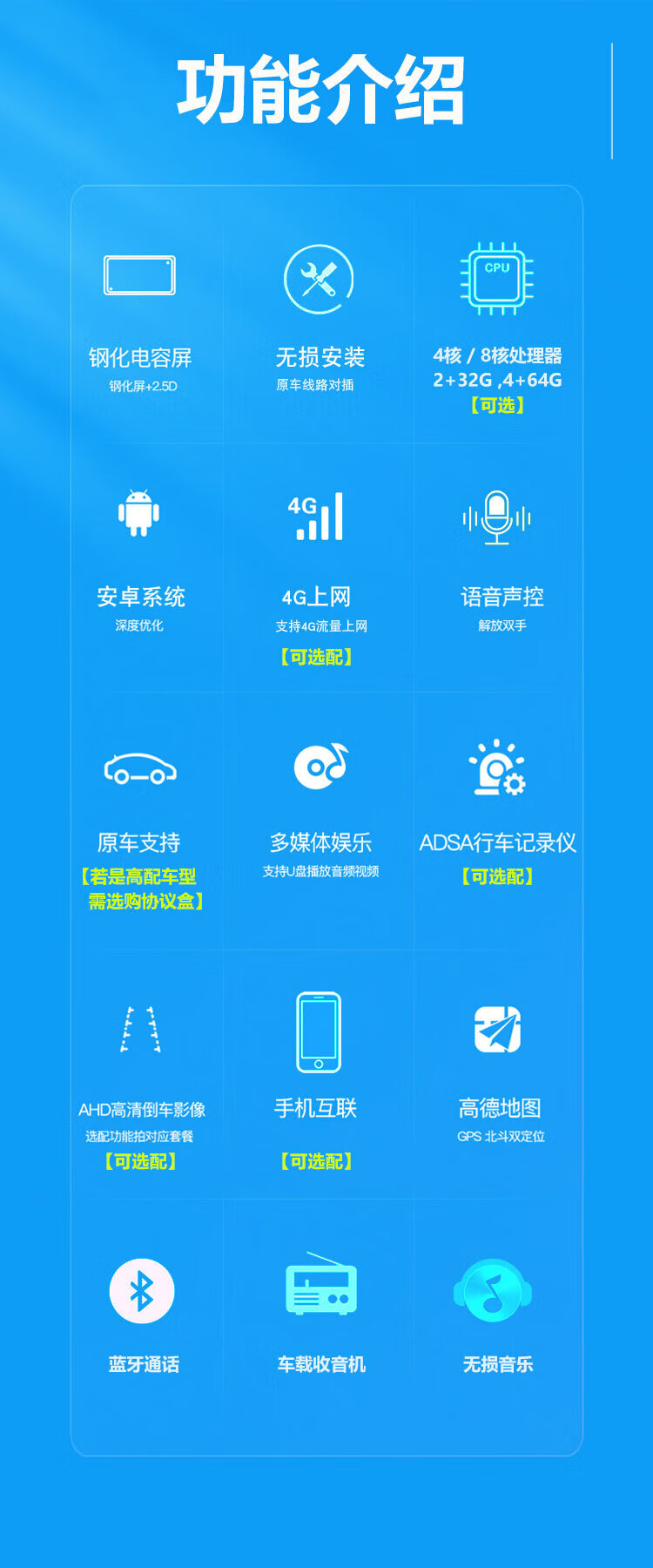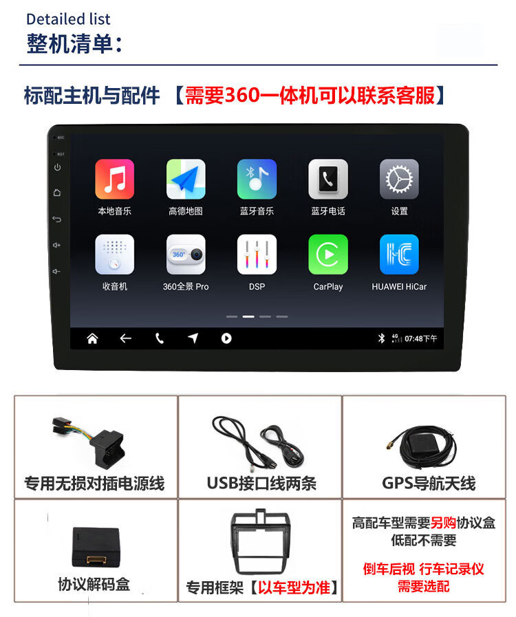 Zhuo Yonghang is suitable for 17-19 Toyota Vios/Zhixuan central control large display reversing image integrated machine 360 panoramic wifi version 1+32G official standard configuration