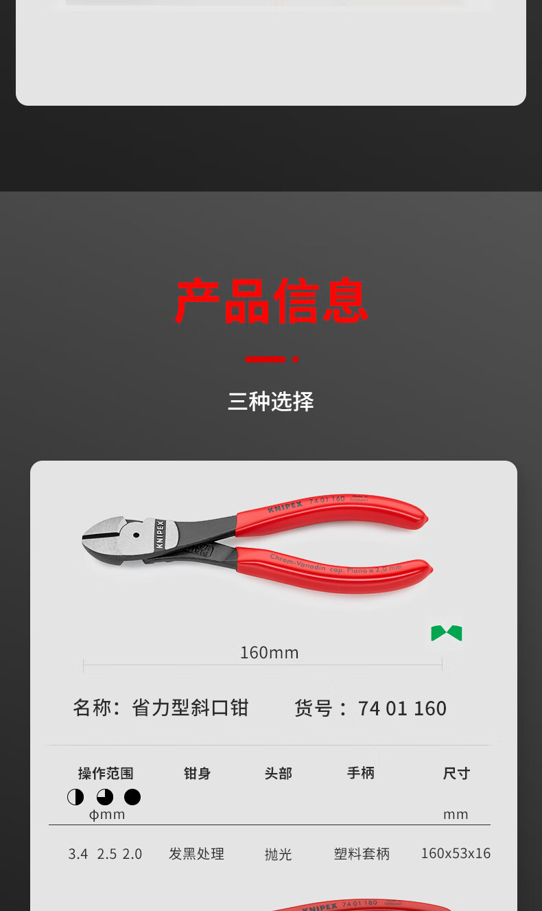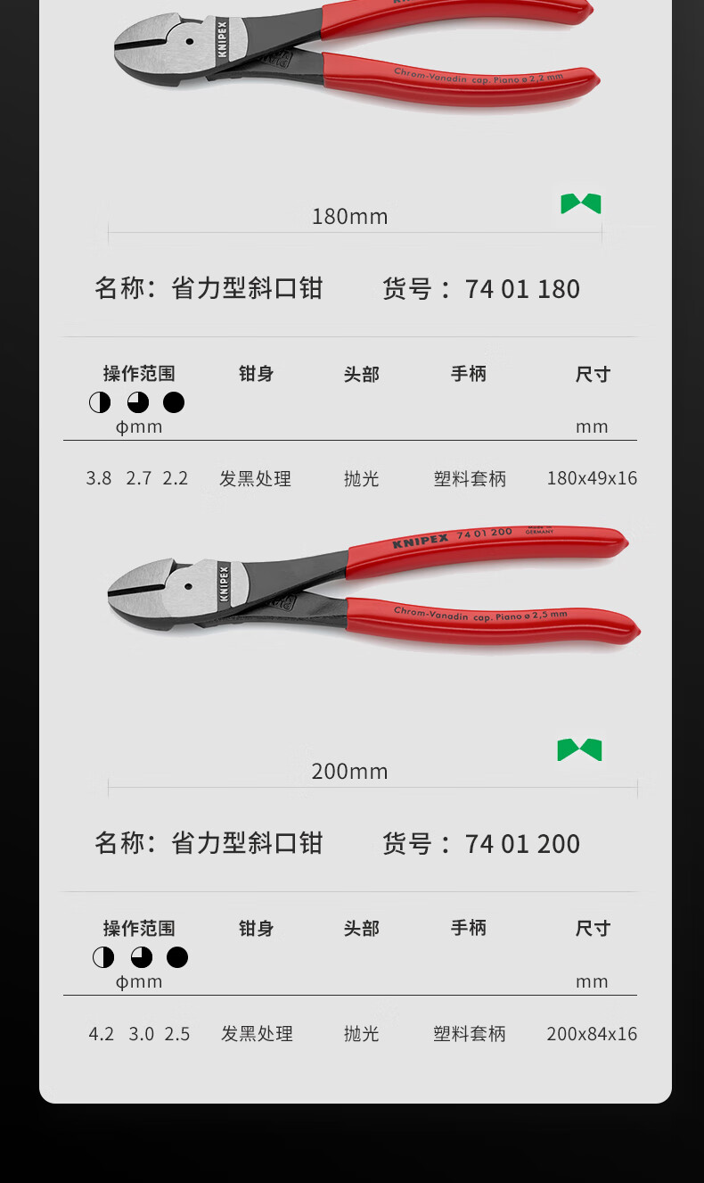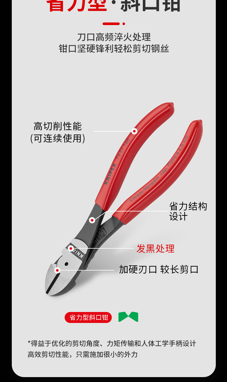 KNIPEX imported from Germany labor-saving diagonal pliers labor-saving wire cutting bias pliers diagonal pliers electrician diagonal pliers K.74 01 200