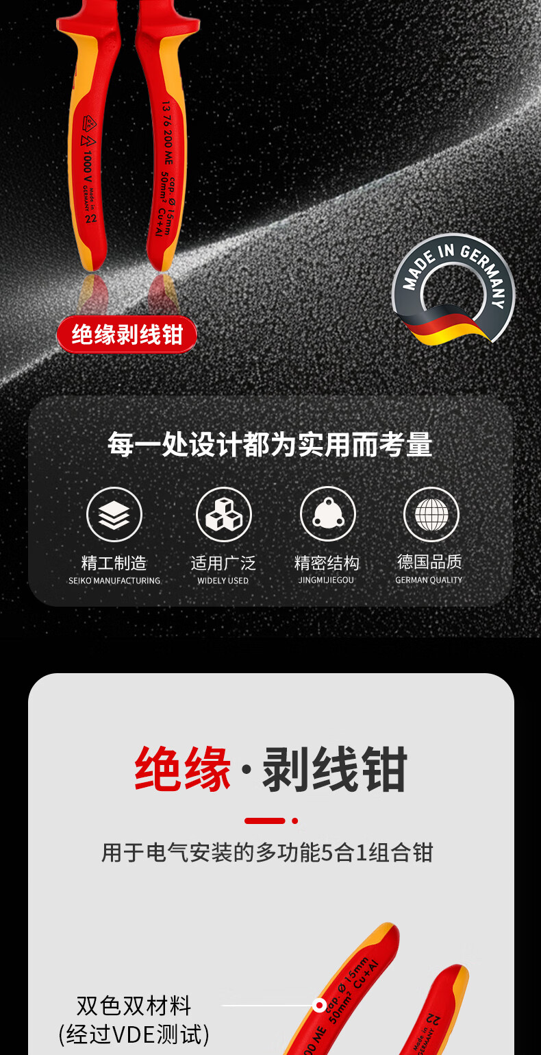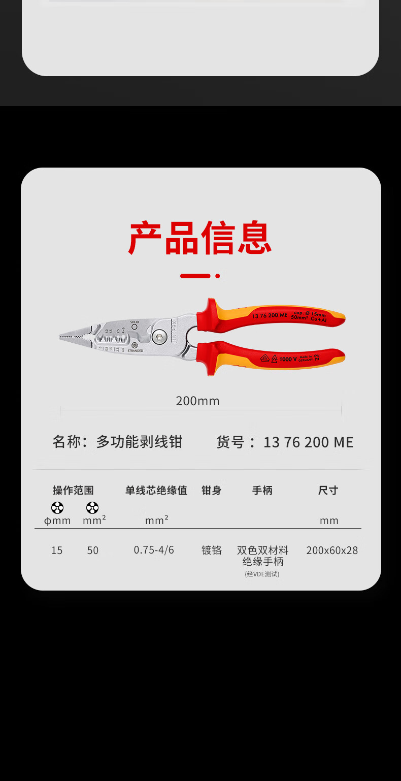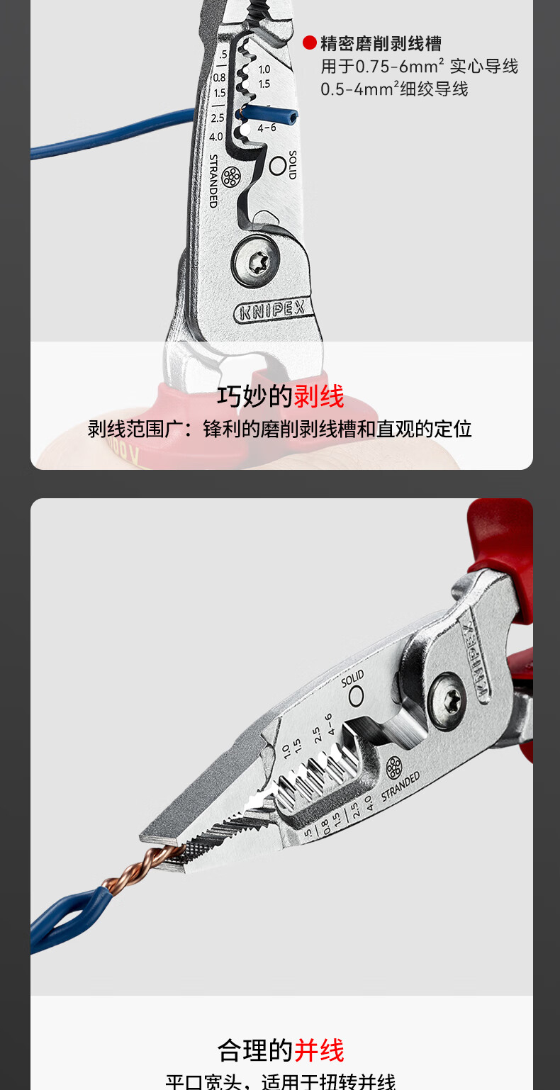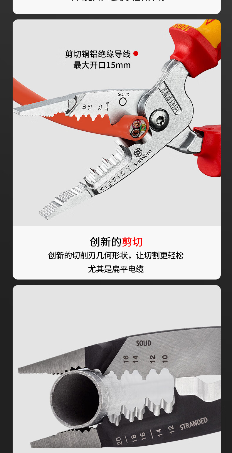 KNIPEX imported multifunctional 5-in-1 insulated wire stripper 1000v insulated electrician pliers wire cutter needle nose pliers K.13 76 200 ME
