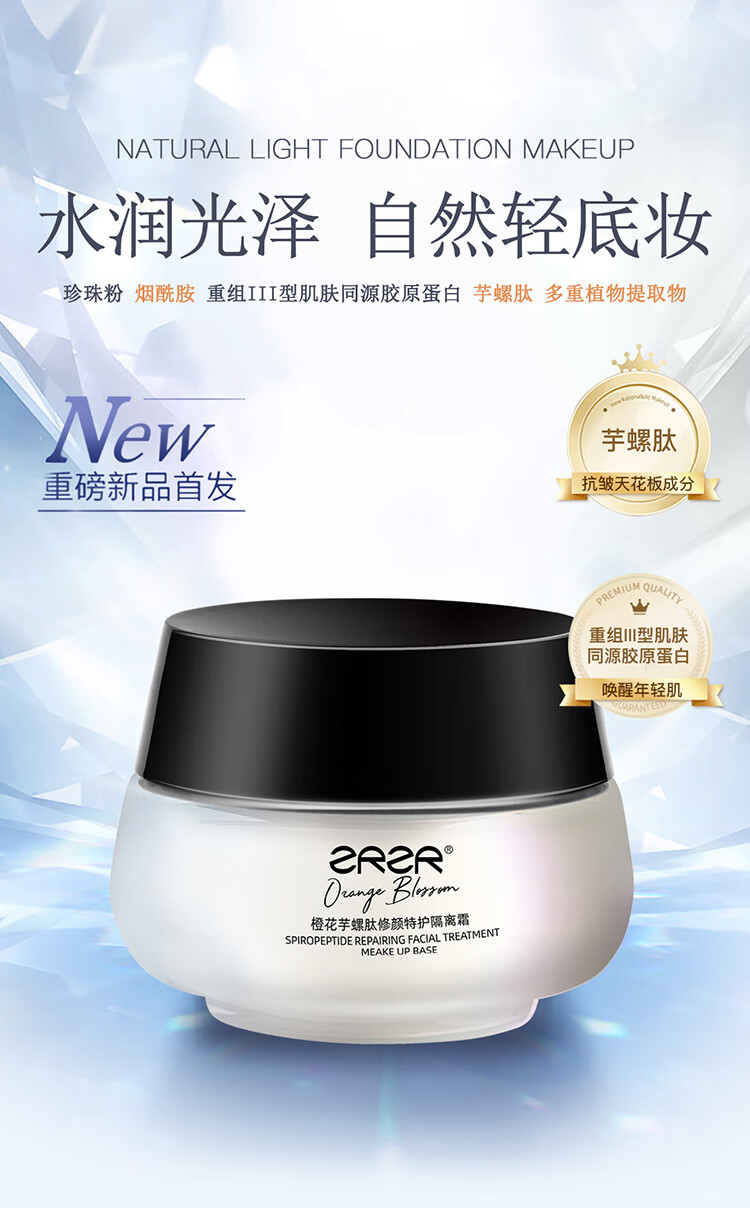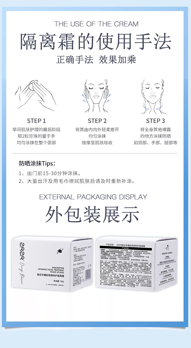 ZRZR Orange Blossom Cono Peptide Repair Special Care Isolation Cream 50g No-Removal Makeup Concealer Cream Light Facial Nourishing Cream 50g*1 bottle Free 2g*5 tablets