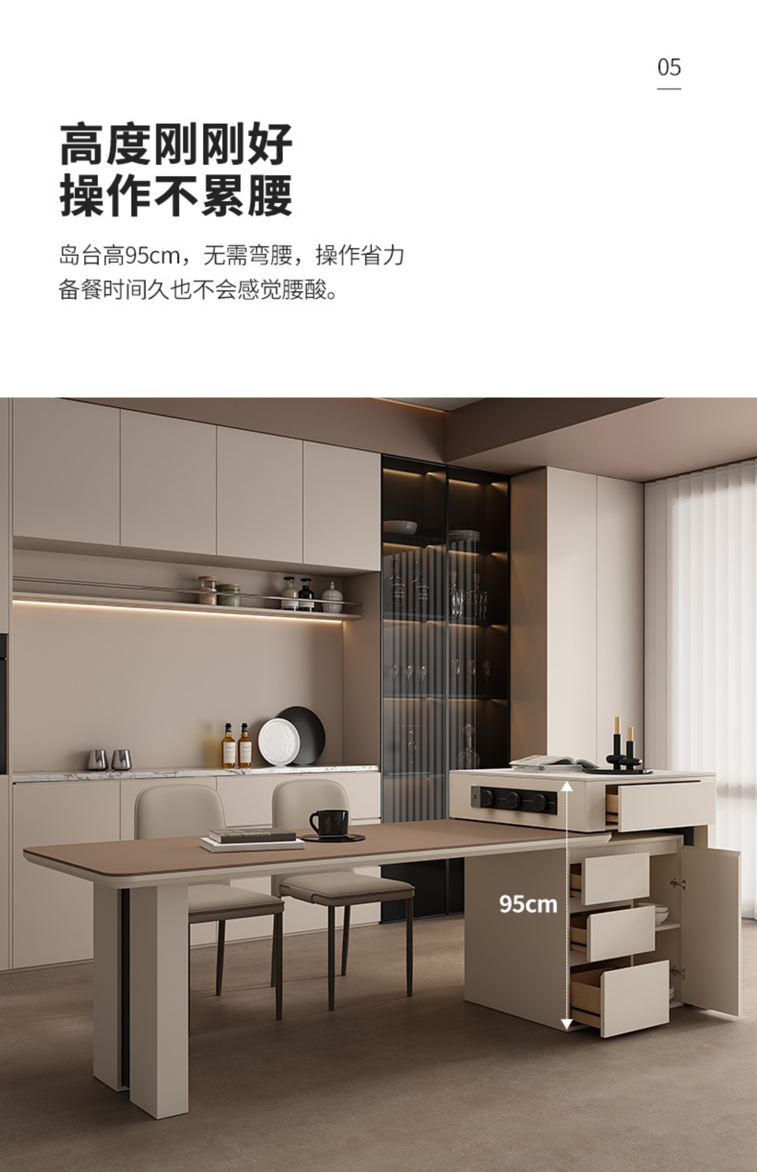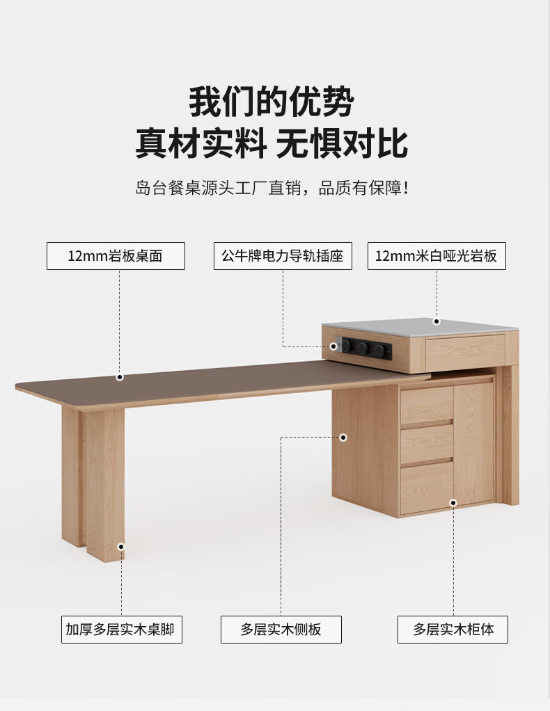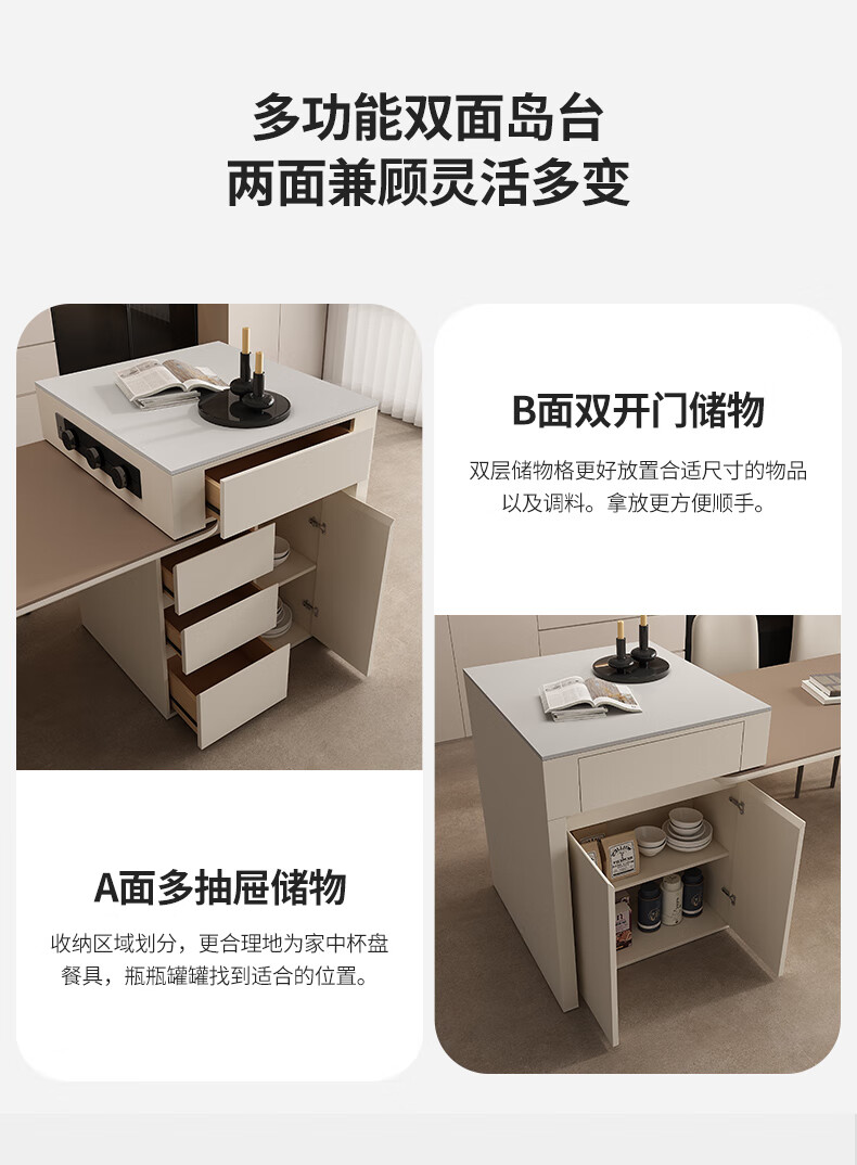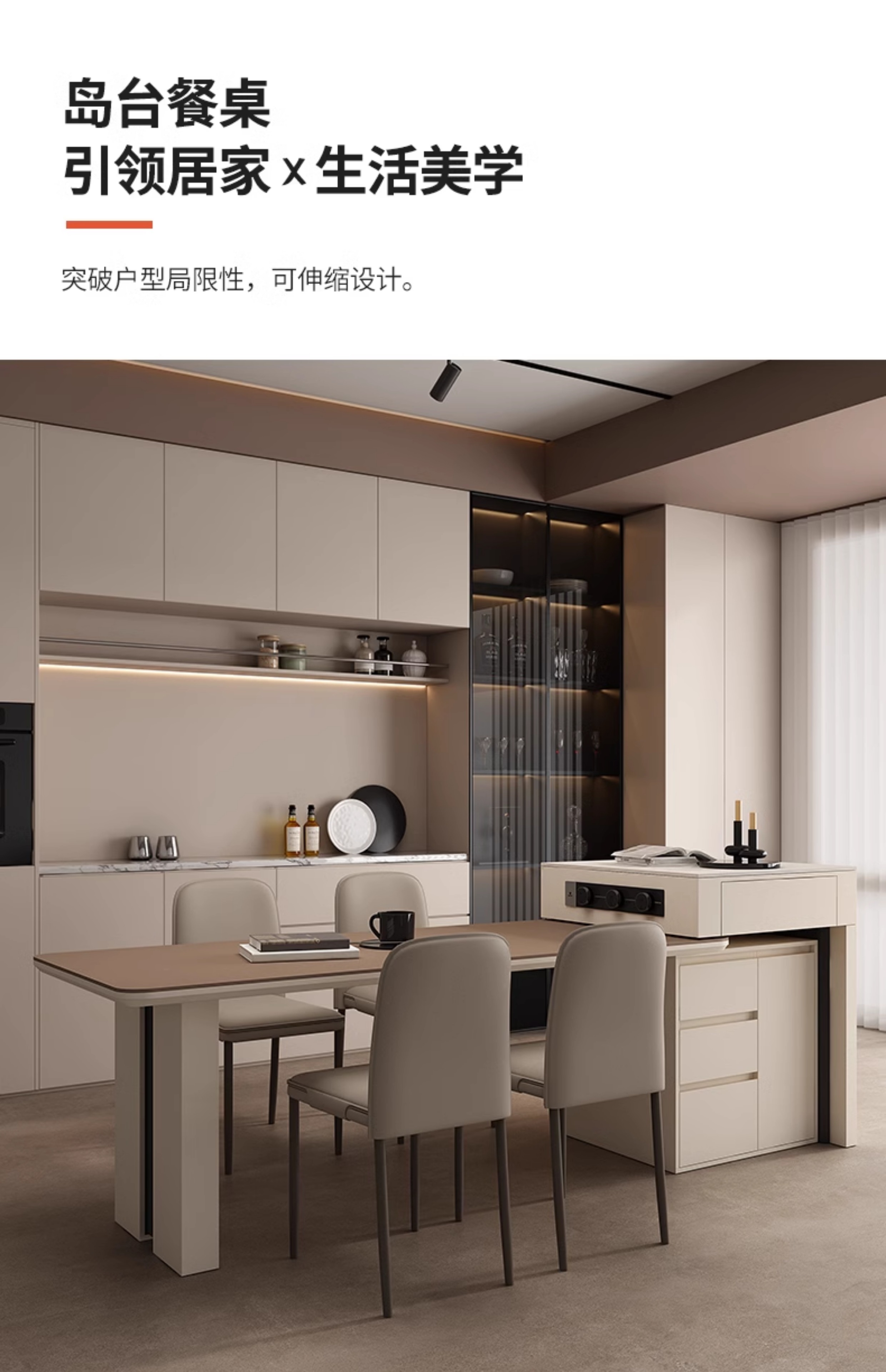Fanyi open guide table dining table sideboard integrated household retractable slate dining table tea table dual-purpose island table dining island table 1.68-2.25 meters retractable island dining table