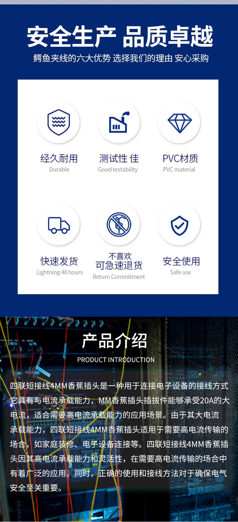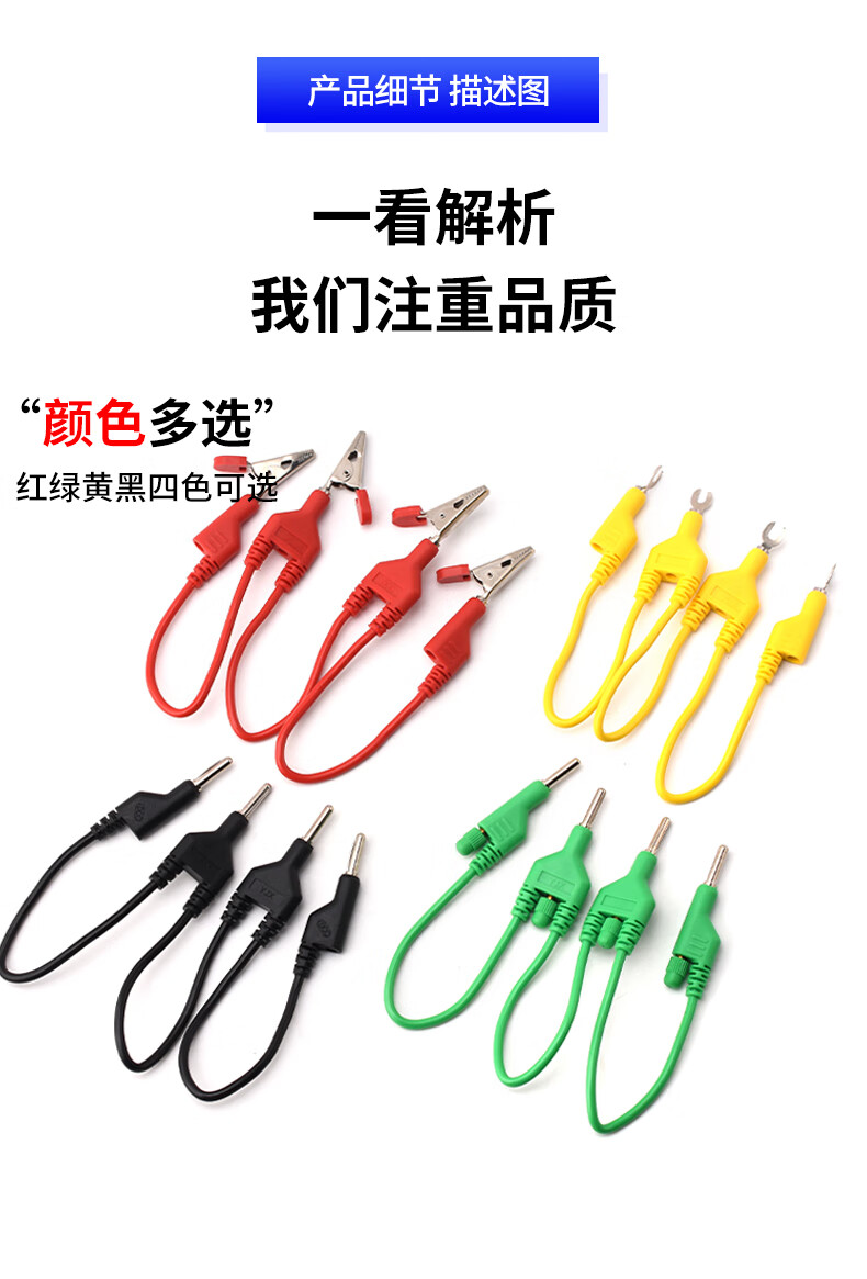 Quadruple short-circuit 4mm banana plug U-shaped insert lockable current terminal experimental short-circuit connection line Quadruple 4mm banana plug red each section 0.2 meters