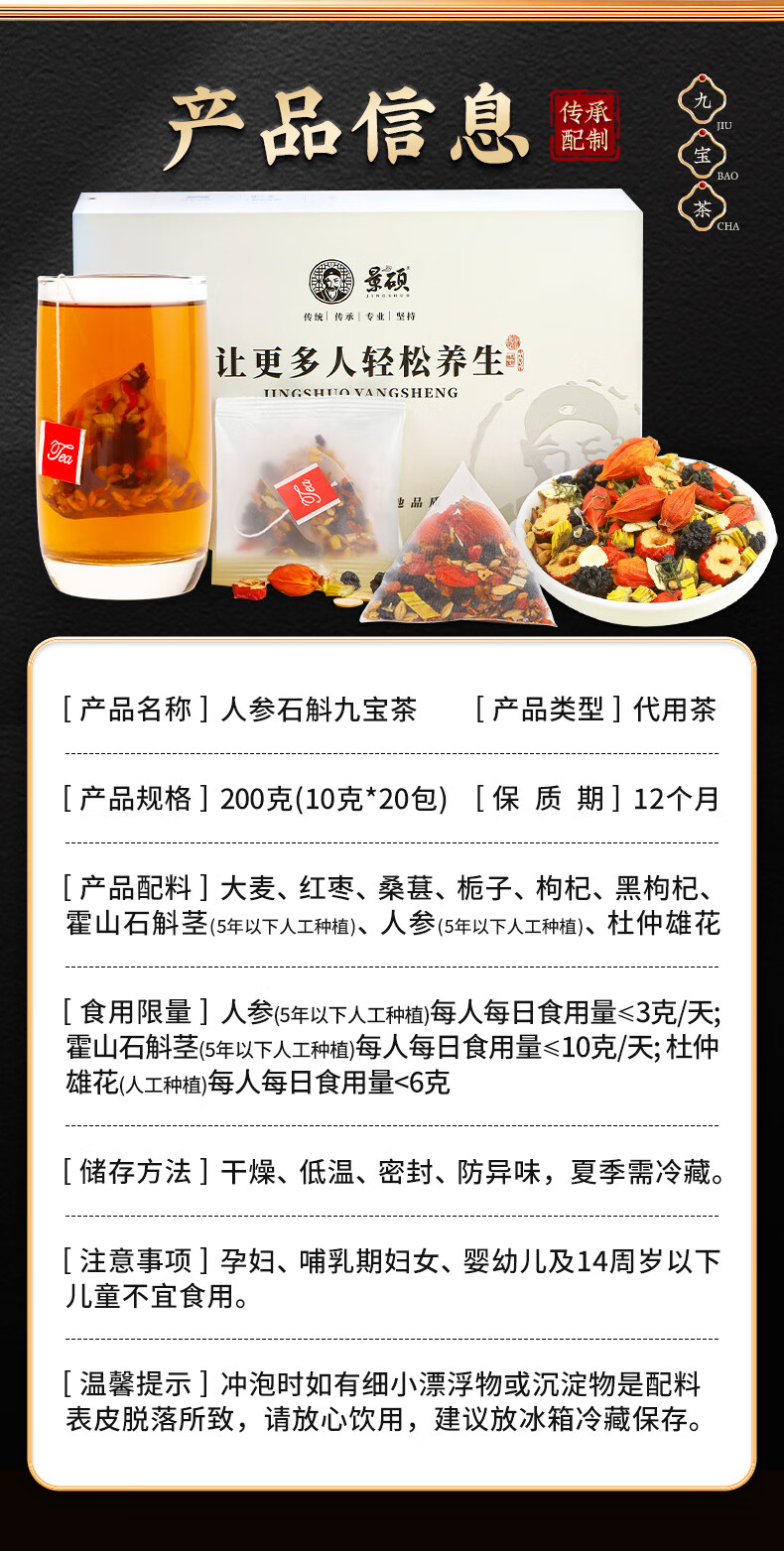 Jingshuo Wuliubabao tea, ginseng, wolfberry, mulberry, nourishing kidneys and yang, soaked in water, health-preserving tea for men, nourishing kidneys, essence, qi, blood, and liver, 40 bags, 20 bags