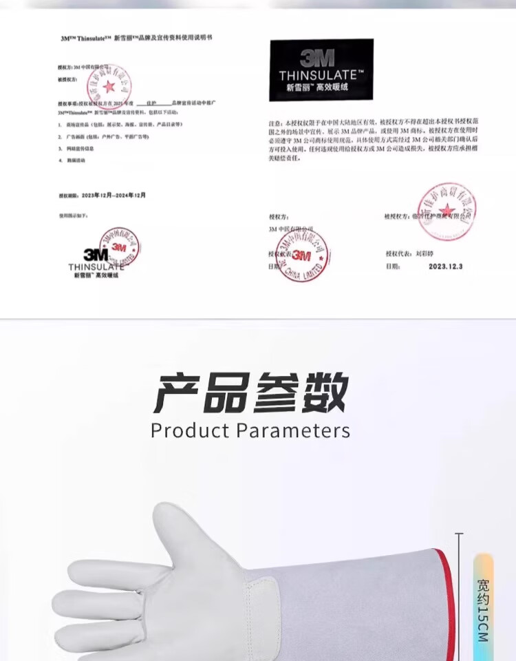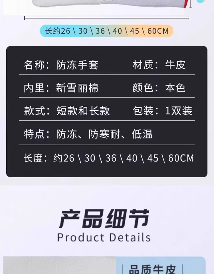 Antifreeze gloves, carbon dioxide, liquid nitrogen, LNG, dry ice cold storage, low temperature resistant fire extinguisher, refrigerator cabinet, cold protection and warm gas filling station, 36cm model (double-layer thickening upgrade), one size fits all
