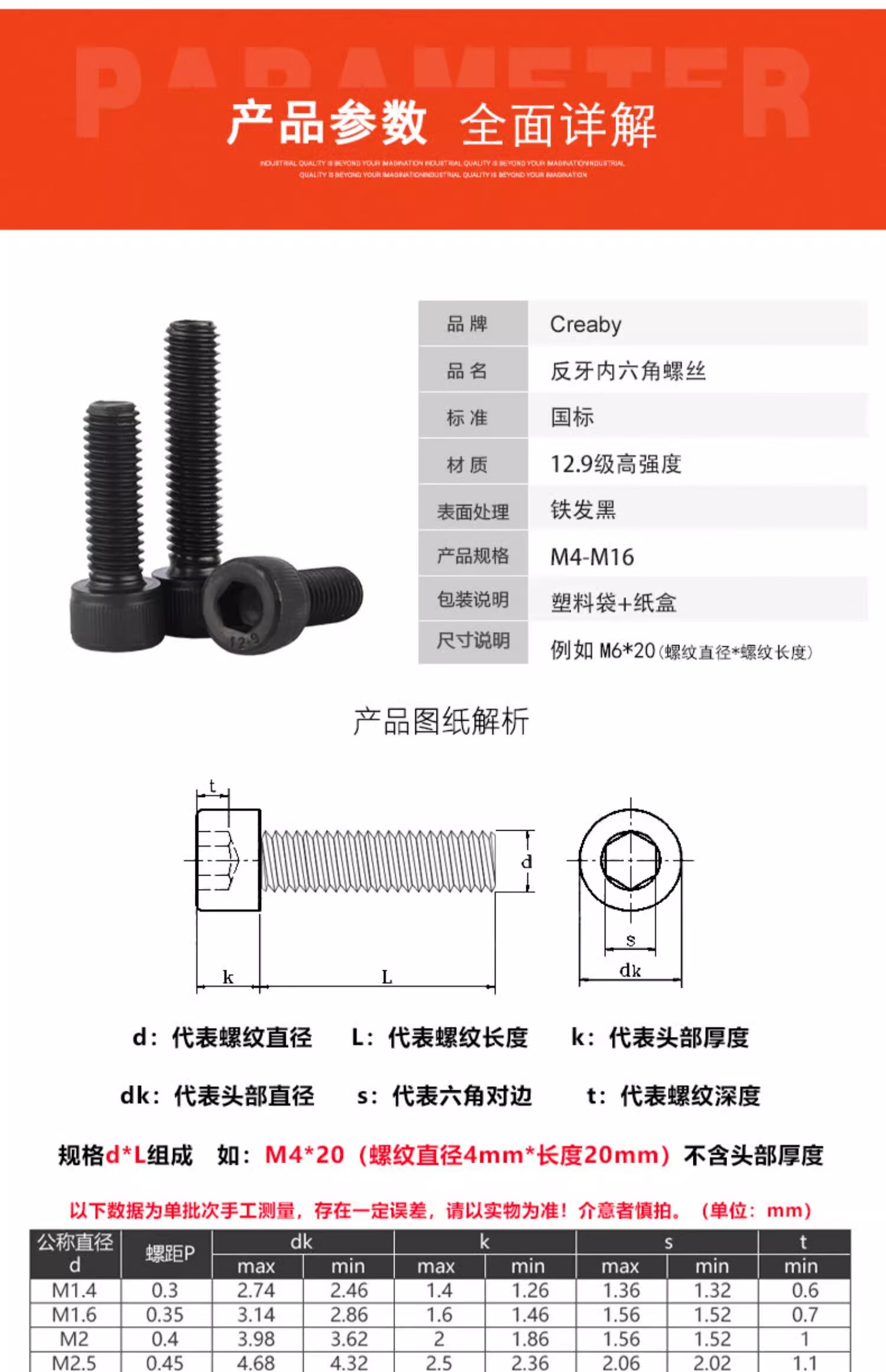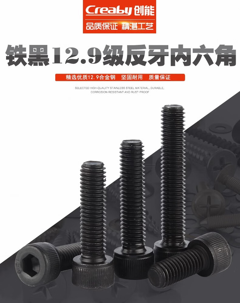 Creaby12.9 grade counter-thread hexagon socket screw left-thread cylindrical head screw counter-thread cup head bolt fasteners national standard M8x30 (5 pieces)
