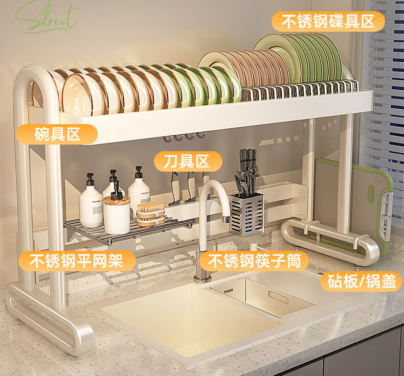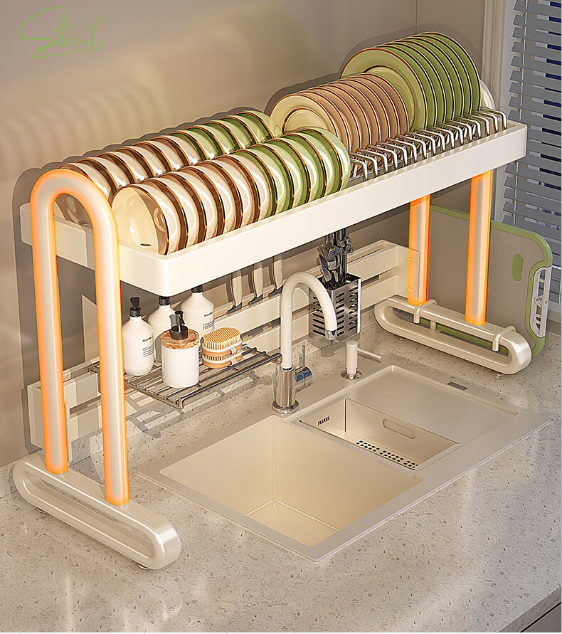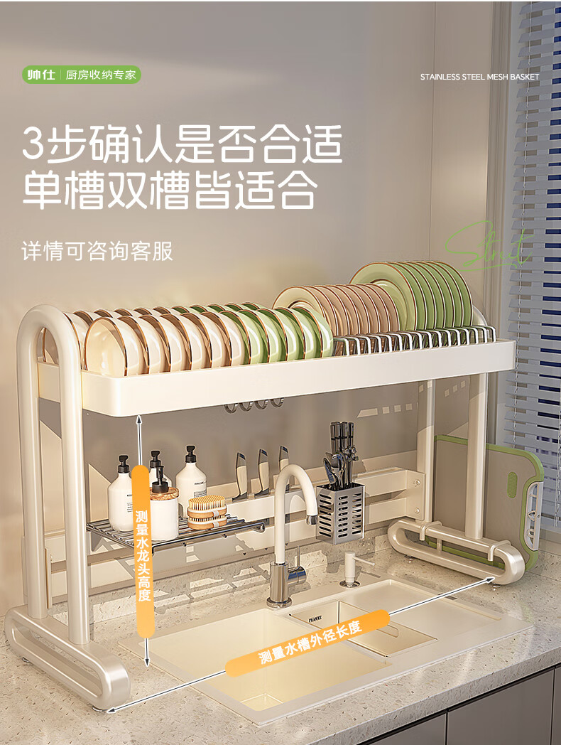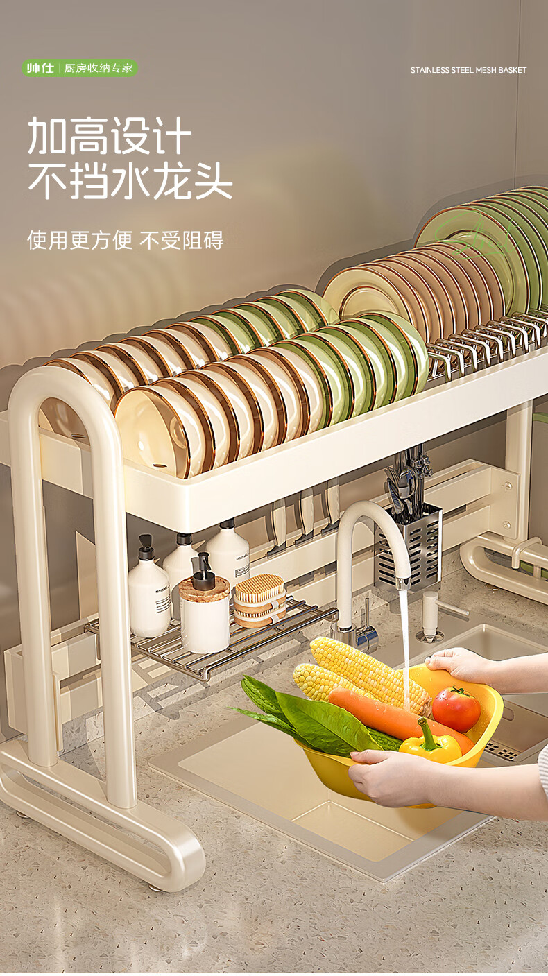 Shuaishi kitchen sink rack drain rack dishwasher rack basket sink dish storage rack countertop utensils white stainless steel mesh basket single layer 85 long-6 piece set