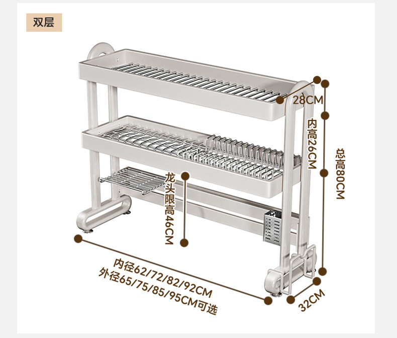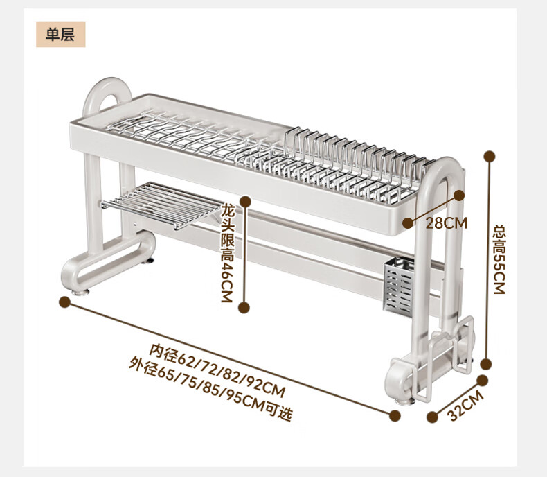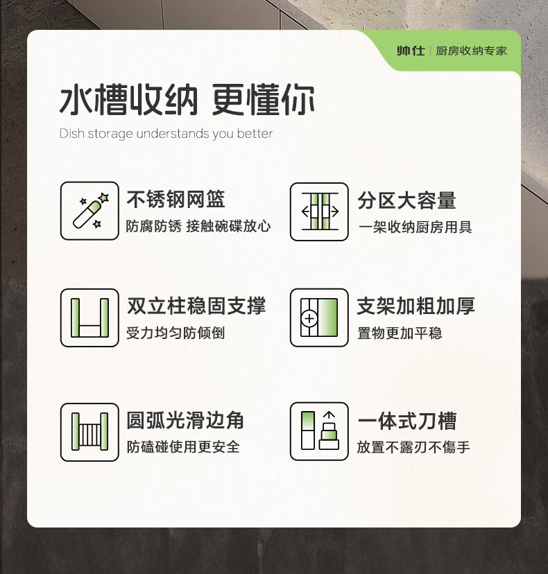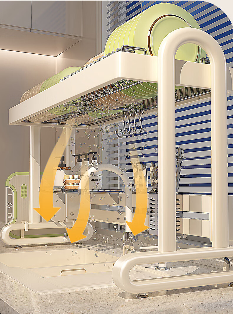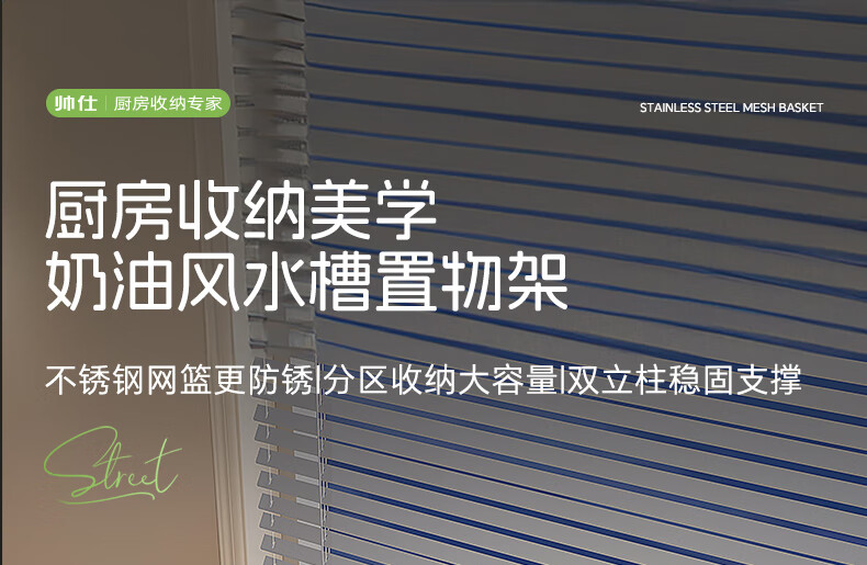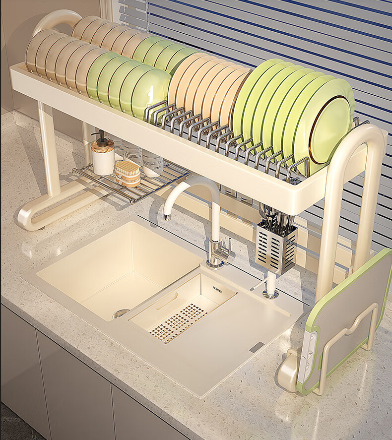 Shuaishi kitchen sink rack drain rack dishwasher rack basket sink dish storage rack countertop utensils white stainless steel mesh basket single layer 85 long-6 piece set