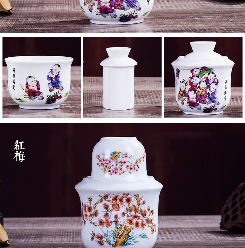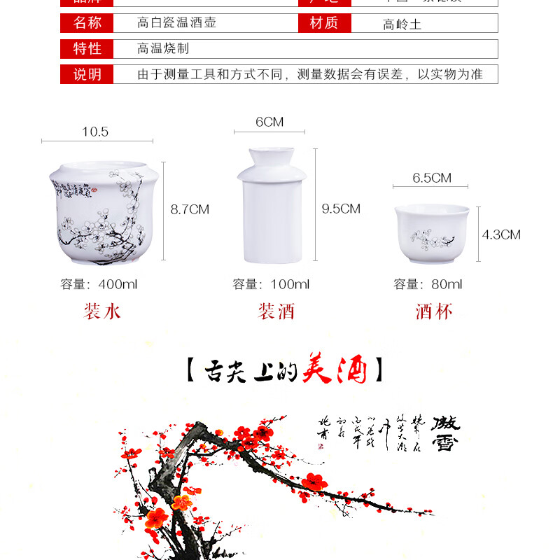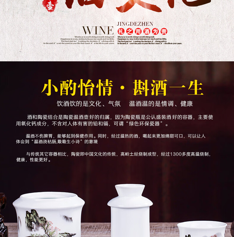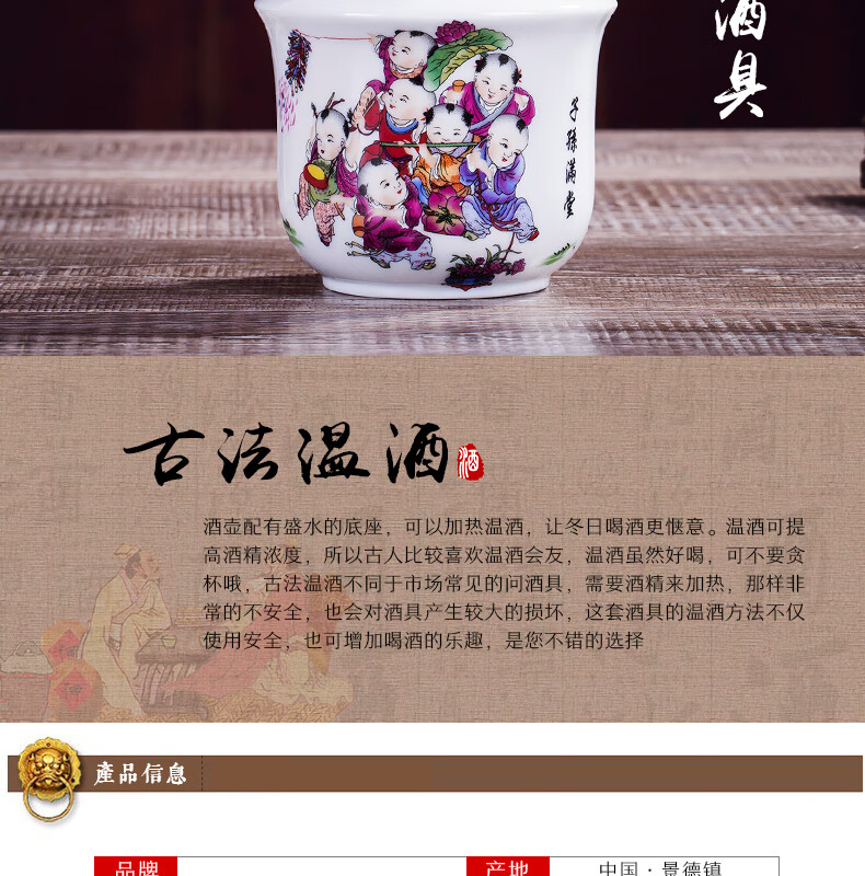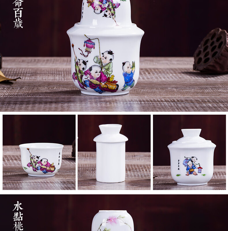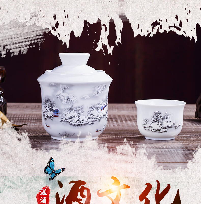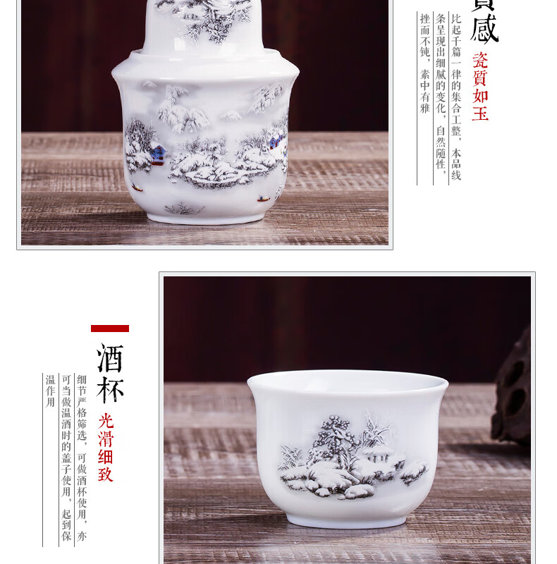 Zhiyao Jingdezhen ceramic wine jug, wine warmer set, rice wine, sake and white wine cup, household wine set, two and a half pounds, family portrait, two and a half pounds