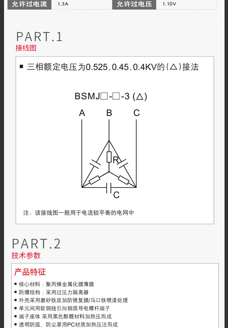 Self-healing low-voltage capacitor BSMJS0.45-20-3 parallel power capacitor power compensation 0.4