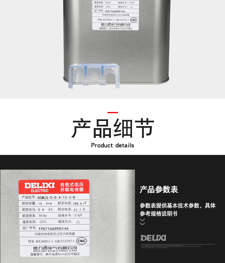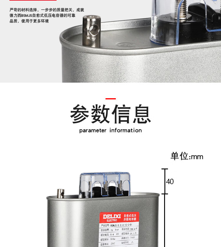 Capacitor BSMJS0.4 15-3 self-healing low voltage parallel power capacitor power compensation 0.4-15-3