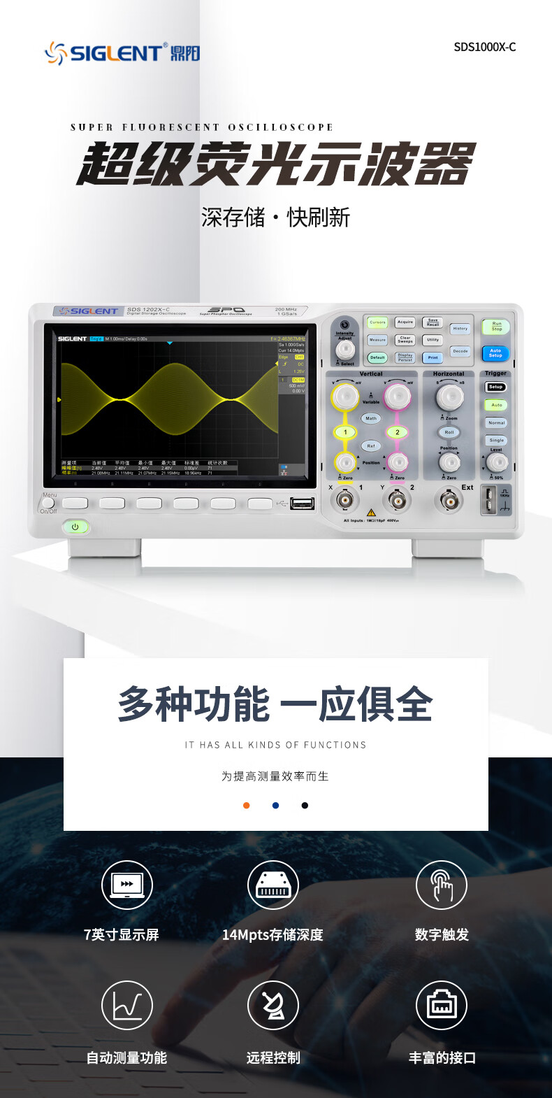 SIGLENT high-precision digital oscilloscope SDS04/204X-C dual/four-channel 200M bandwidth SDS02X-C SDS2074X PLUS upgradeable bandwidth 1