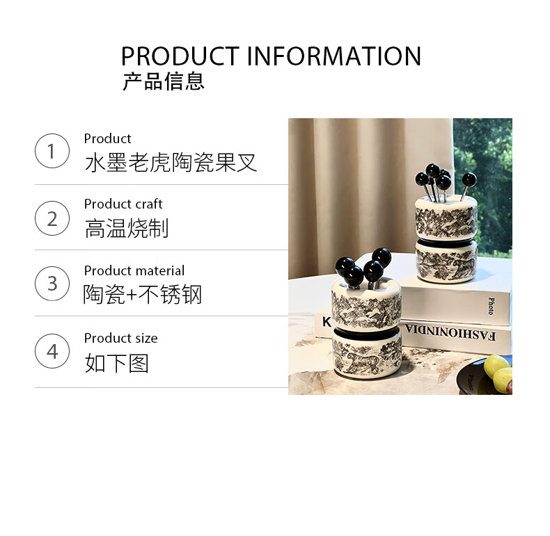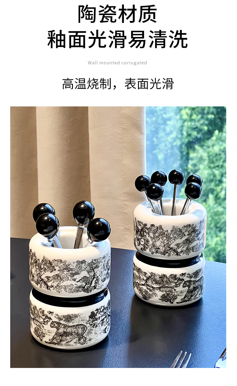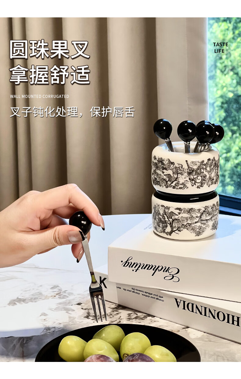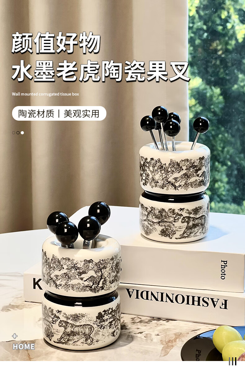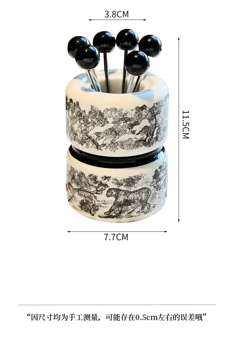 Zunmousse ceramic fruit fork set light luxury home living room dining table coffee table cake dessert fork coffee spoon creative storage jar ink tiger fruit fork jar 1 jar 6 forks