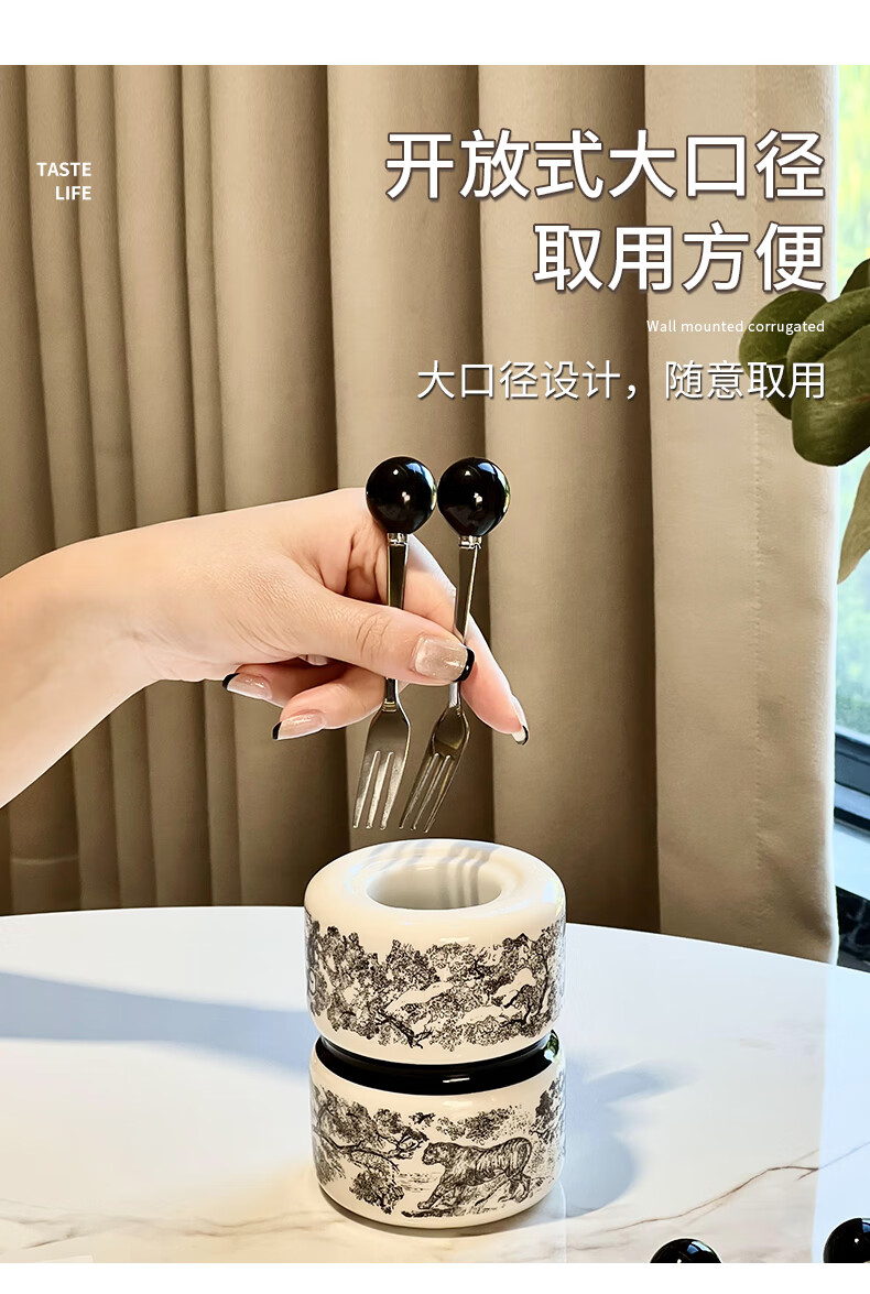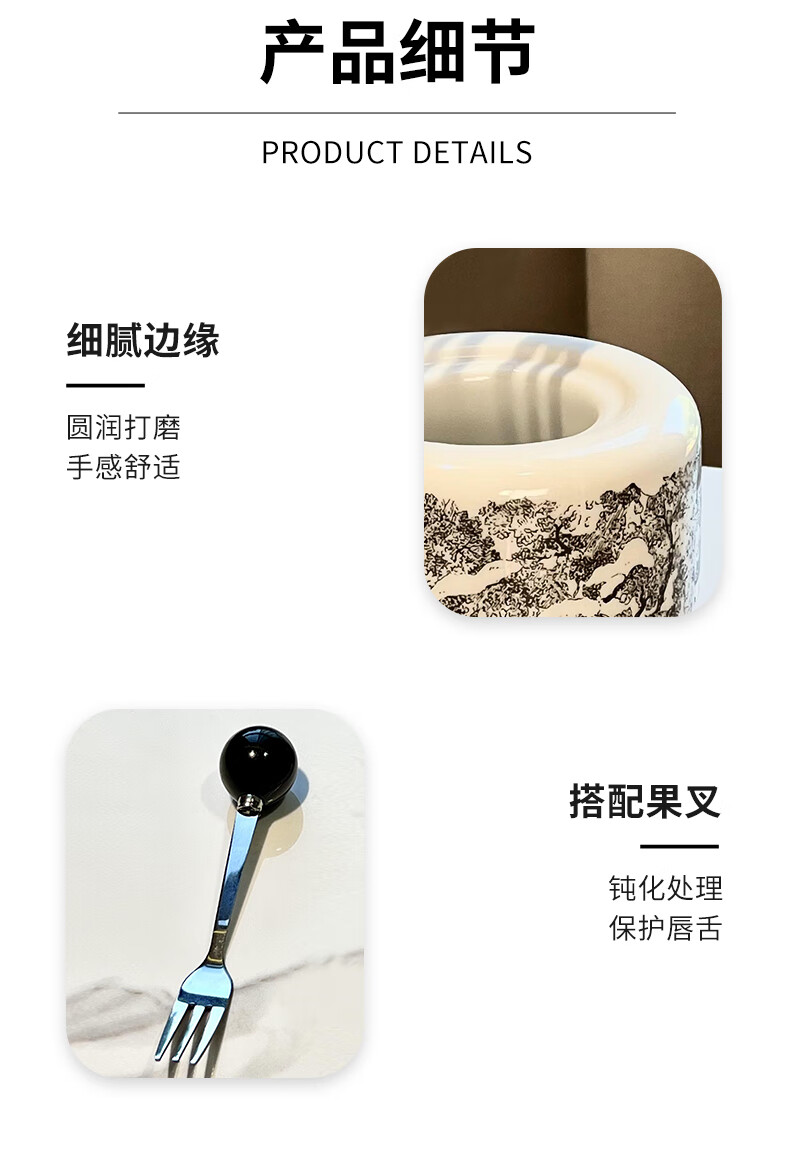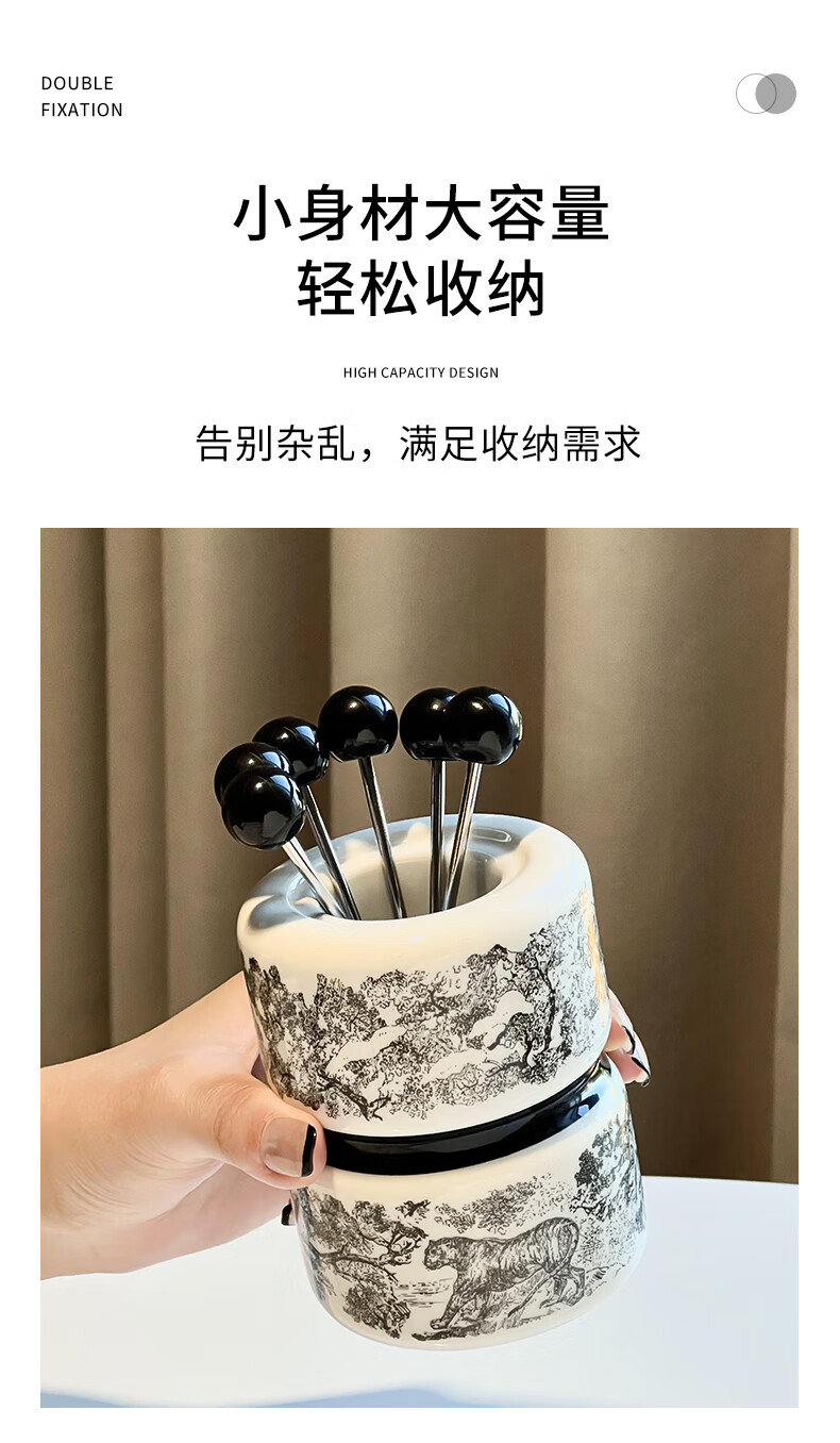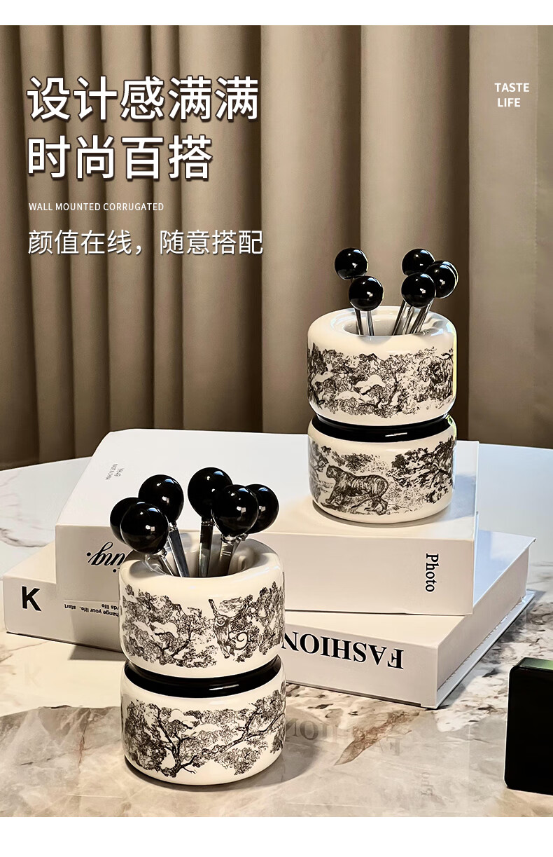 Zunmousse ceramic fruit fork set light luxury home living room dining table coffee table cake dessert fork coffee spoon creative storage jar ink tiger fruit fork jar 1 jar 6 forks