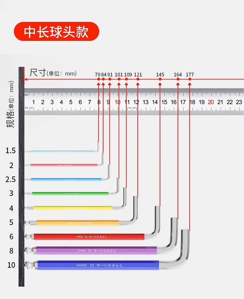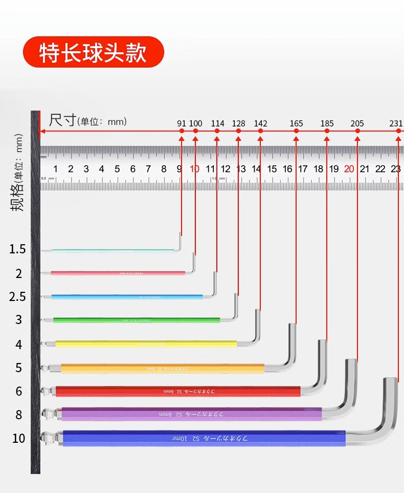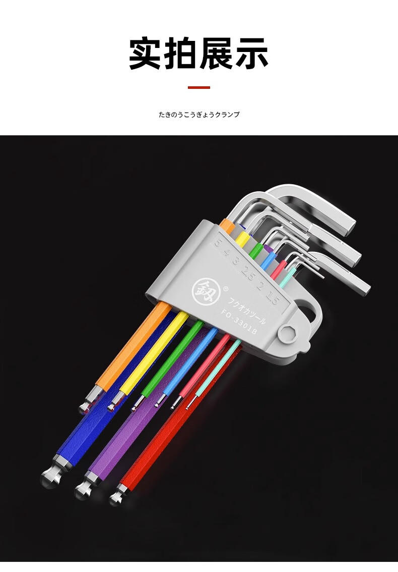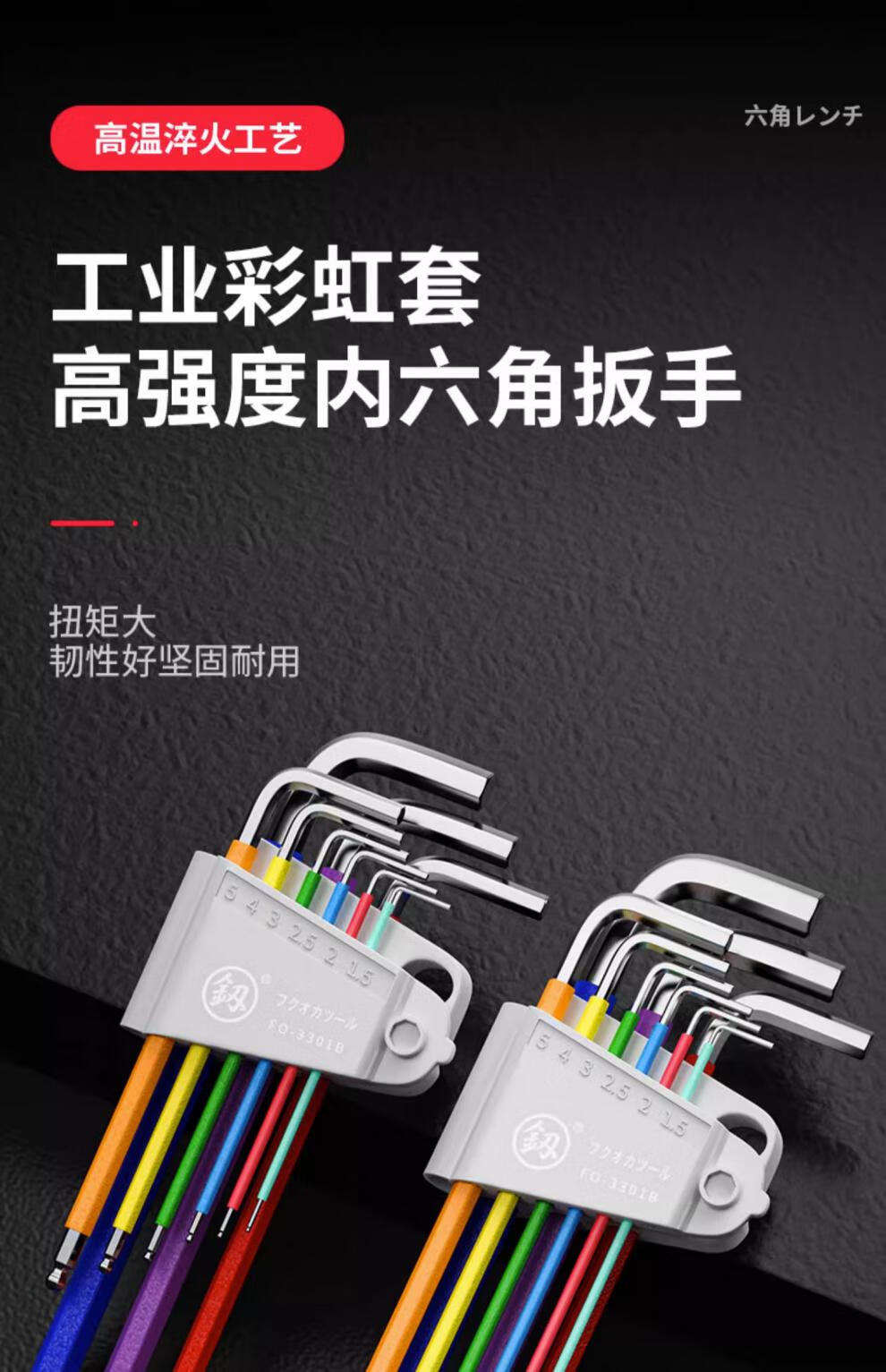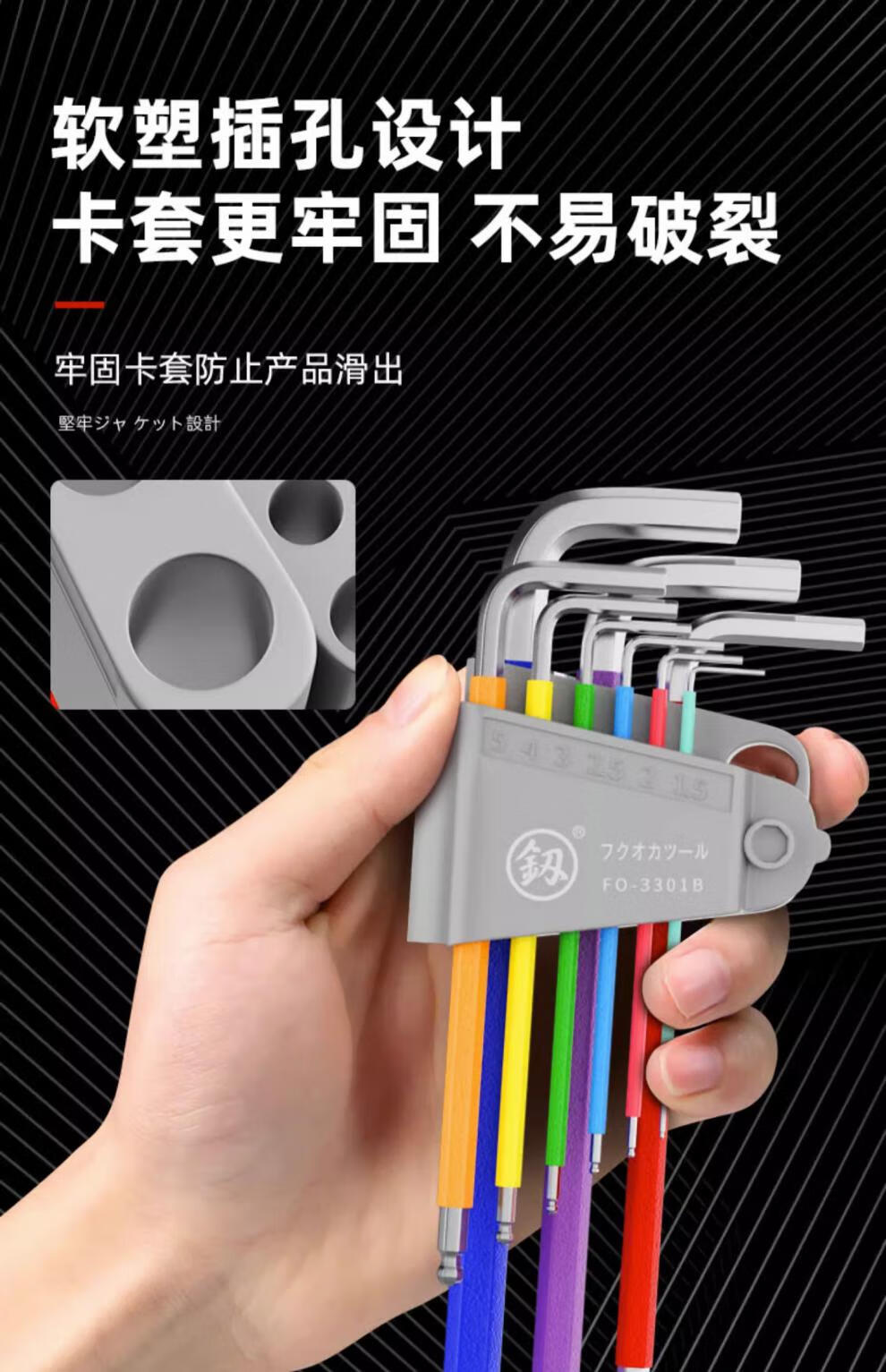 Hexagonal wrench set, hexagonal screwdriver, hexagonal extended hand tools, hexagonal wrench FO-3301B, medium-long hexagonal