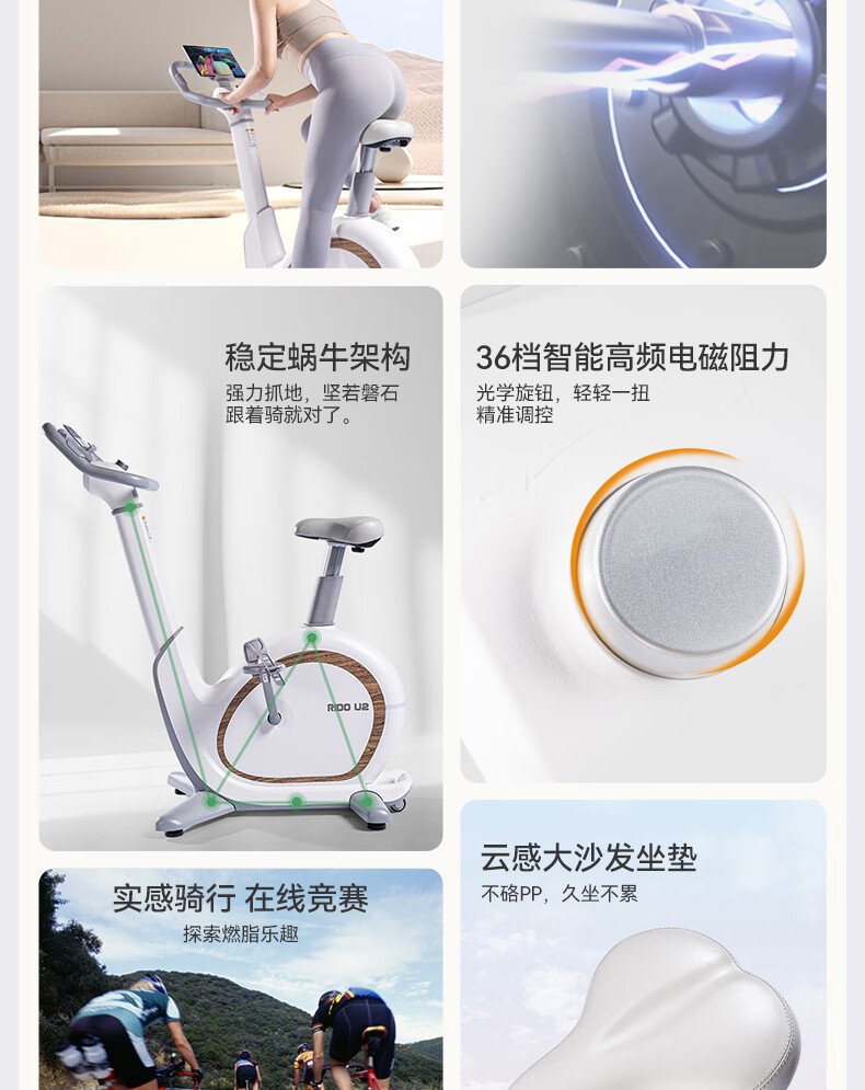 RIDO exercise bike U2 vertical snail bike for home use, smart electromagnetic resistance adjustable silent fitness equipment, heavy new product, door-to-door delivery and installation included