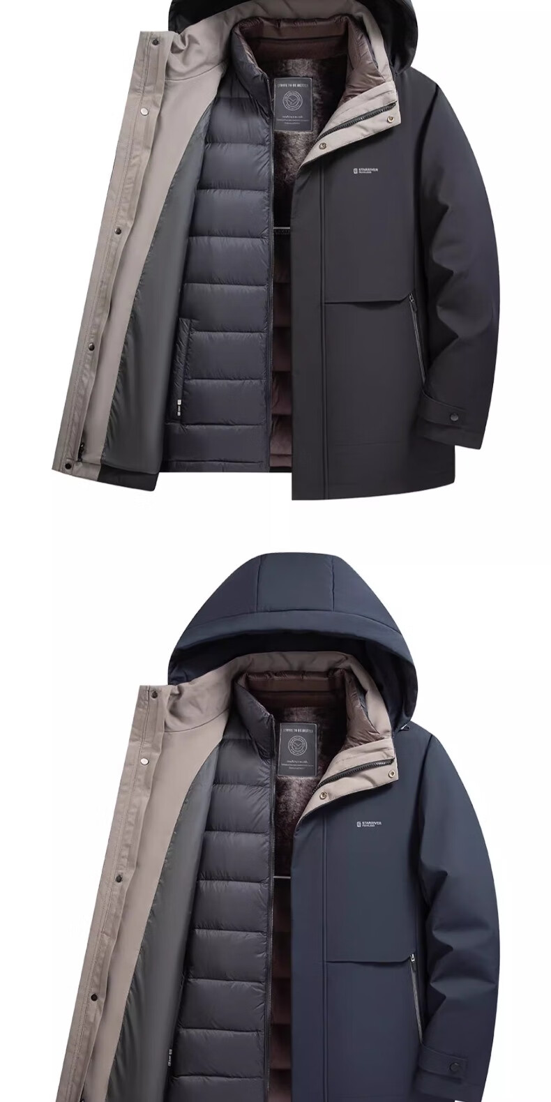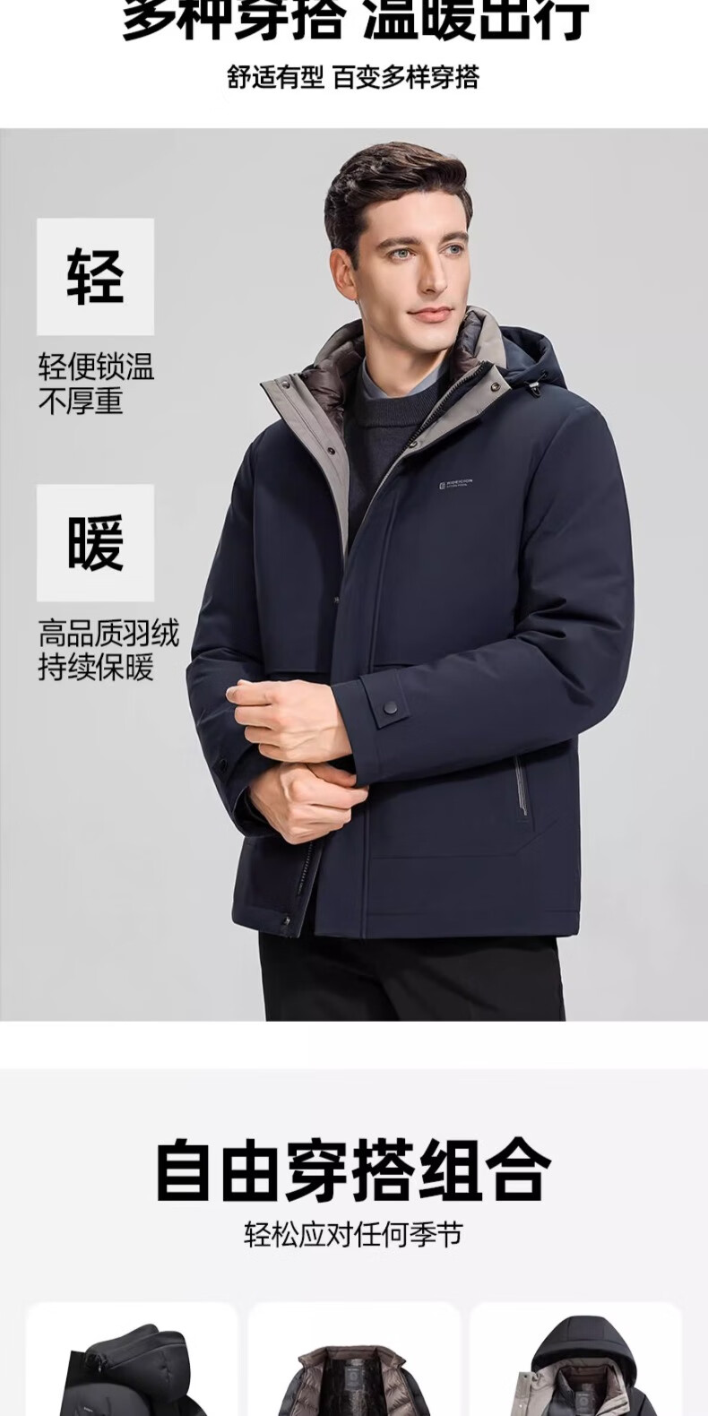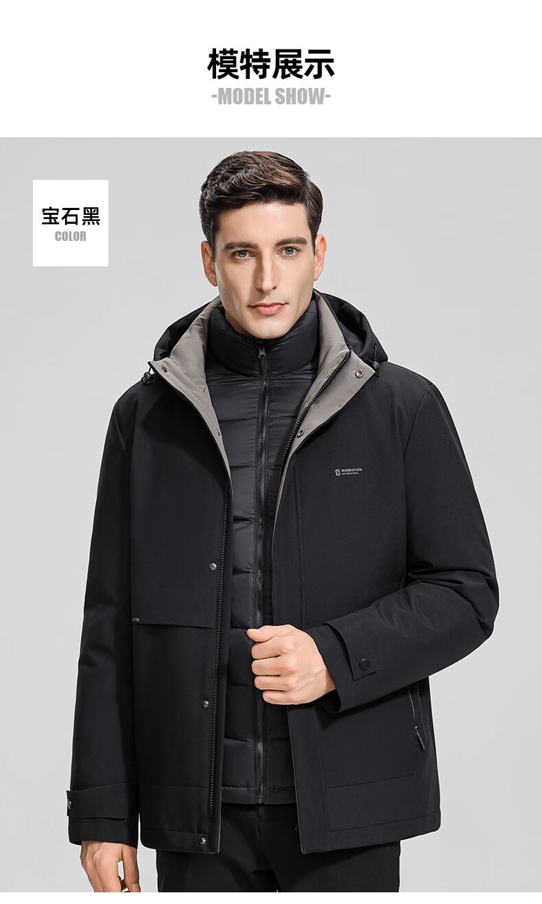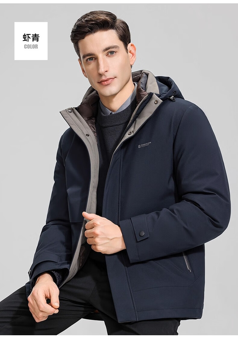Yaya (YAYA) One garment for multiple wears Dad's winter down jacket for middle-aged and elderly men with removable inner liner and thickened warm jacket JH shrimp blue detachable inner liner + removable hood, one garment for five wears 2XL recommended 150-165 pounds