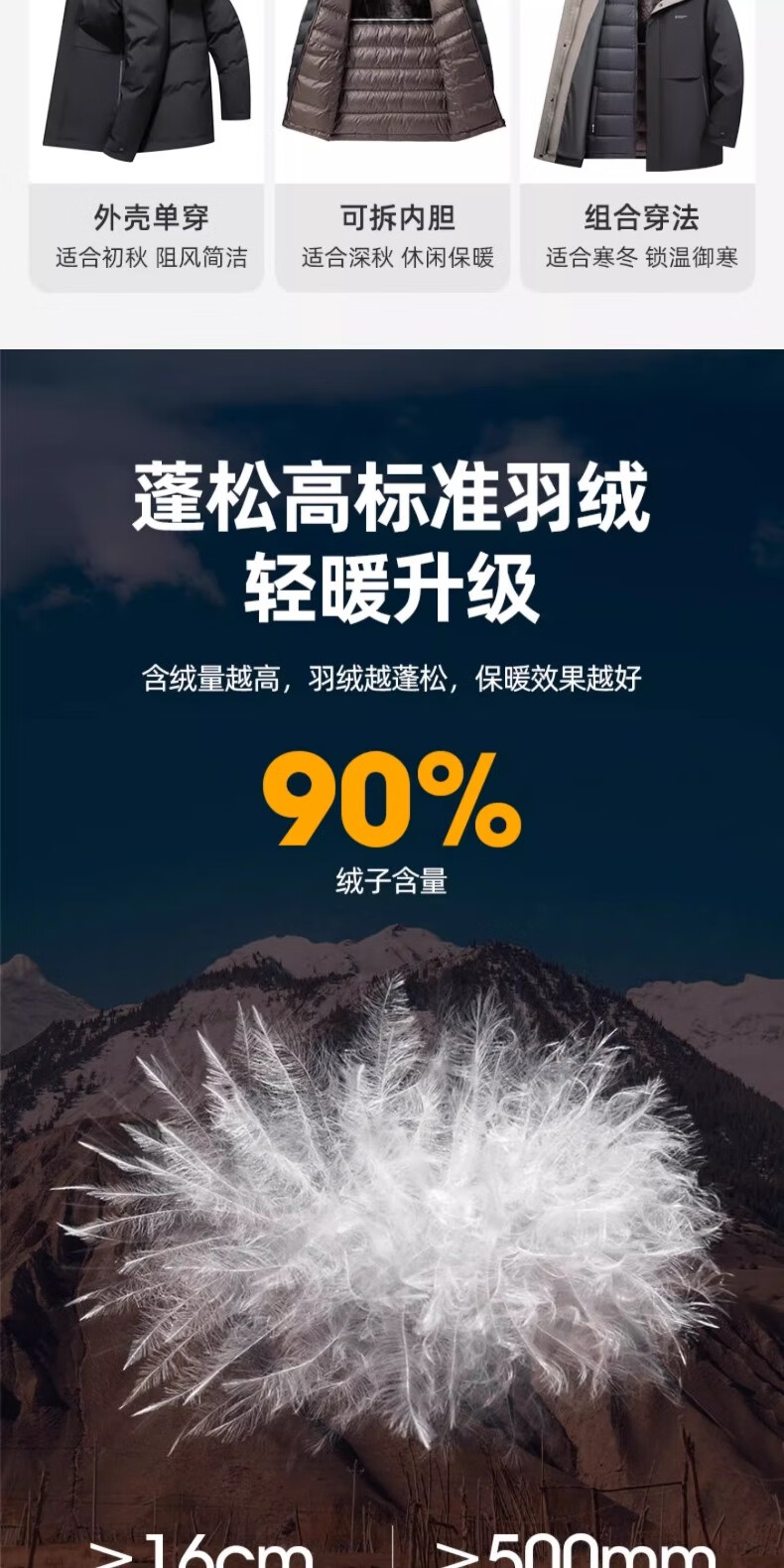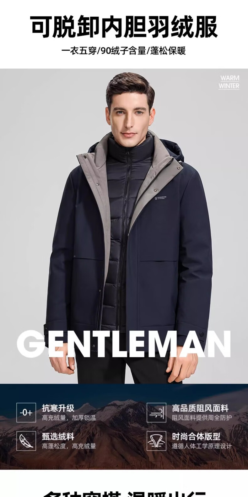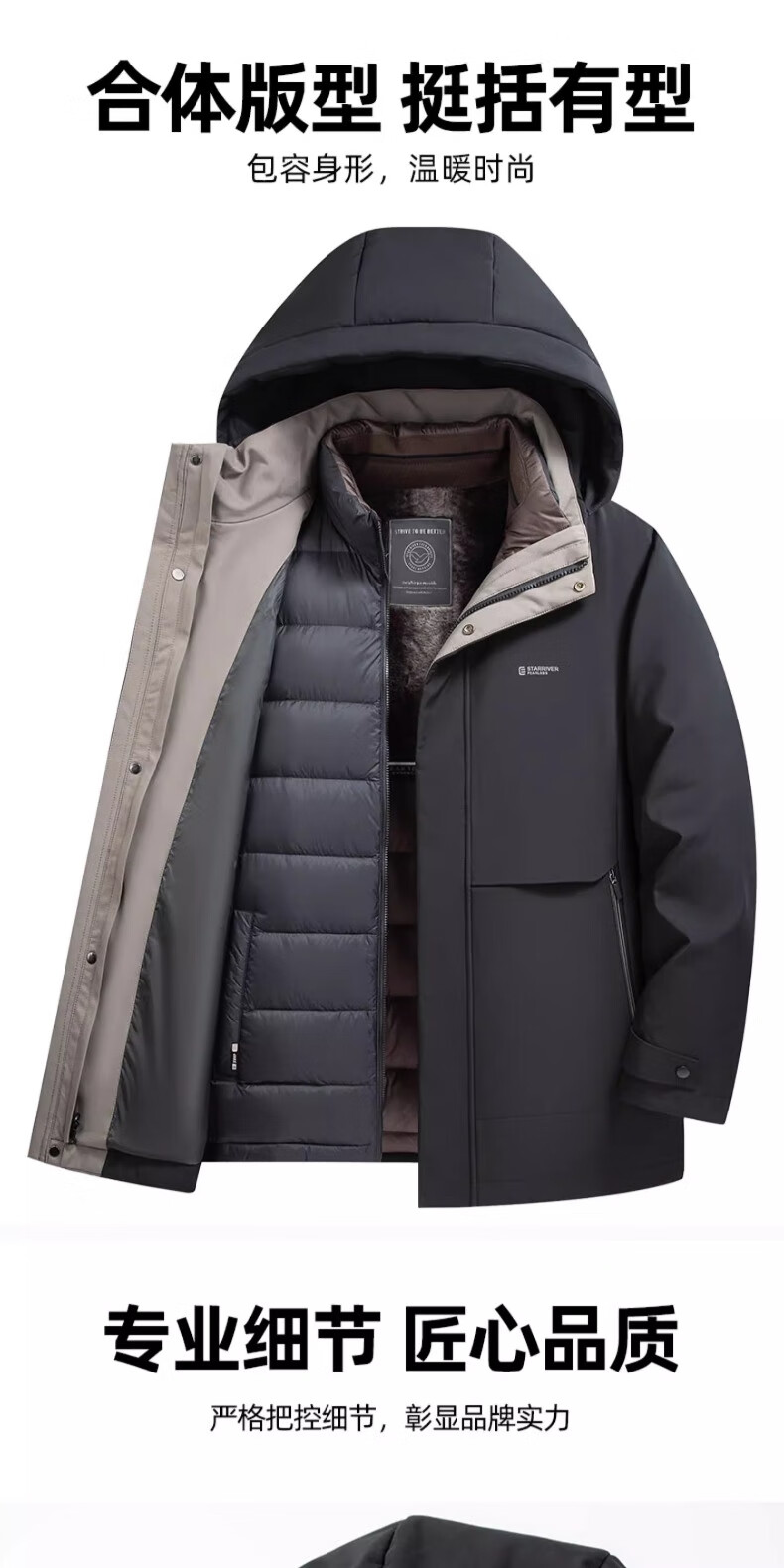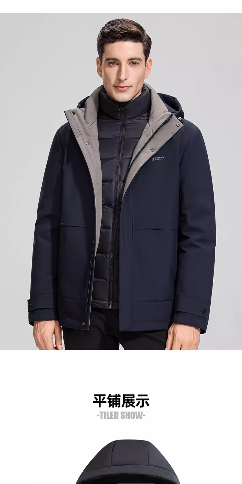 Yaya (YAYA) One garment for multiple wears Dad's winter down jacket for middle-aged and elderly men with removable inner liner and thickened warm jacket JH shrimp blue detachable inner liner + removable hood, one garment for five wears 2XL recommended 150-165 pounds