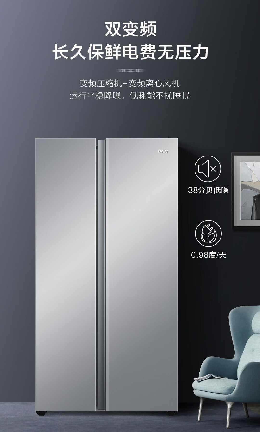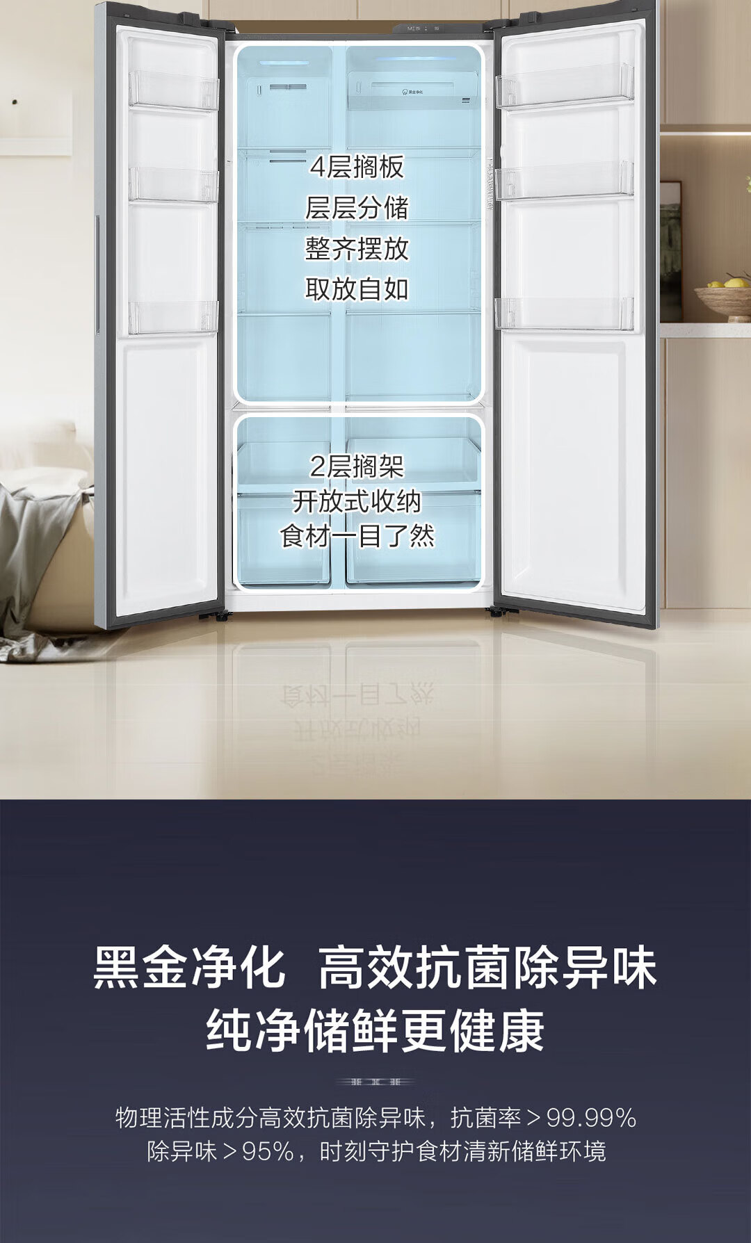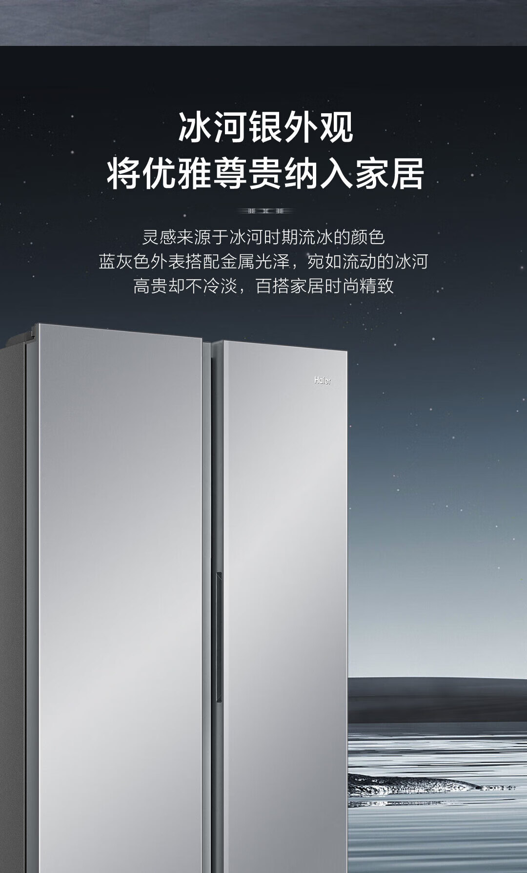 Haier refrigerator 540 liters air-cooled frost-free double-door double-door double-frequency energy-saving and odor-free large-capacity side-by-side door refrigerator Black gold purification + Glacier silver BCD-540WGHSSEDXM
