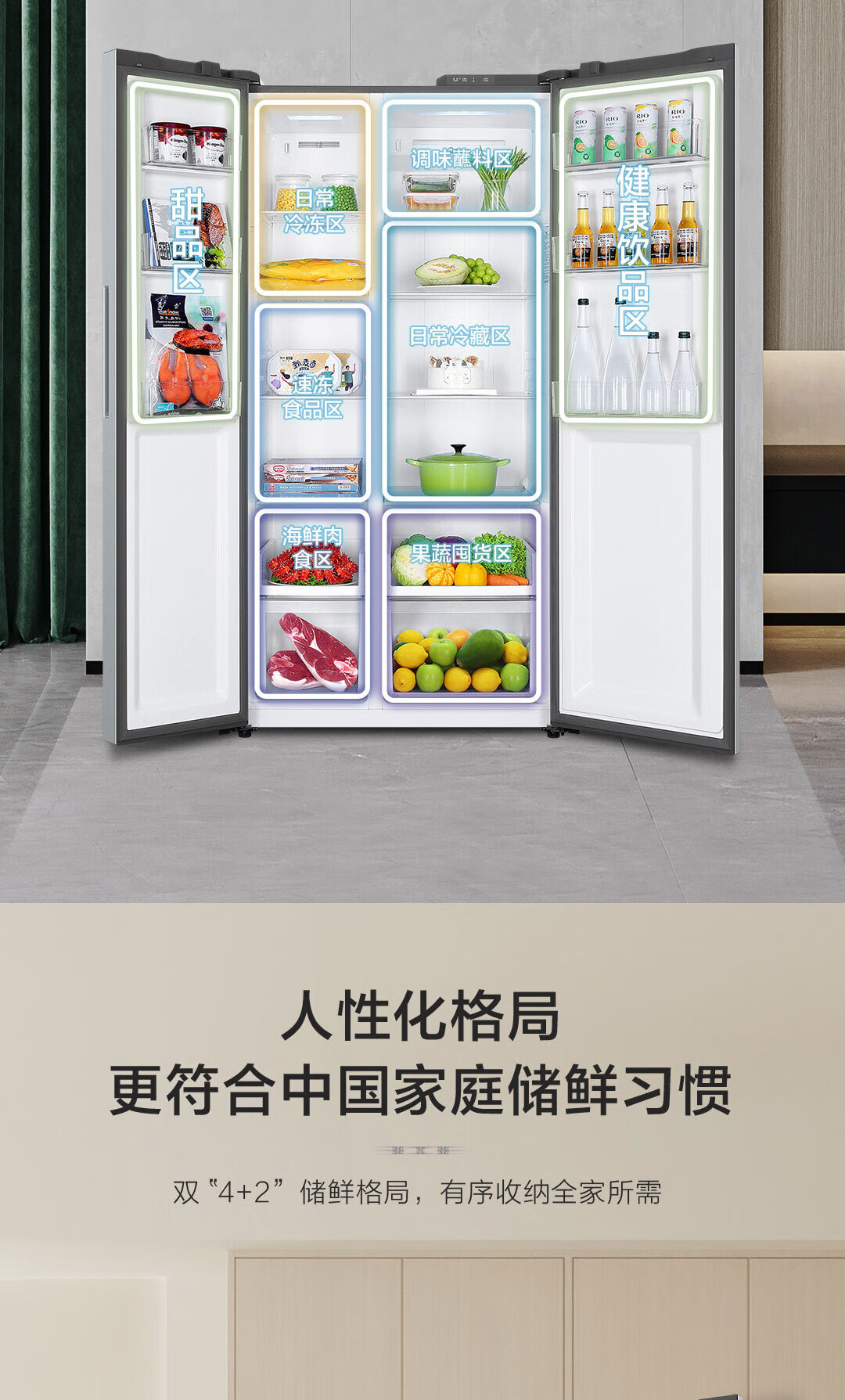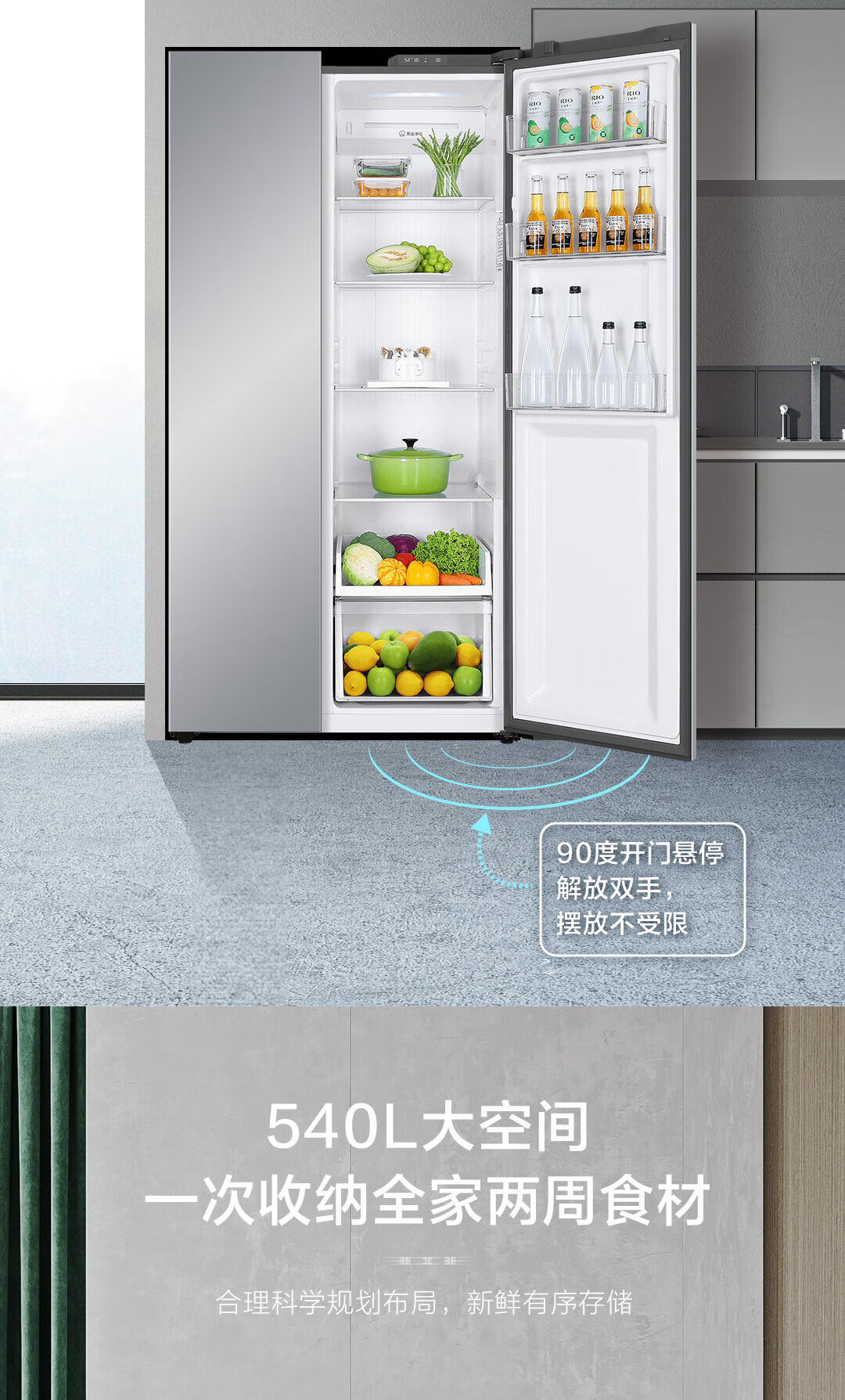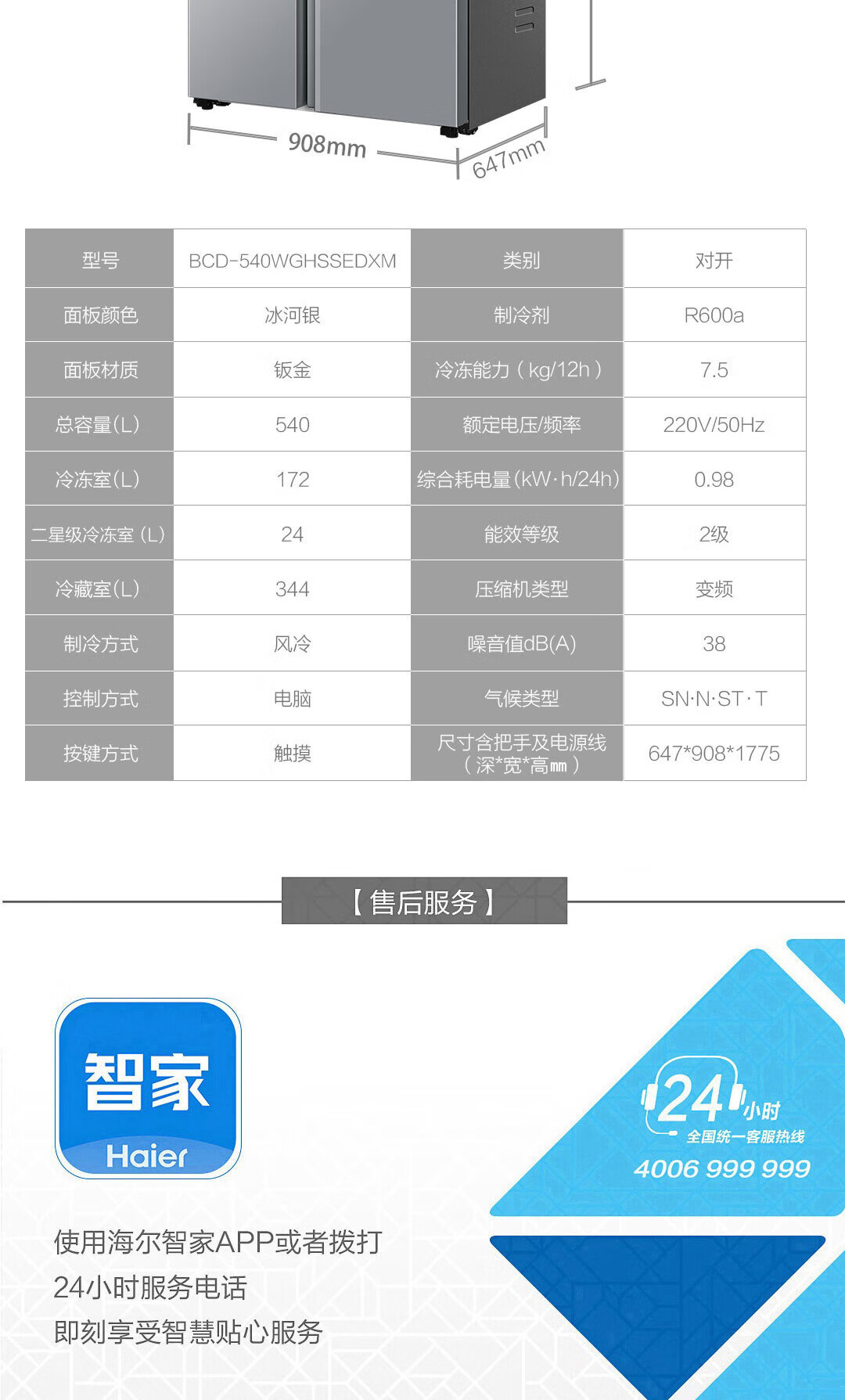 Haier refrigerator 540 liters air-cooled frost-free double-door double-door double-frequency energy-saving and odor-free large-capacity side-by-side door refrigerator Black gold purification + Glacier silver BCD-540WGHSSEDXM