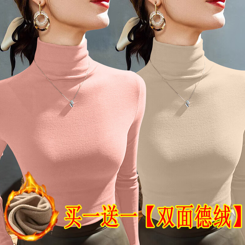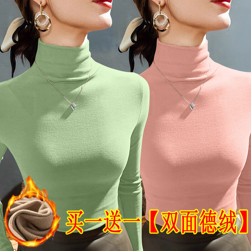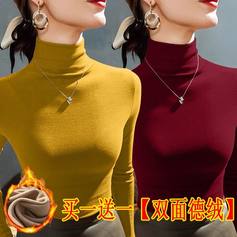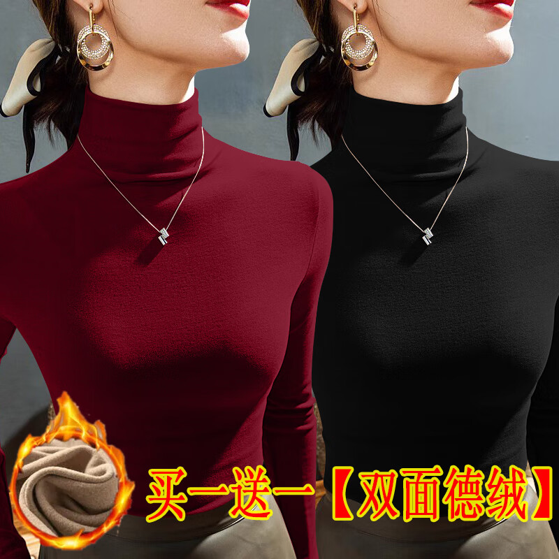 Langsha double-sided German velvet turtleneck bottoming shirt for women, autumn and winter new style, velvet and thickened outer wear, thermal underwear top, burgundy XL, suitable for 110-125 pounds