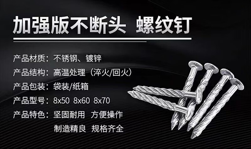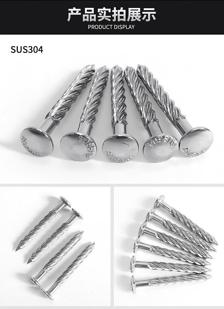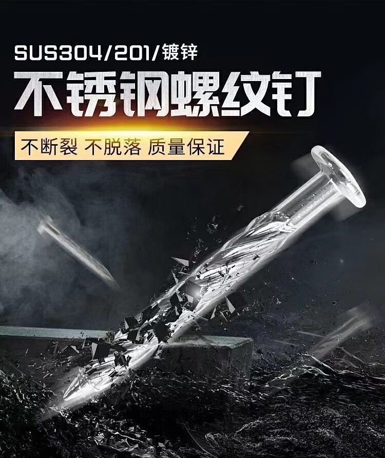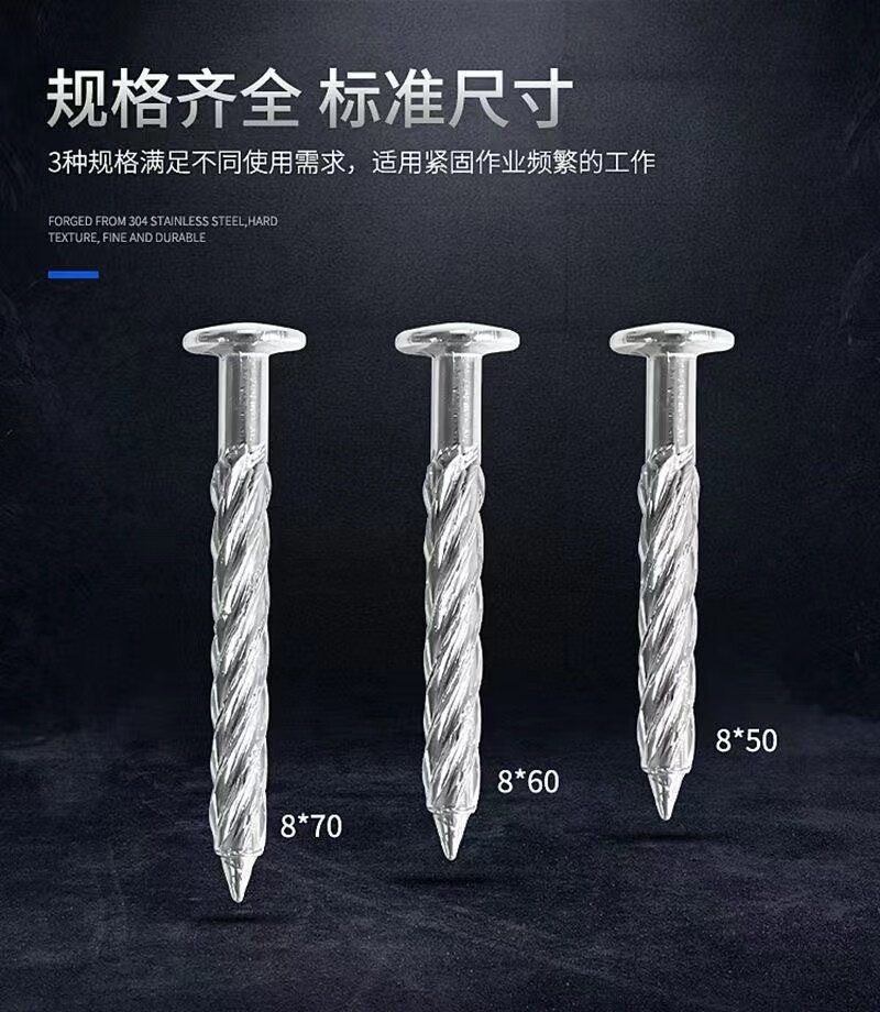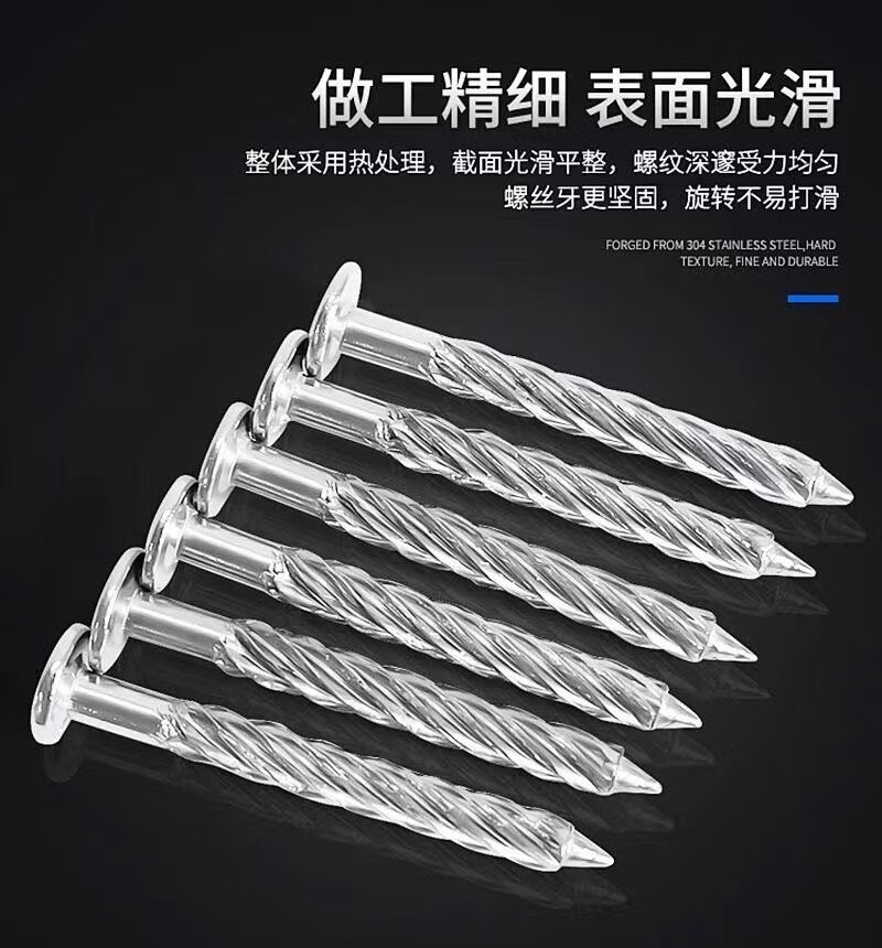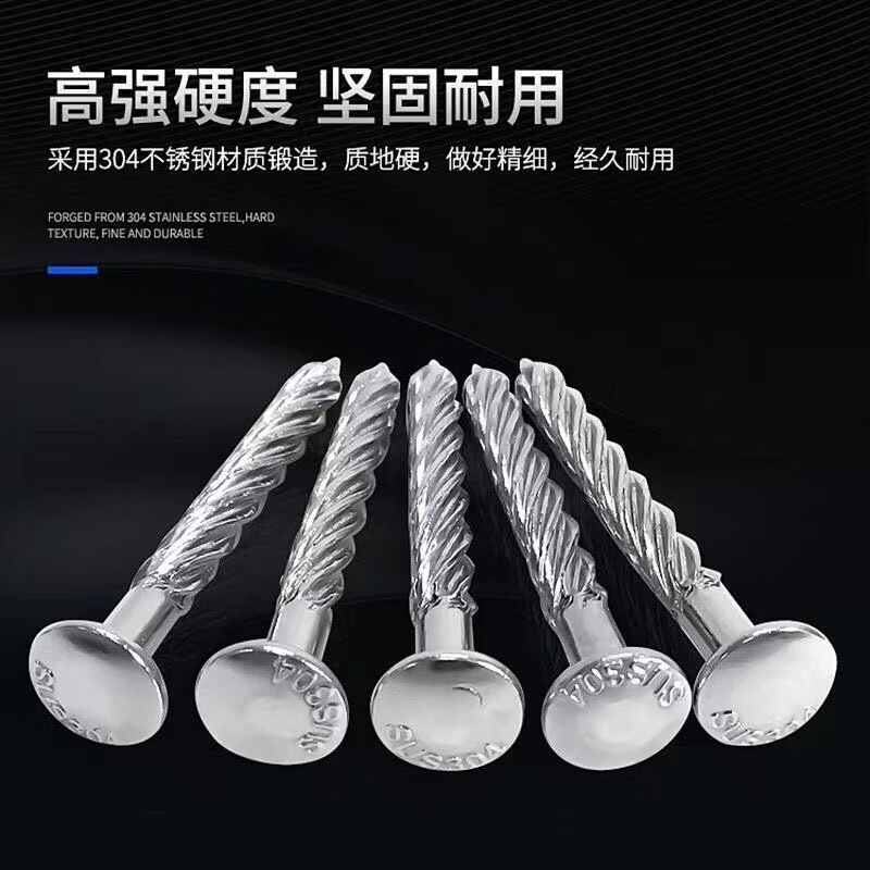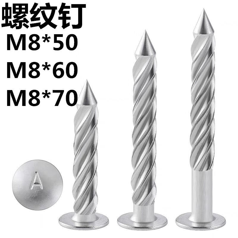 An Junsheng 304 stainless steel threaded nails to fasten the anti-theft net, fix round-head twist nails, crush ceiling nails, cement nails, upgrade and harden 304 threaded nails (100 pieces) M8*50