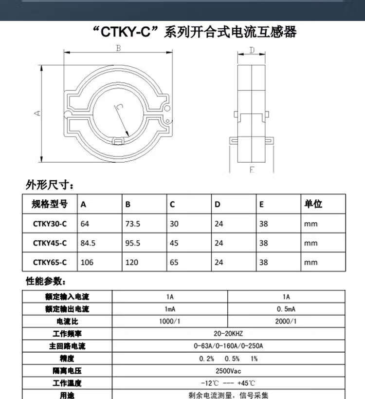 Huili customized open type transformer open residual current fire monitoring zero sequence anti-leakage protection sensor CTKY30C ultra-microcrystal 10001 (1A1mA063A
