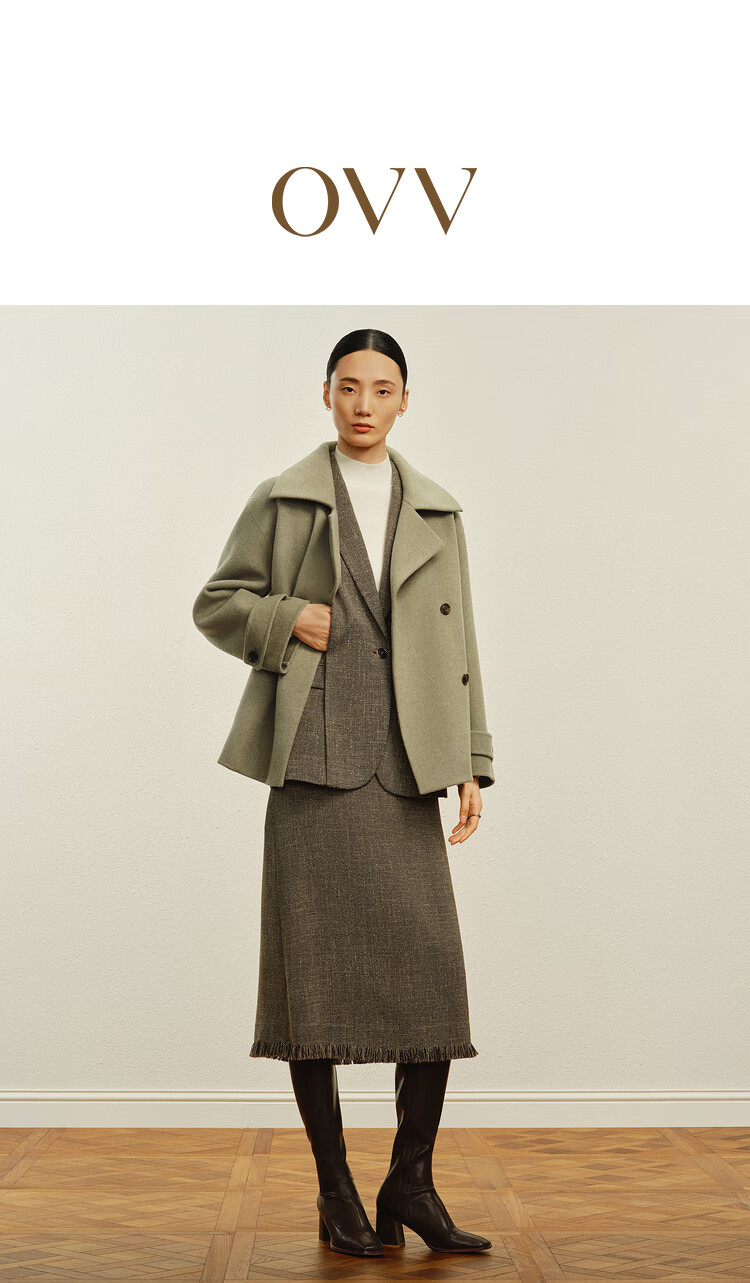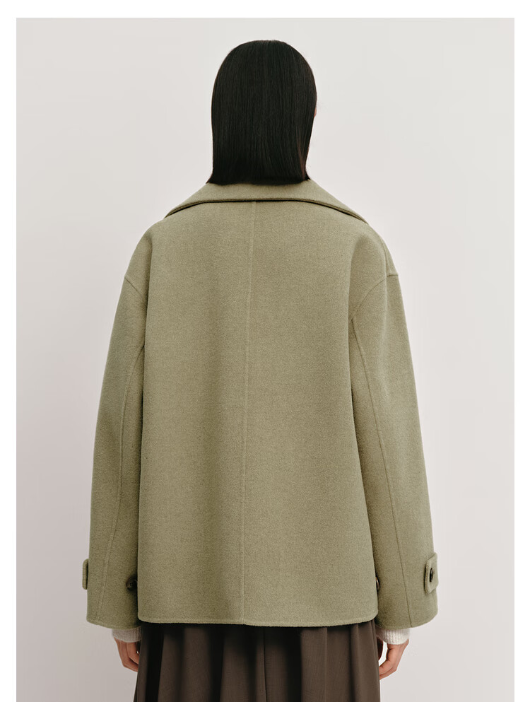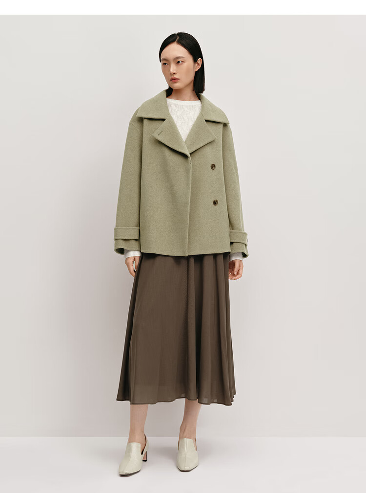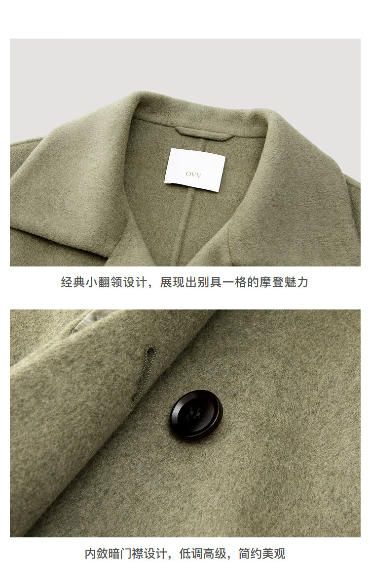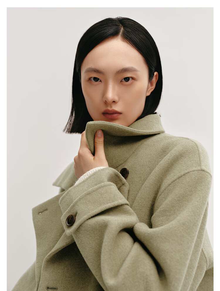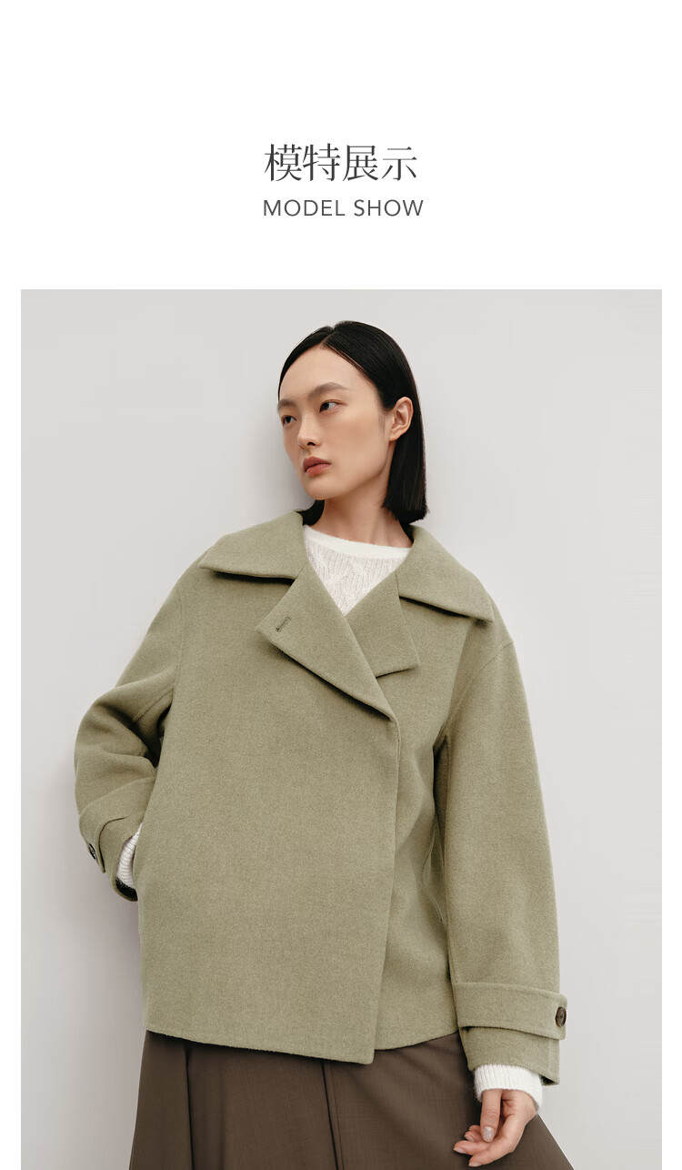 OVV Autumn and Winter Hot Sale Women's Simple Fashionable Lapel Short Warm Wool Double-sided Wool Coat Matcha Green L