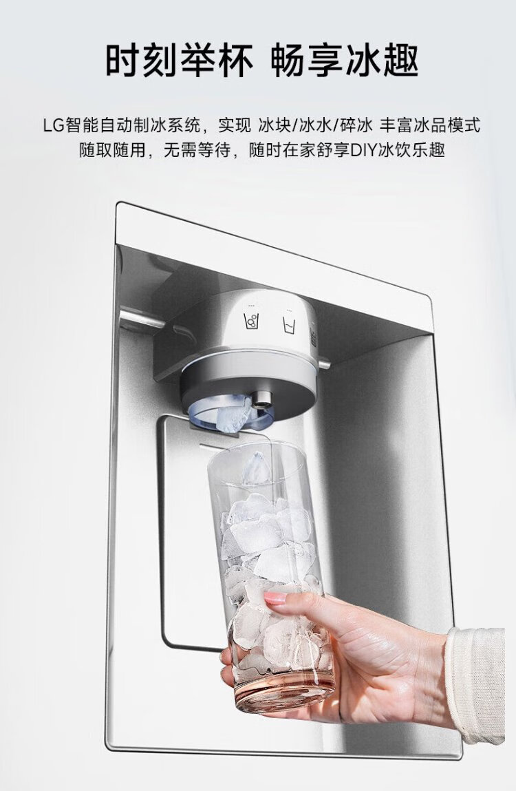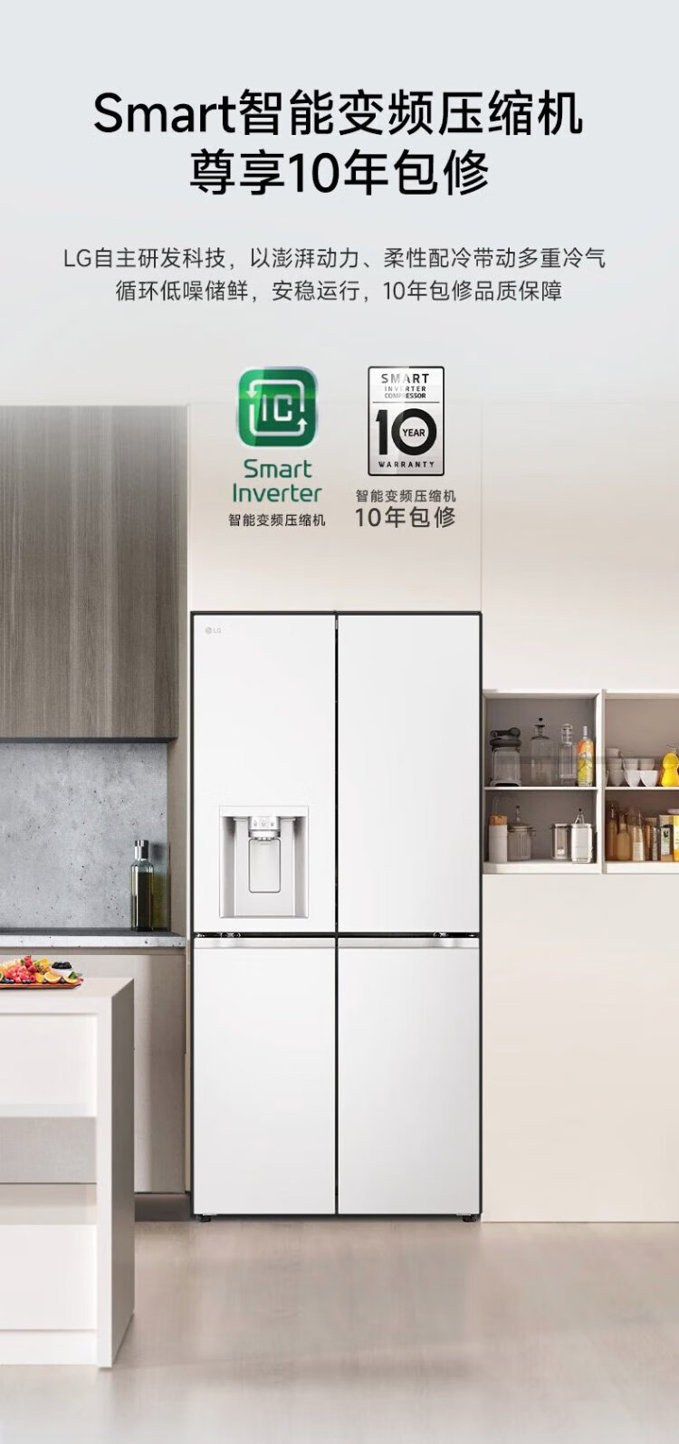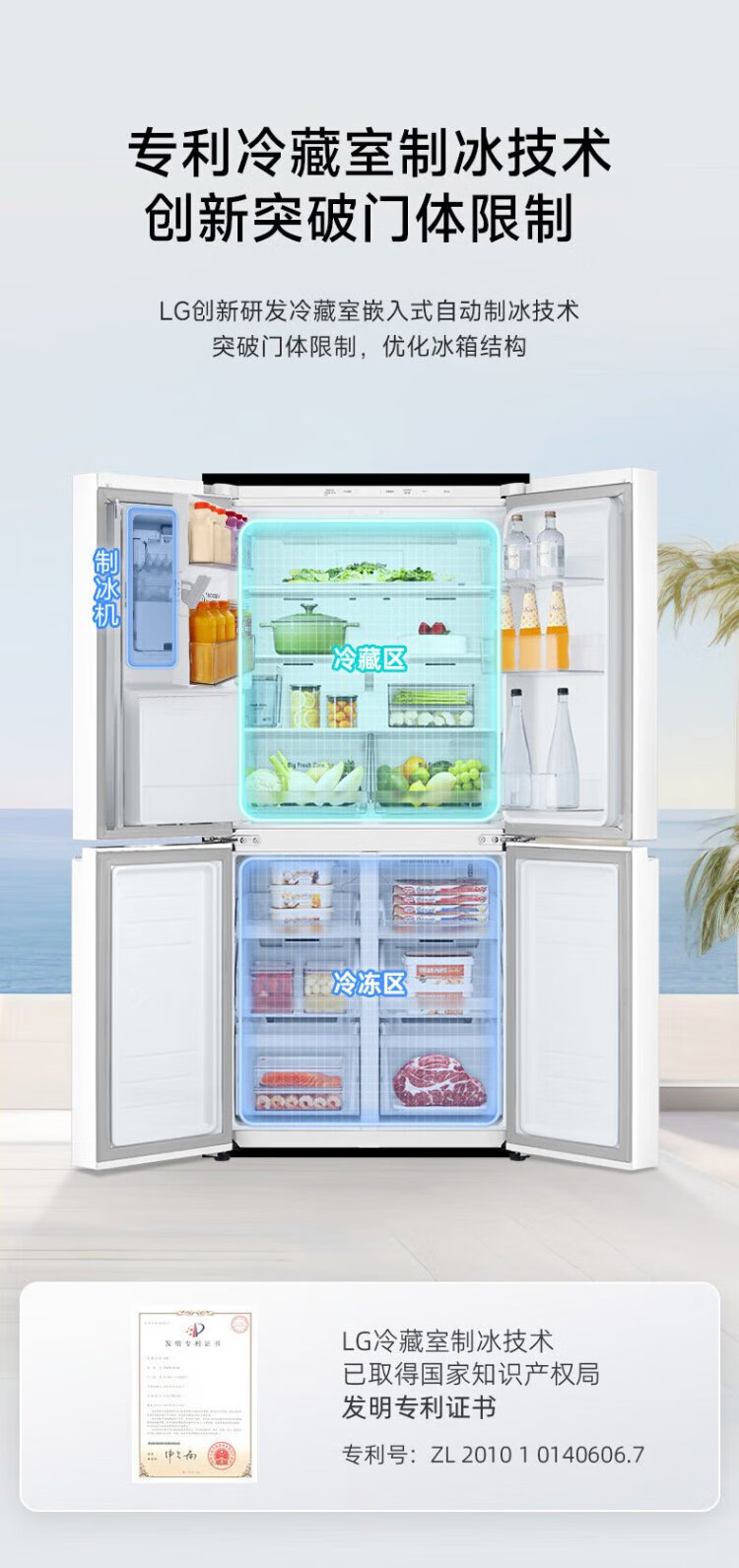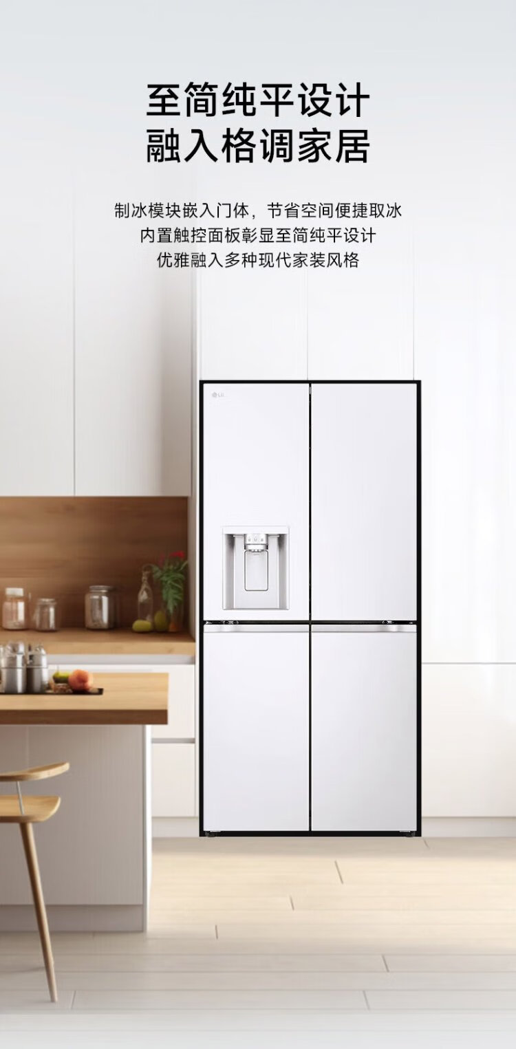 LG506 liter refrigerator four-door, cross-door automatic ice maker, ultra-thin household large-capacity partitioned refrigeration and freezing air-cooling, intelligent temperature control, energy-saving, frequency conversion, odor-free and fresh-keeping, blockbuster new ice-making series F544MEH62D Essence White