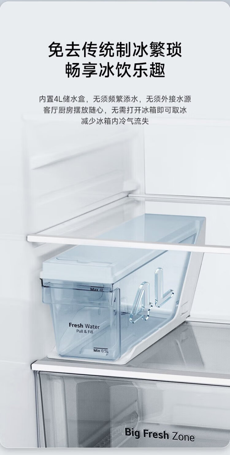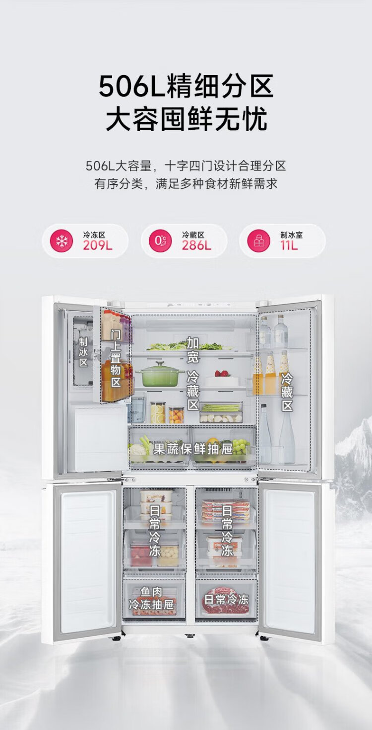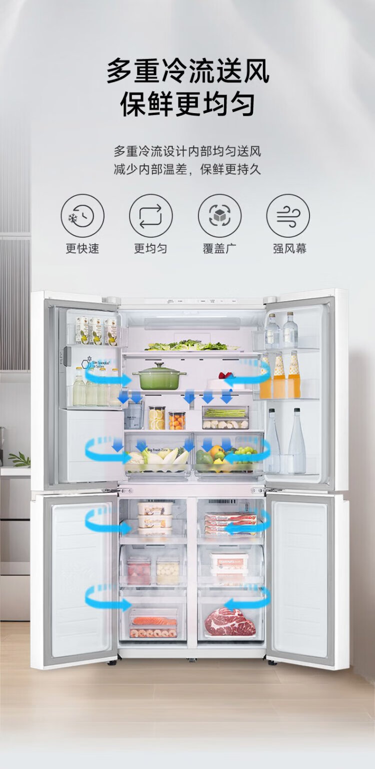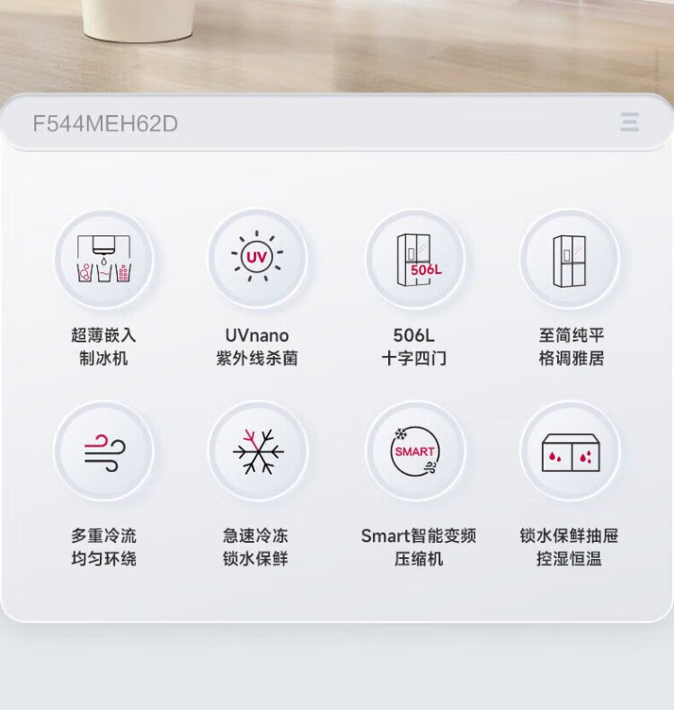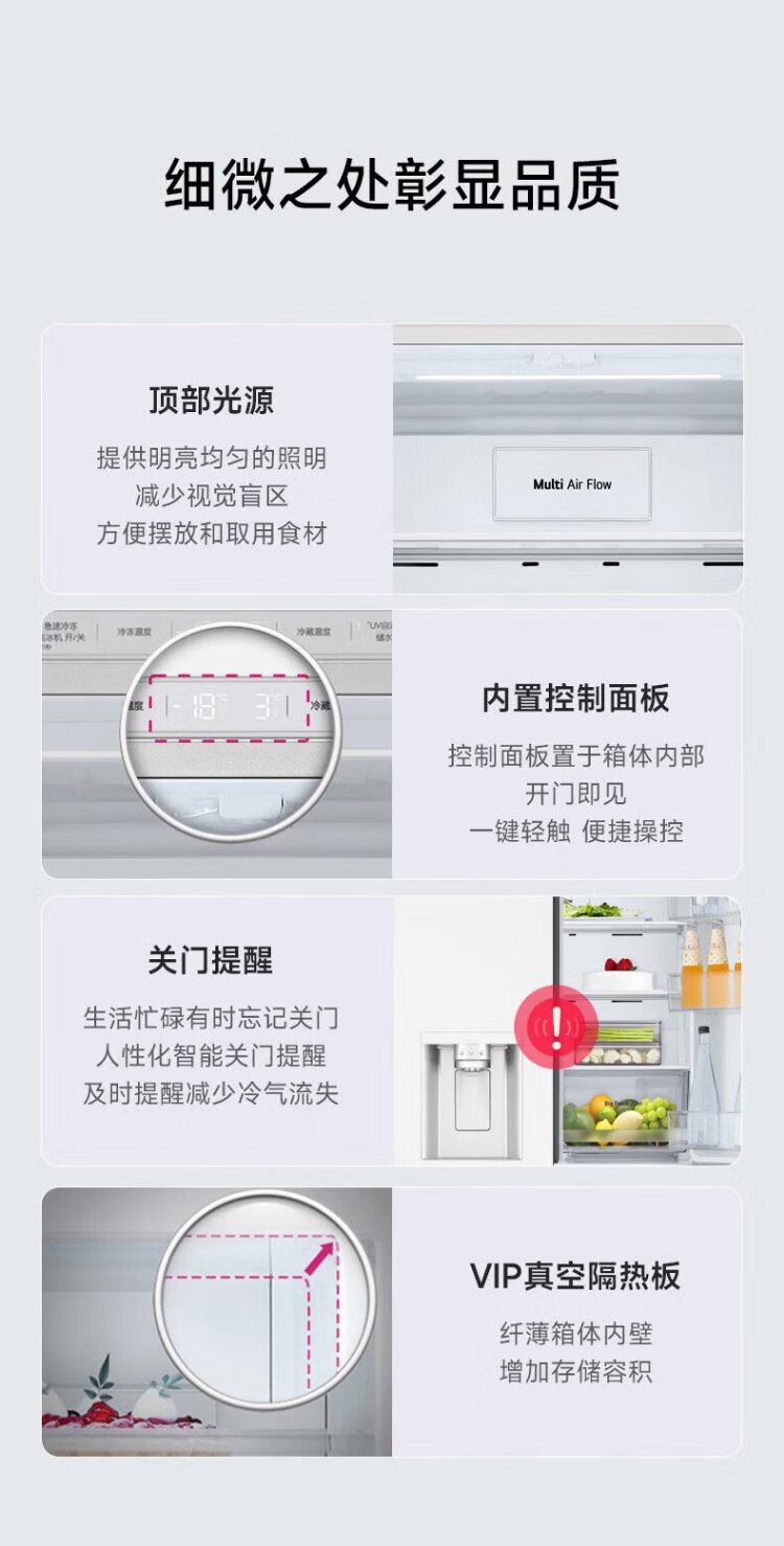 LG506 liter refrigerator four-door, cross-door automatic ice maker, ultra-thin household large-capacity partitioned refrigeration and freezing air-cooling, intelligent temperature control, energy-saving, frequency conversion, odor-free and fresh-keeping, blockbuster new ice-making series F544MEH62D Essence White
