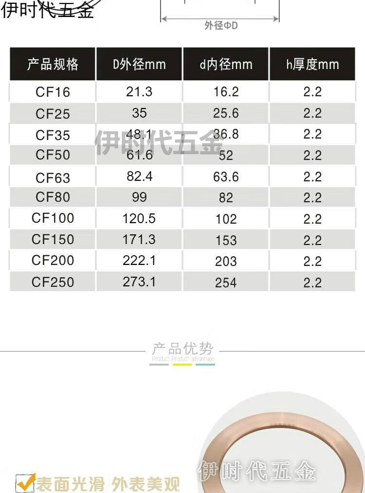 Shantou Lincun CF oxygen-free copper gasket CF16-250 copper gasket seal vacuum copper gasket CF63