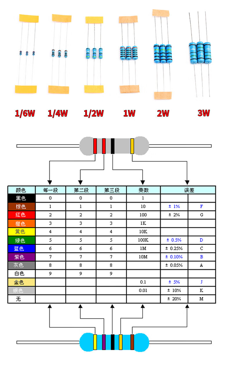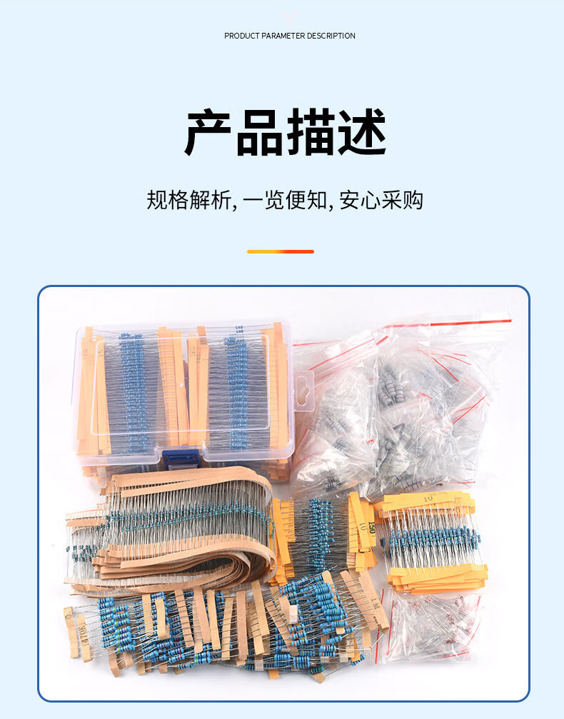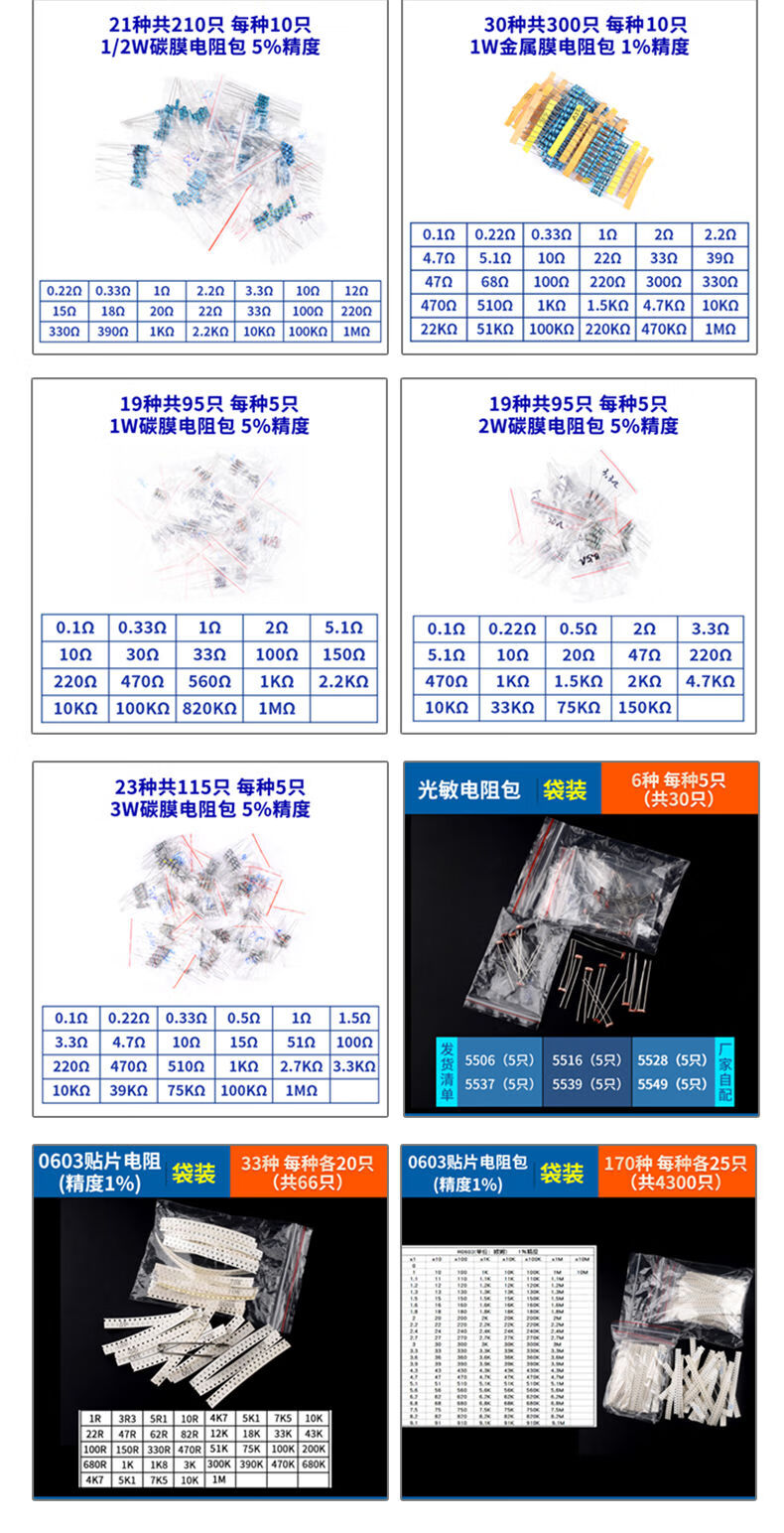 1/4W metal film resistor pack 1/2W1W2W3W5W direct plug electronic component pack 30/41/130 kinds 1% commonly used cost-effective recommendation (1/4W boxed) 130 kinds 20 resistors each