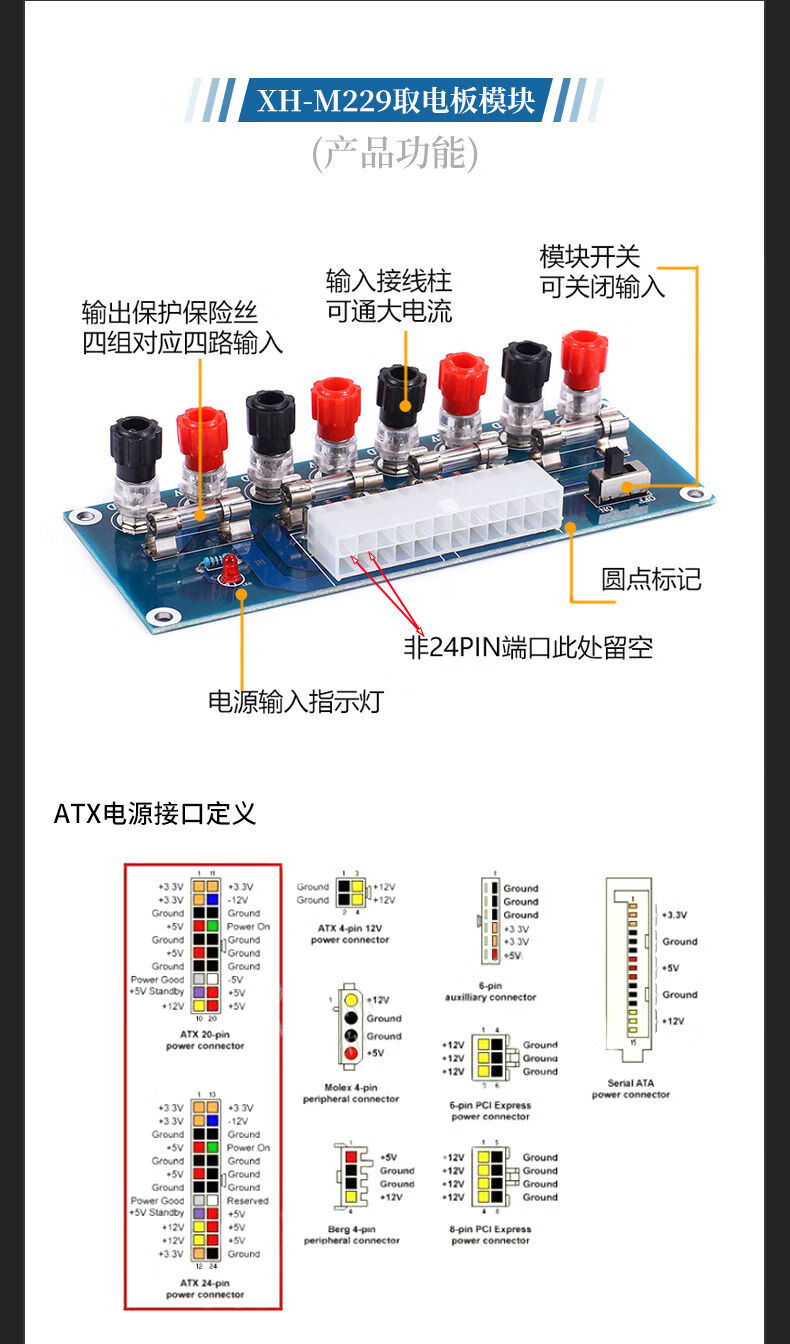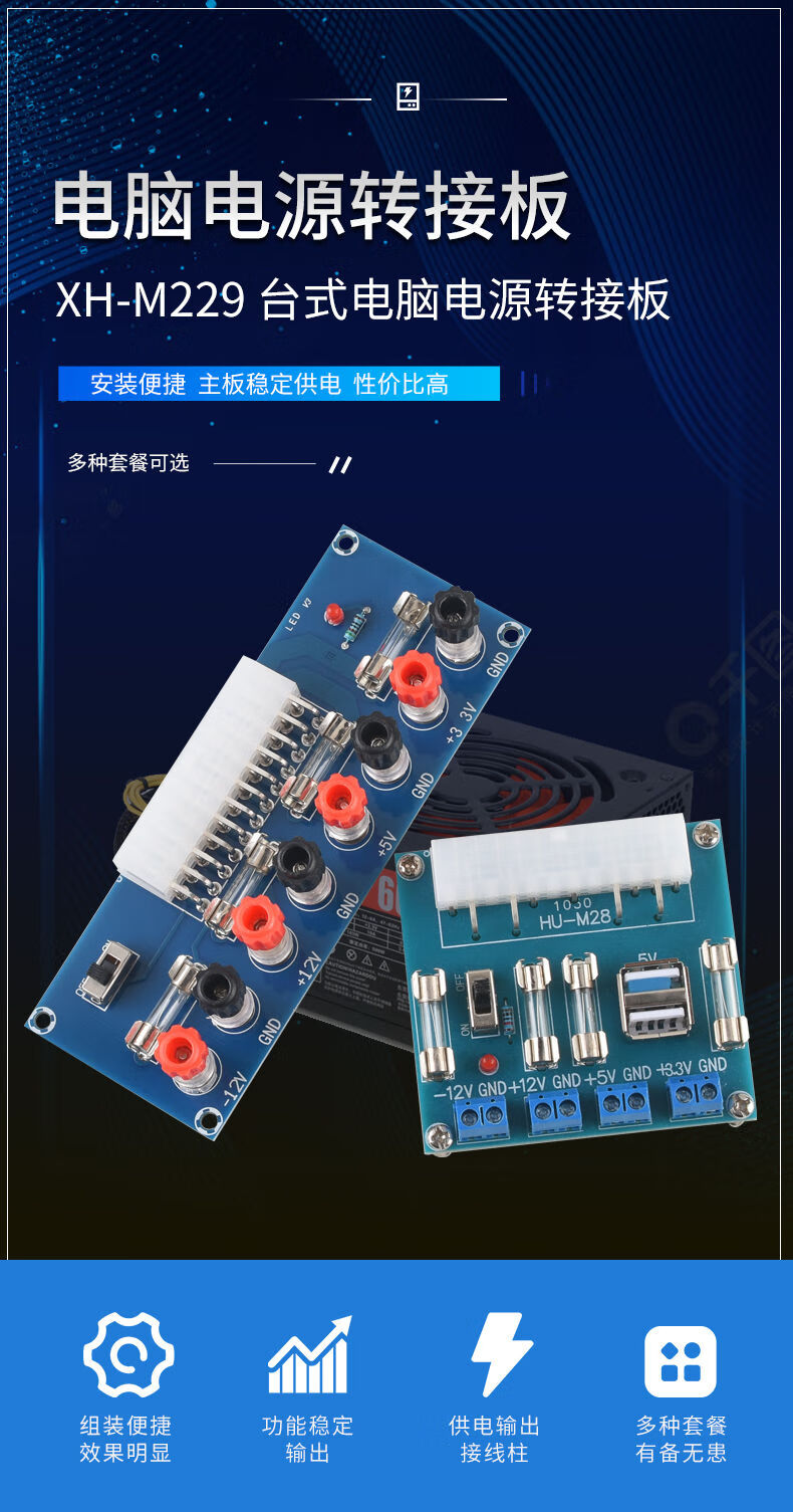 DZQJ XH-M229 desktop computer power adapter board ATX adapter board electrical board lead module power supply XH-M229 power board module + protective shell