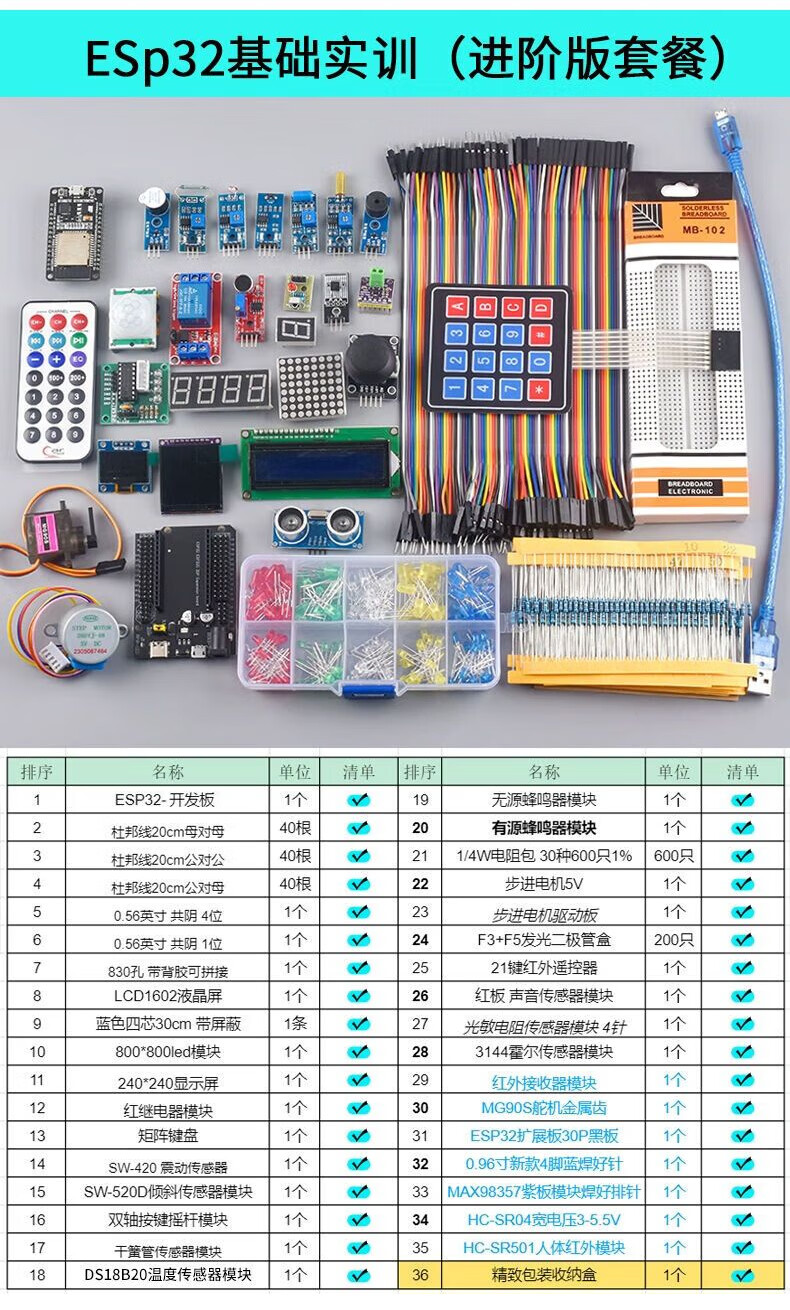 Site B Tutorial ESP32 Development Board IoT Starter Kit esp8266 WIFi Module + Bluetooth ESp32 Basic Training (Advanced Version Full Package B Site Teaching) Technical Support