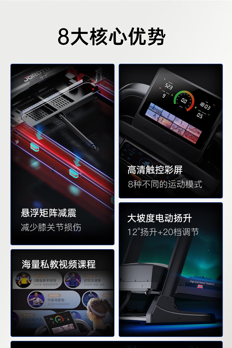 JOROTO Marathon Treadmill Home Shock Absorbing Climbing High-end Intelligent Commercial Fitness Equipment DT35 520 Commercial Running Belt | 20 Grades of Incline