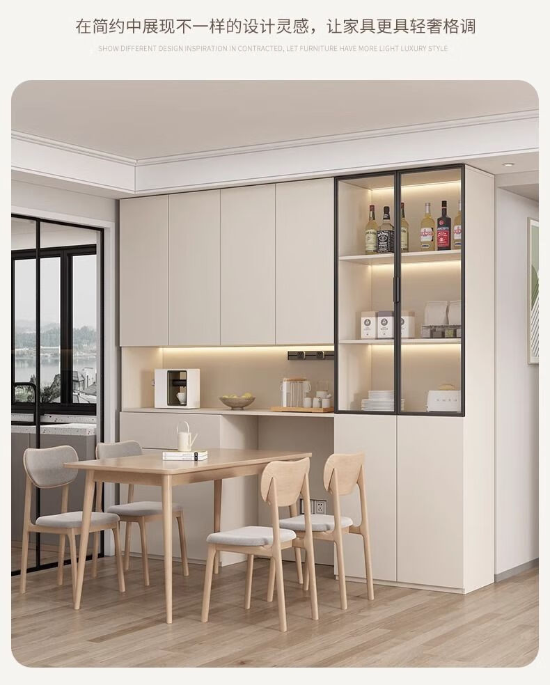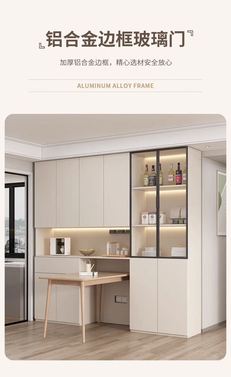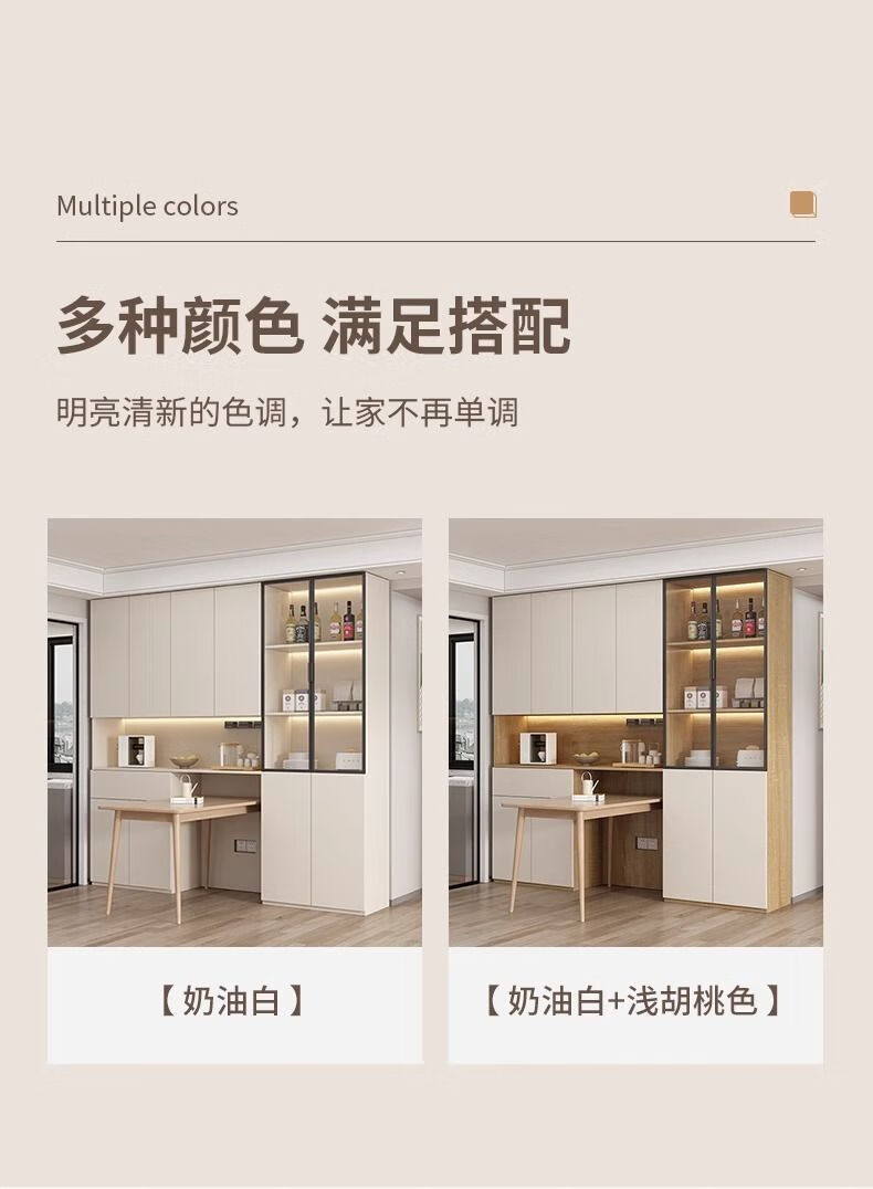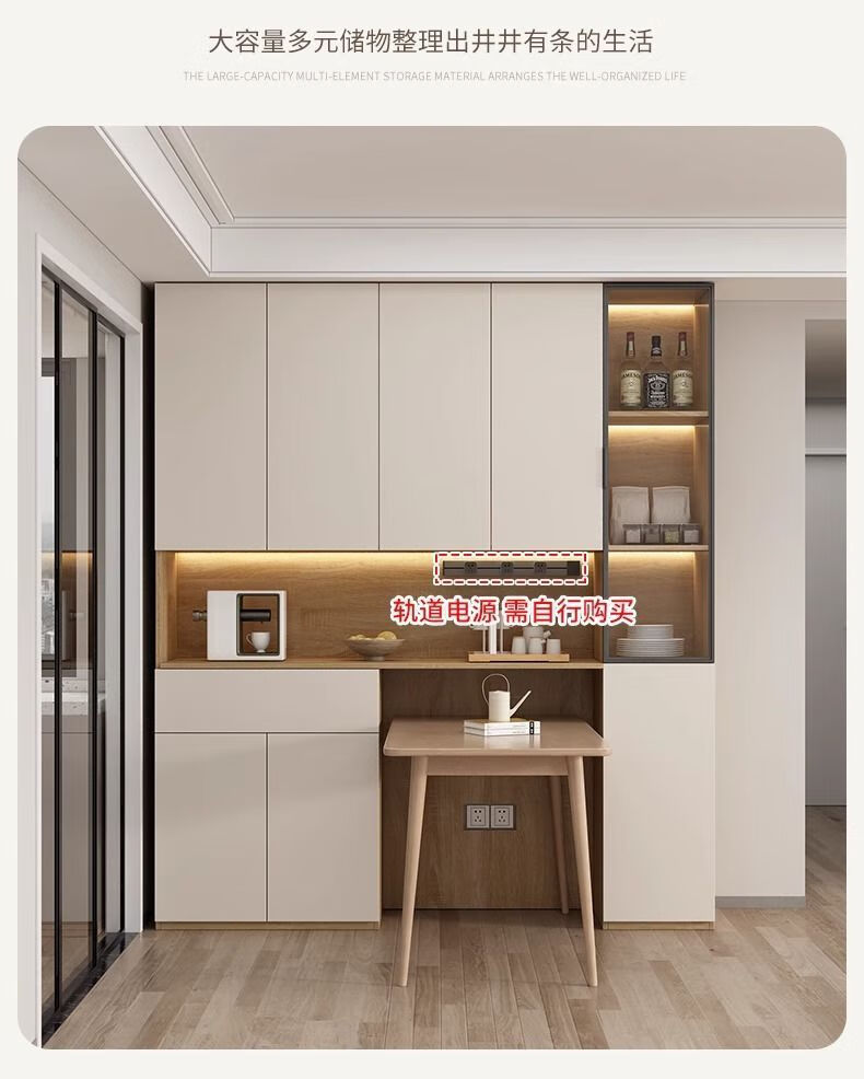 Zhiyueju 2025 new solid wood sideboard wall-mounted living room dining table built-in high cabinet small apartment storage restaurant wine cabinet E type 120*42*220 (solid wood board) delivery and installation