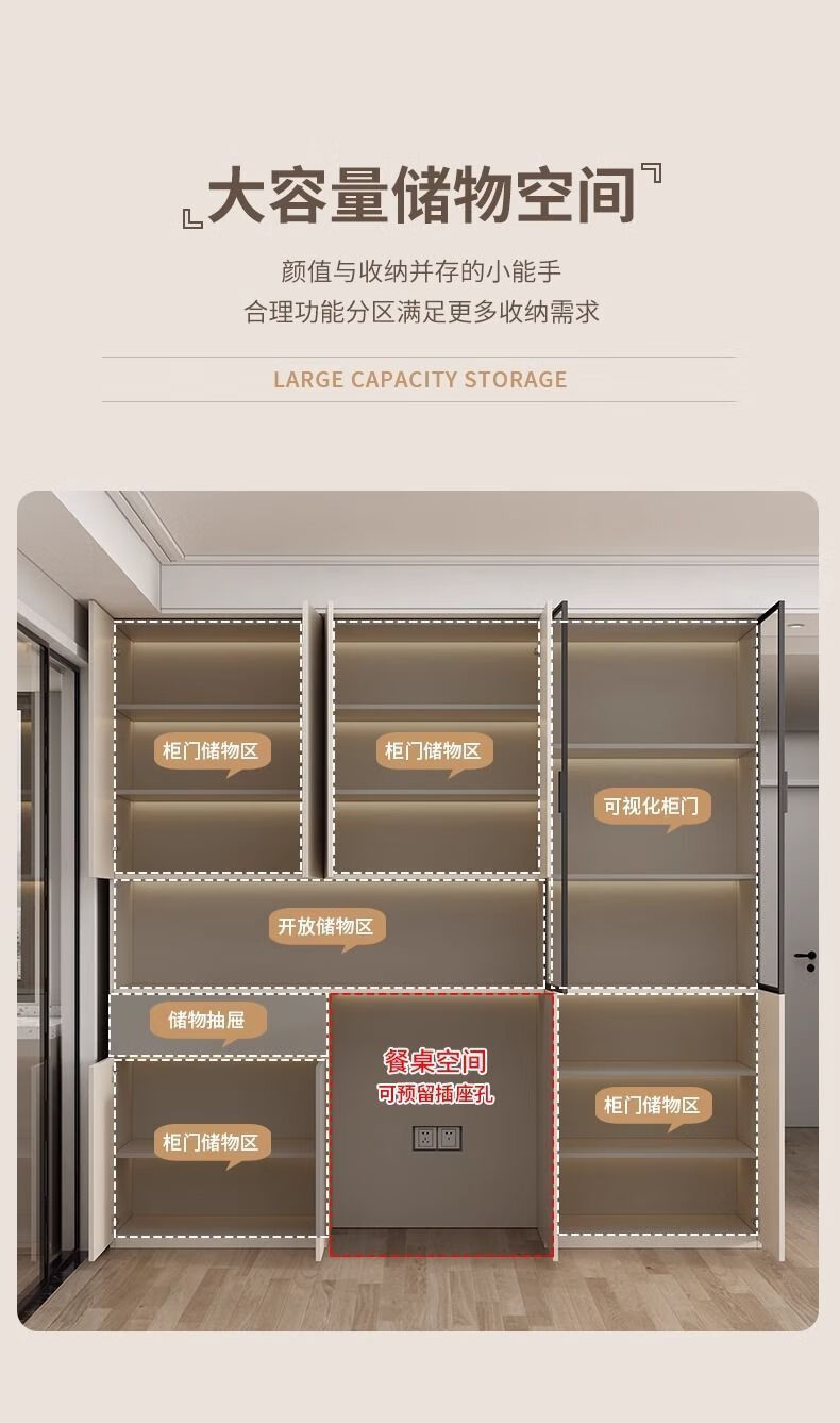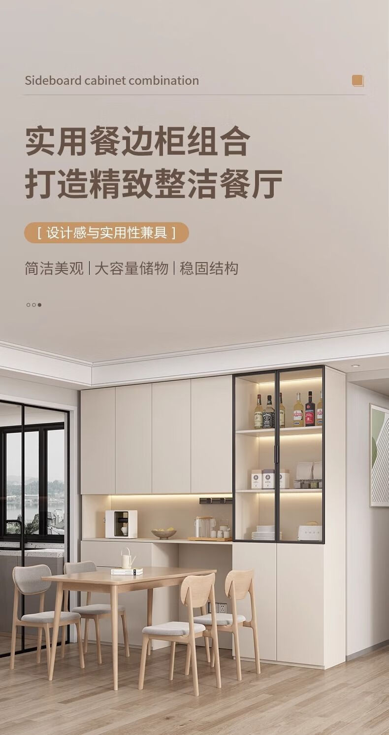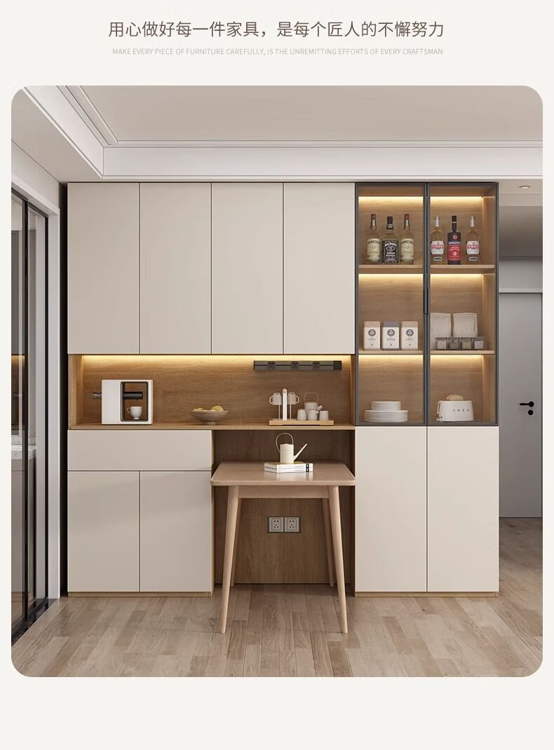 Zhiyueju 2025 new solid wood sideboard wall-mounted living room dining table built-in high cabinet small apartment storage restaurant wine cabinet E type 120*42*220 (solid wood board) delivery and installation