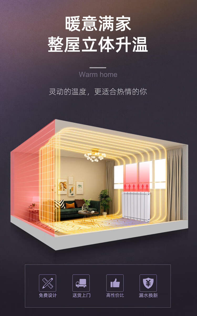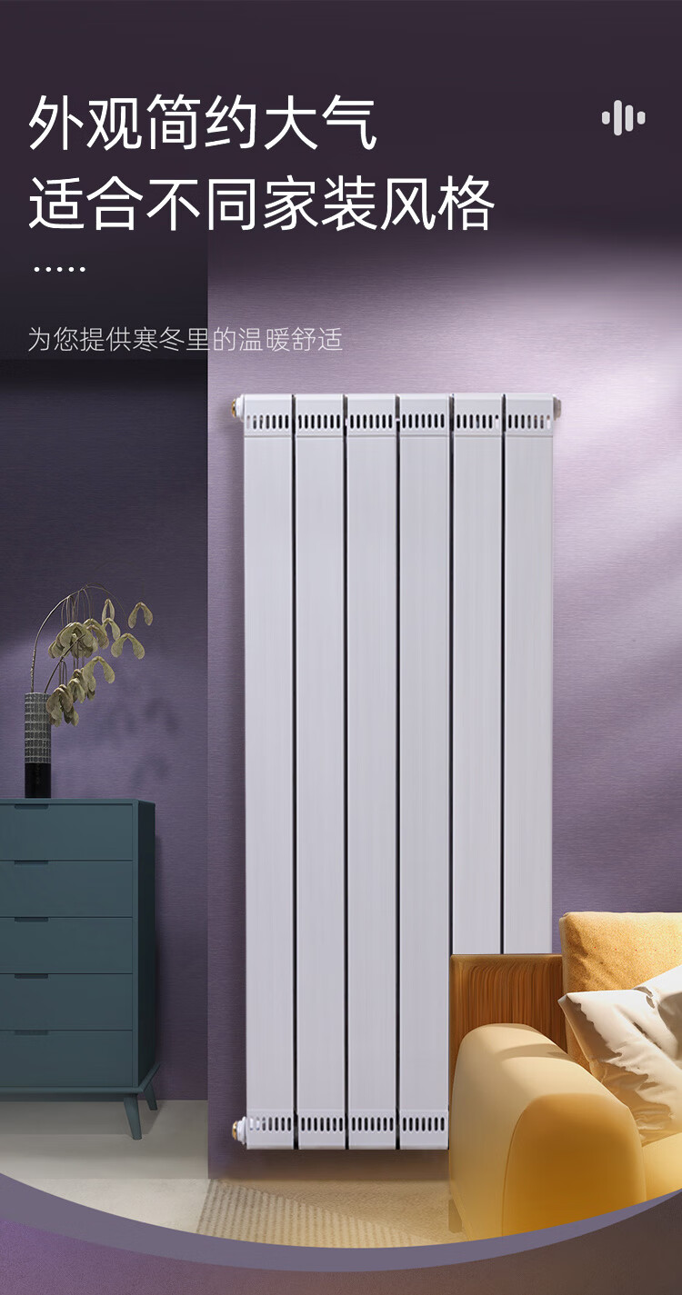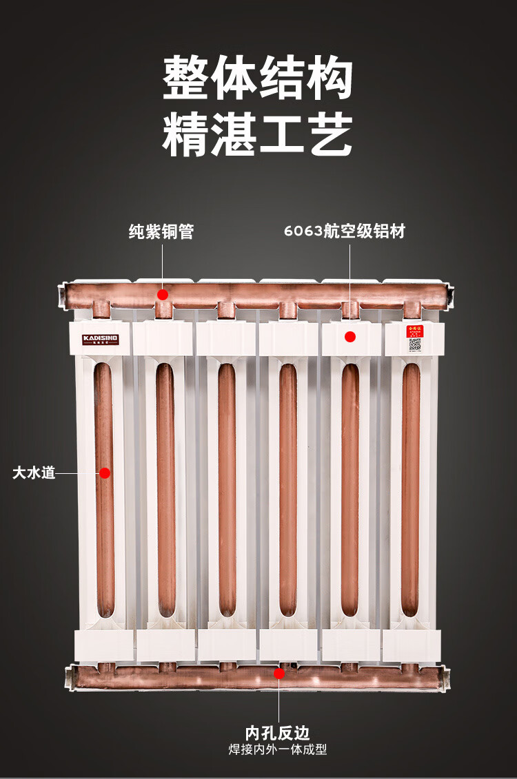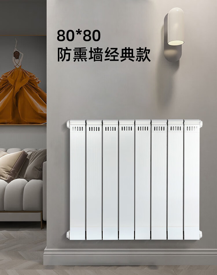 Paiqin copper-aluminum composite radiator household water heating radiator wall-mounted central heating for living room and bedroom large water channel heating copper and aluminum 80-80 Chinese knot ordinary style 25 risers vertical center distance 1.8 meters high 6 pieces in a set