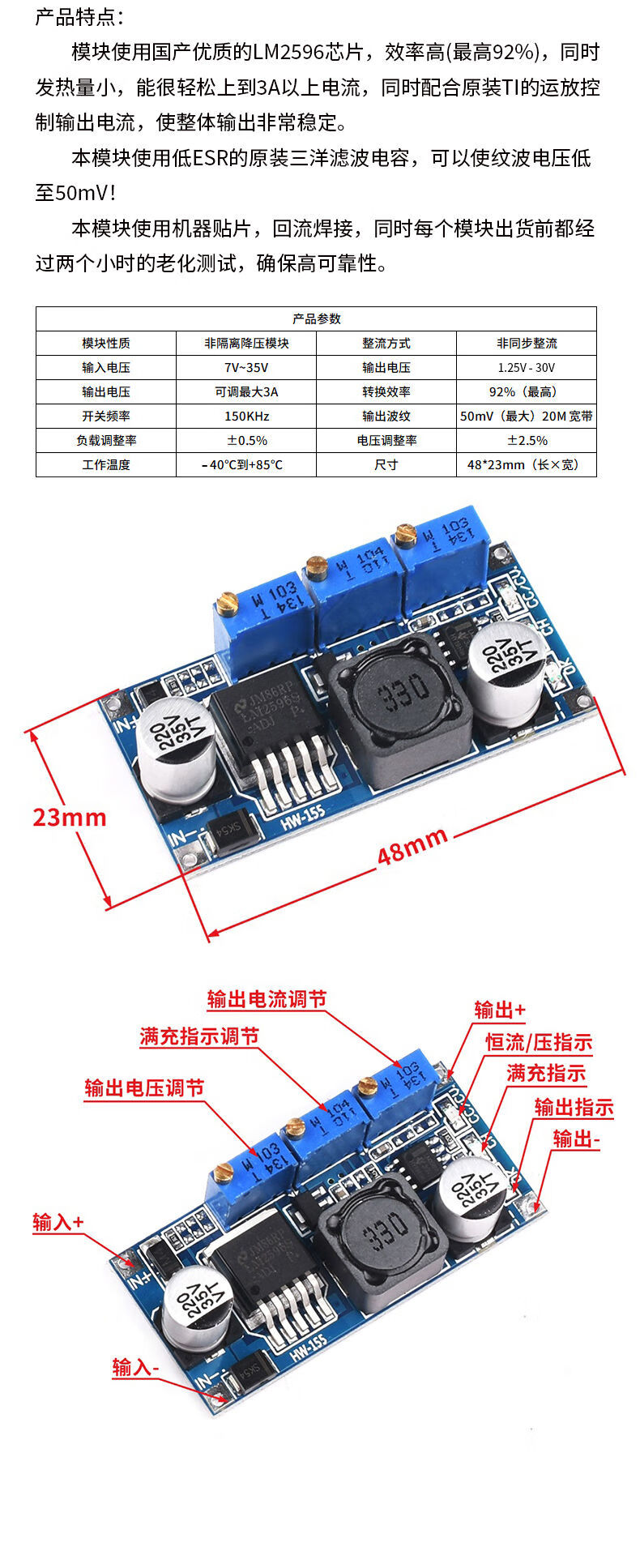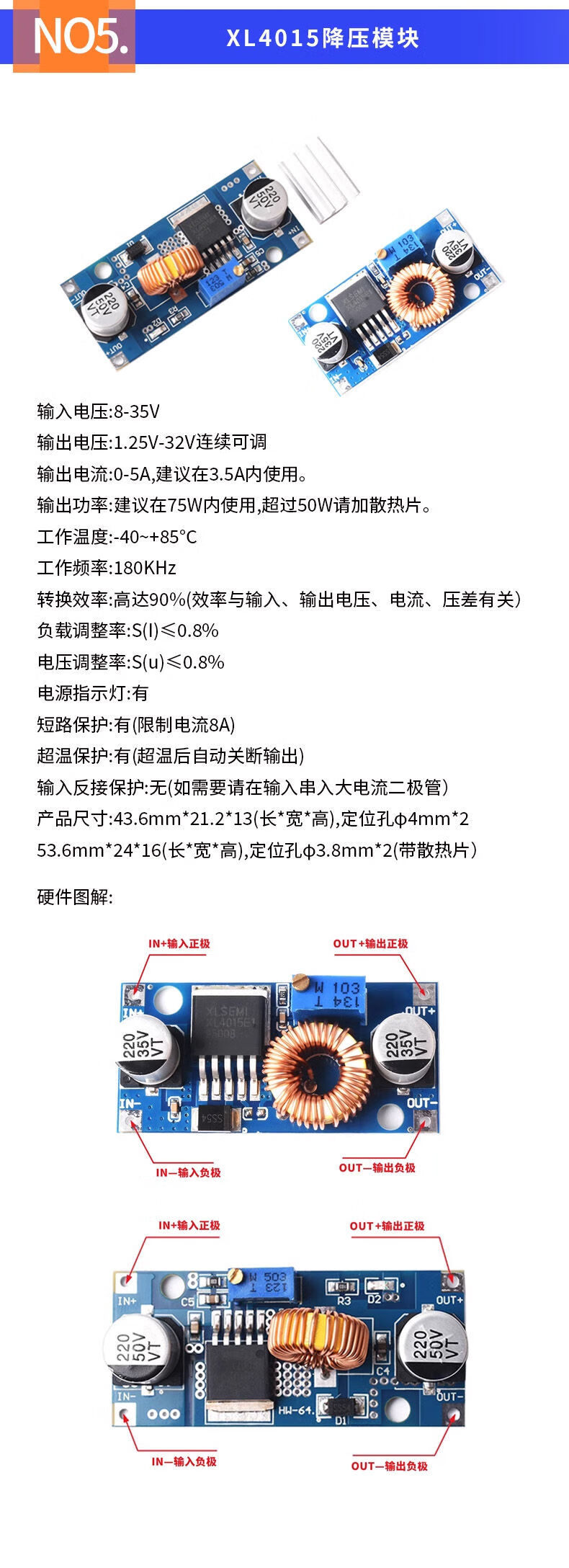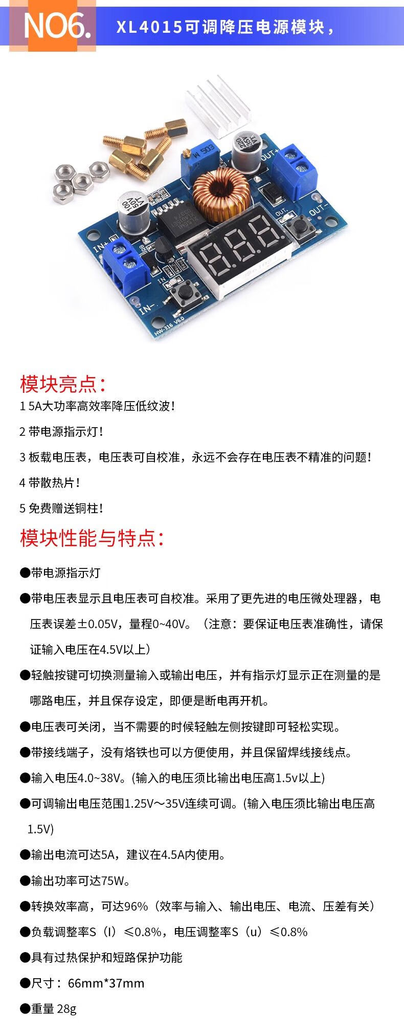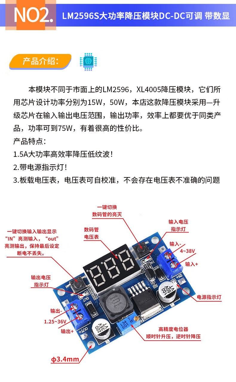 DZQJ LM2596S DC-DC DC adjustable buck regulated power supply module board XL4015 3A5A 24 to 12 LM2596S with digital display regulated power supply module